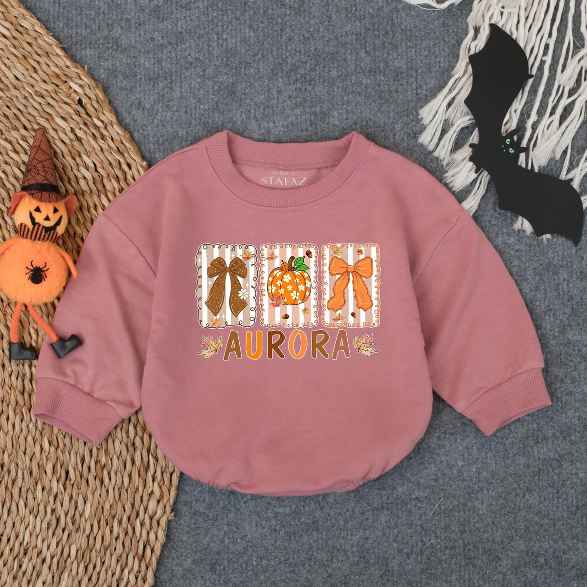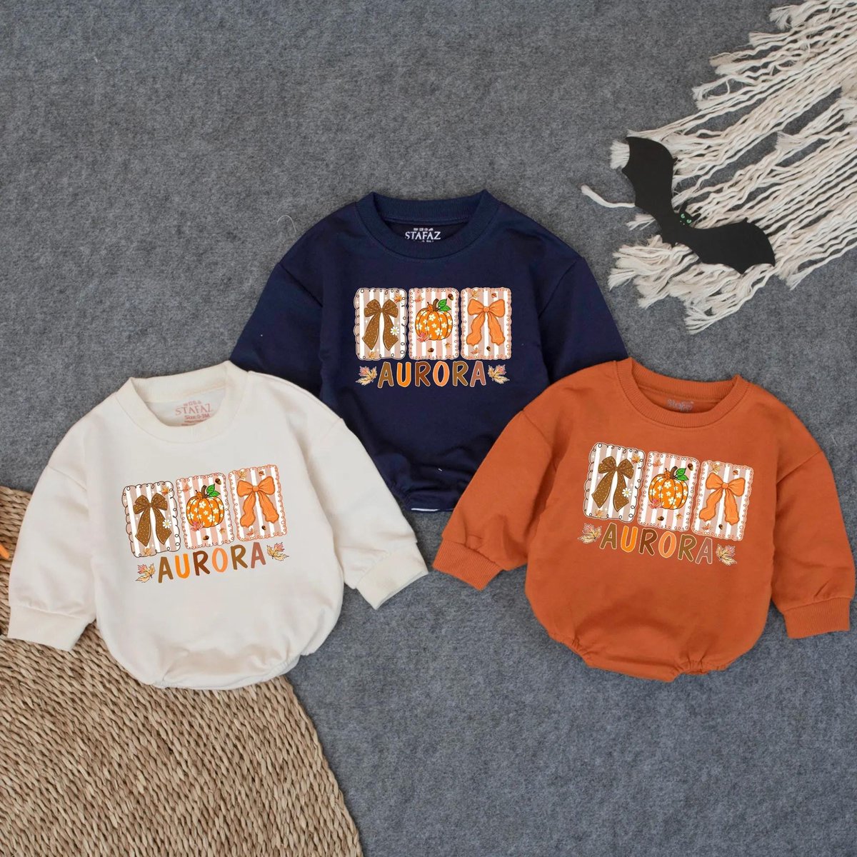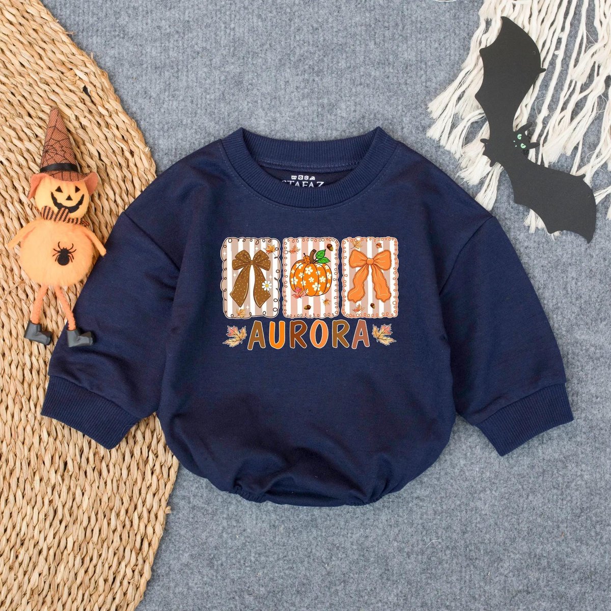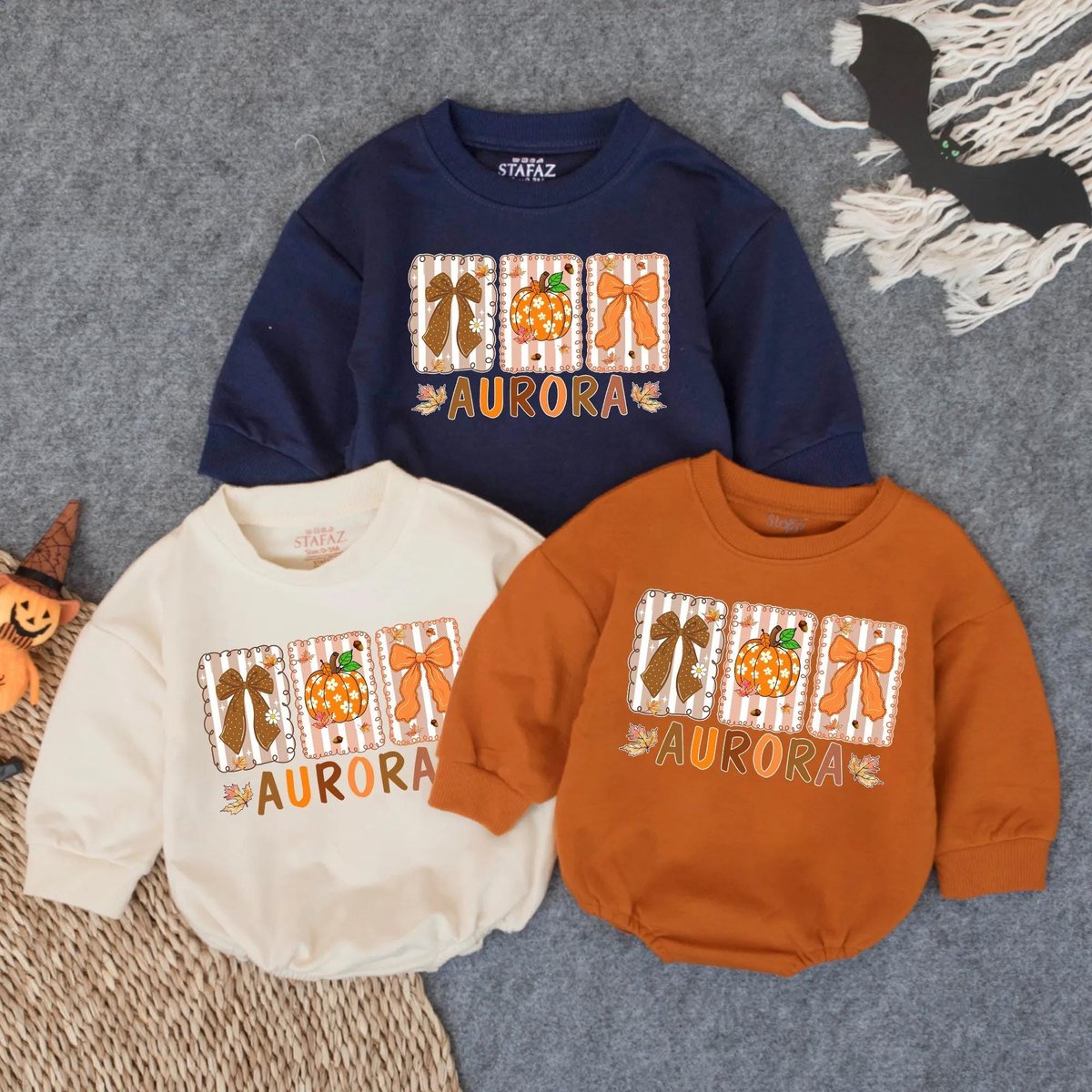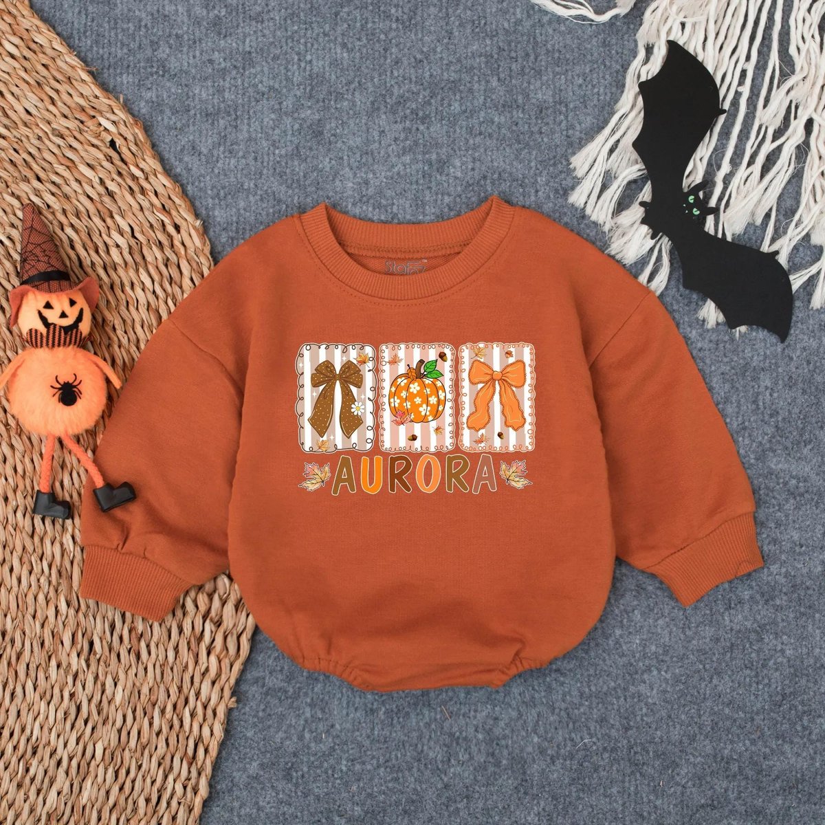 Customized Christian Floral Baby Bubble Romper Fall Girly Bodysuit with Name Preppy Autumn Pumpkin C 433