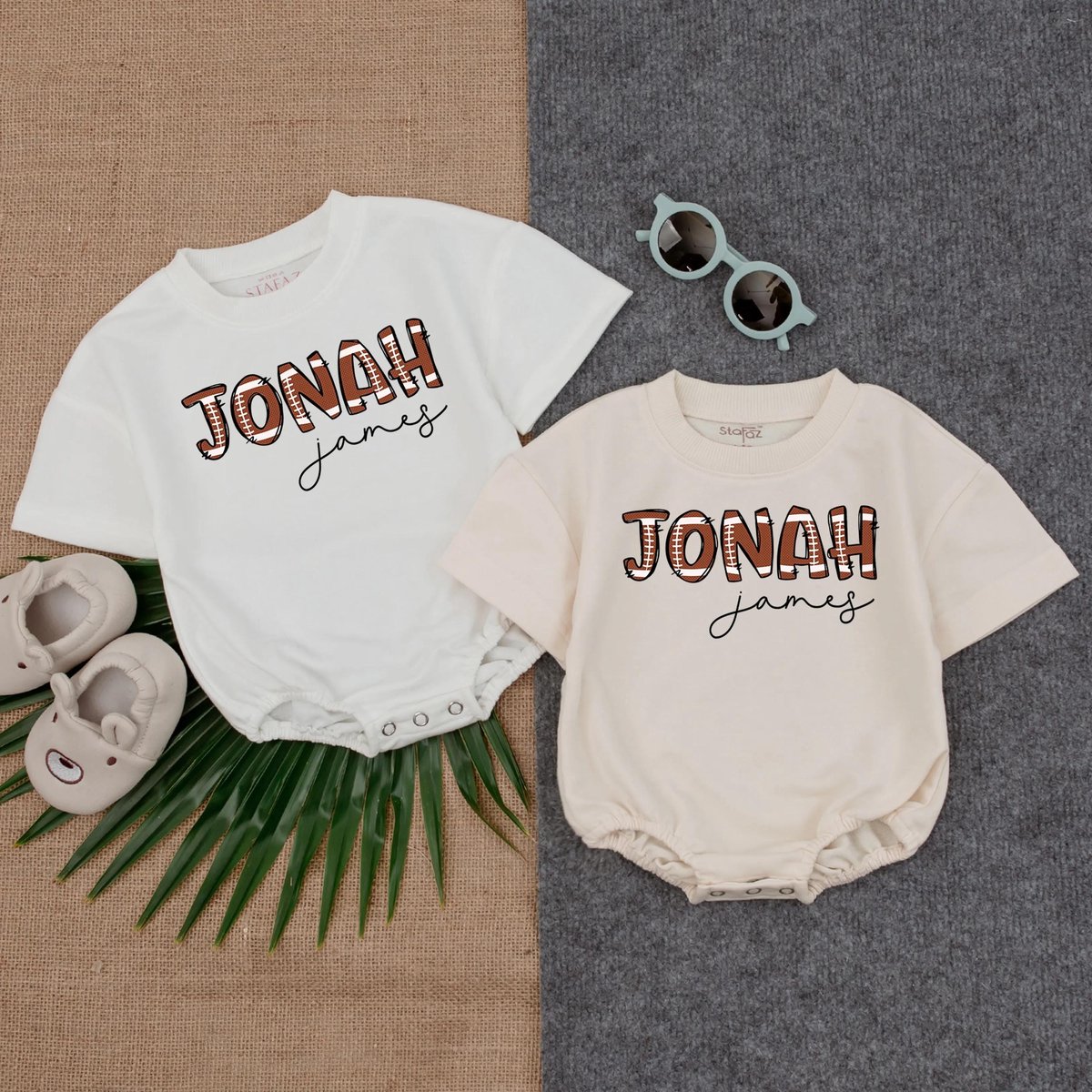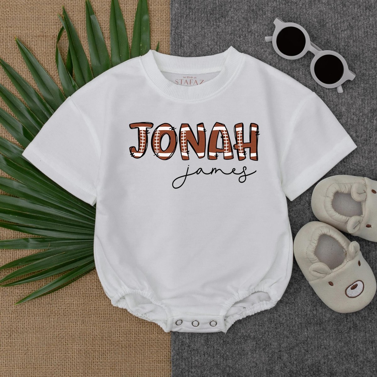 Customized Football Name Bubble Romper Bodysuit Baby Gameday Bodysuit Baby Boy Outfit Football Girl 432
