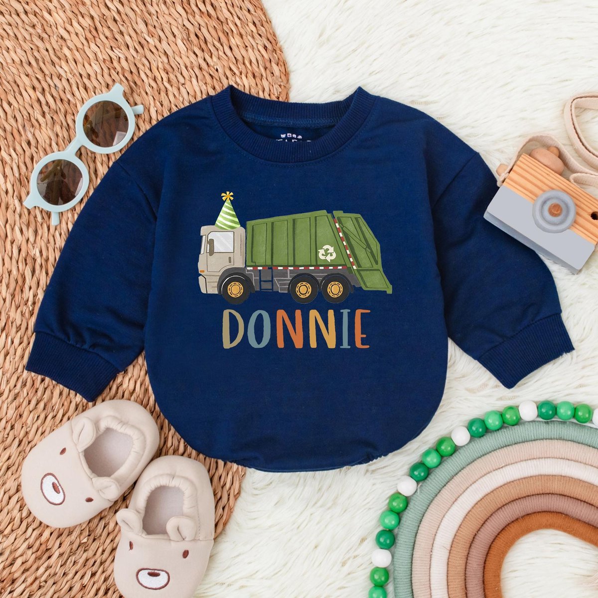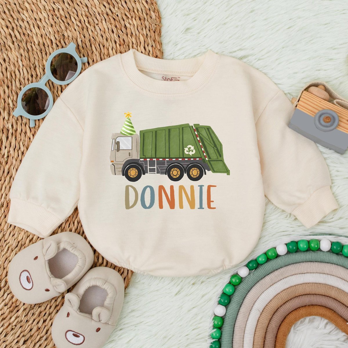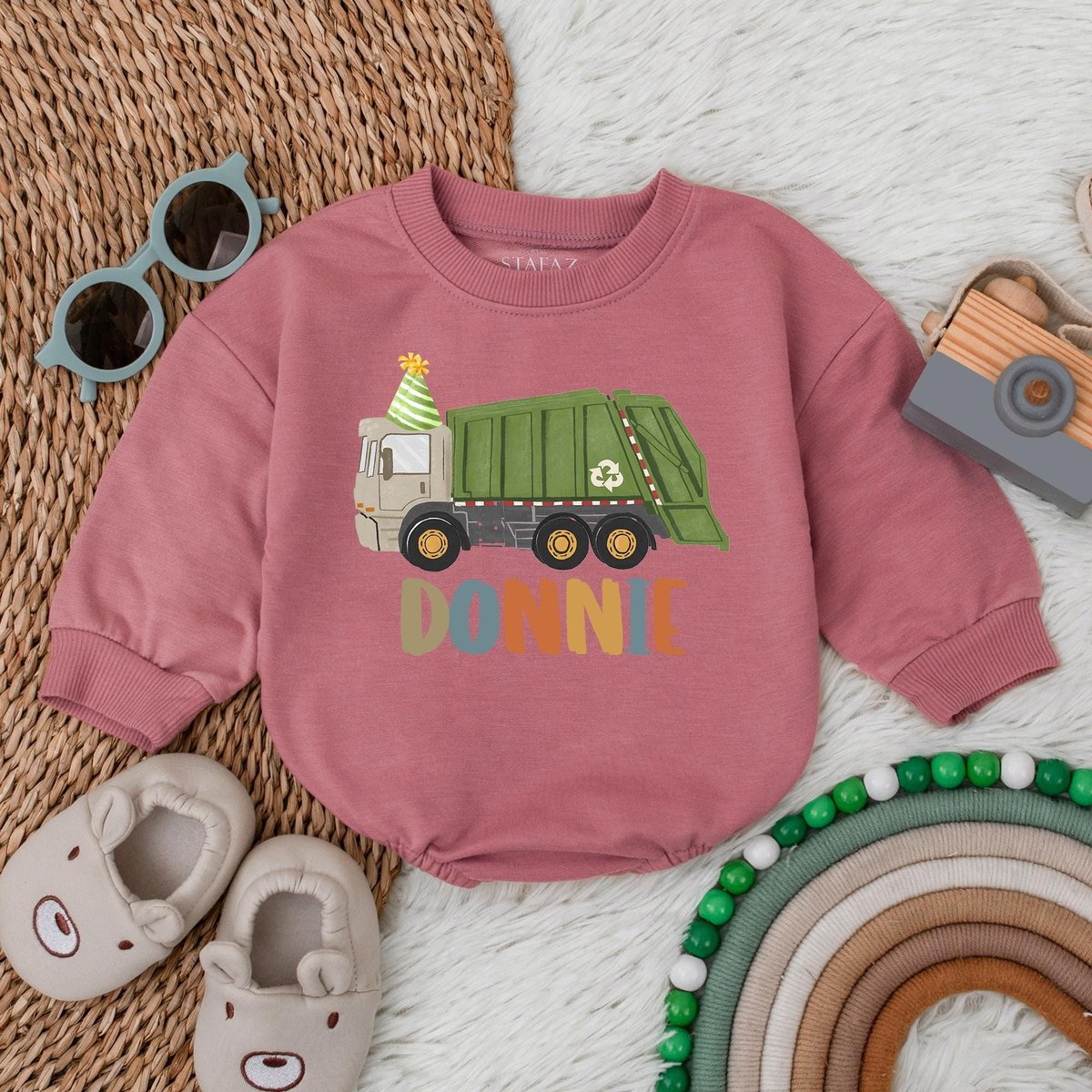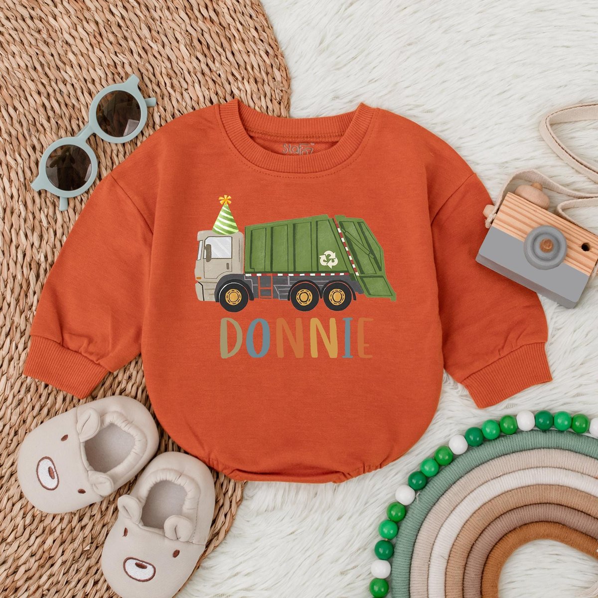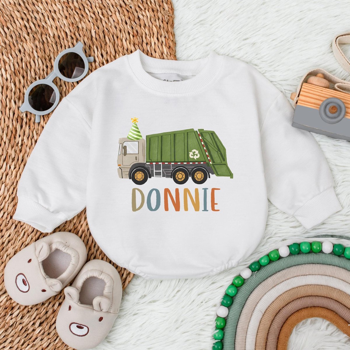 Customized Garbage Truck Shirt Boy Bubble Romper Truck Vehicle Car Party Truck Recycling Outfit Boy 186