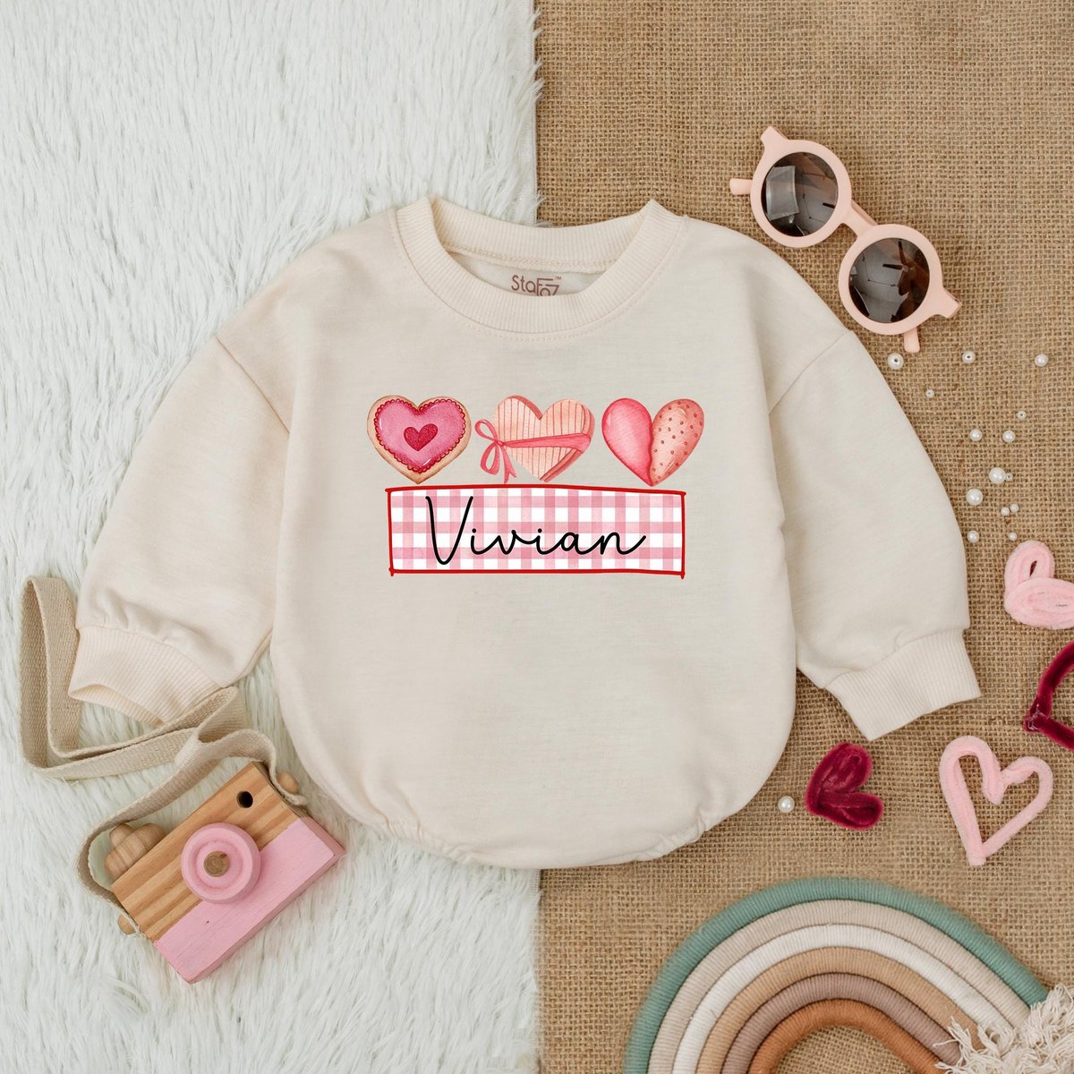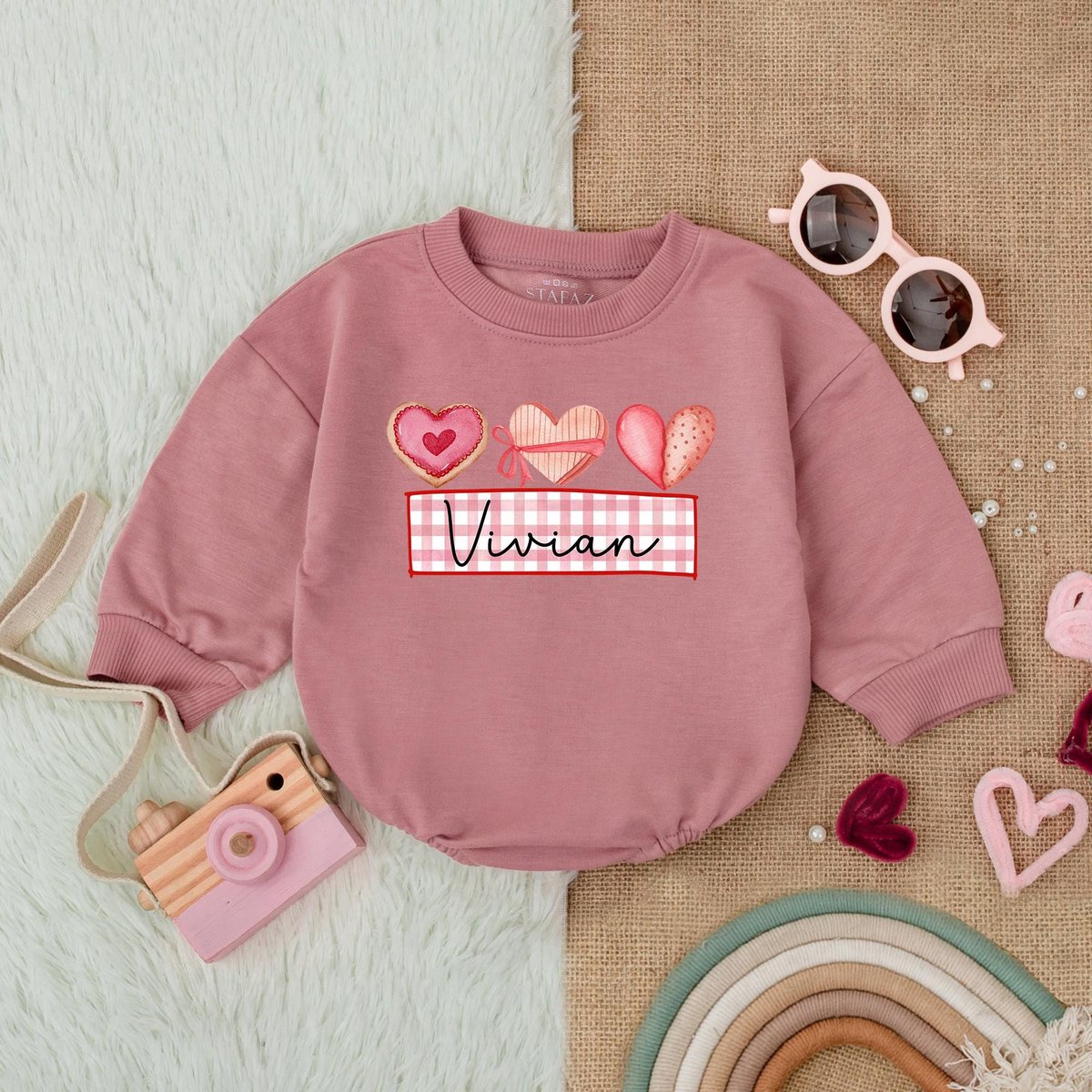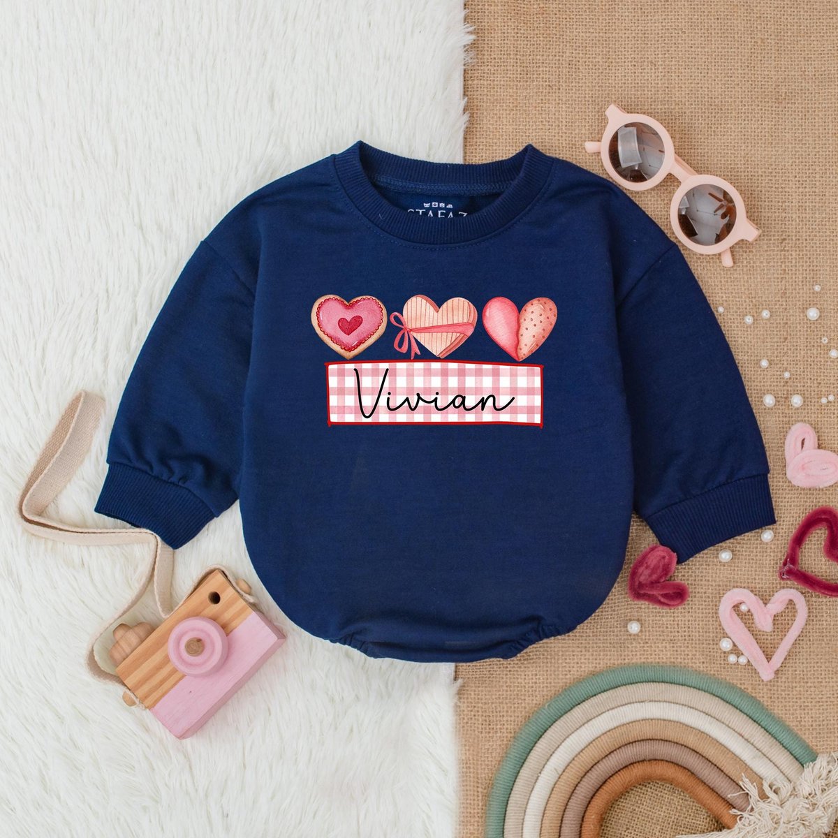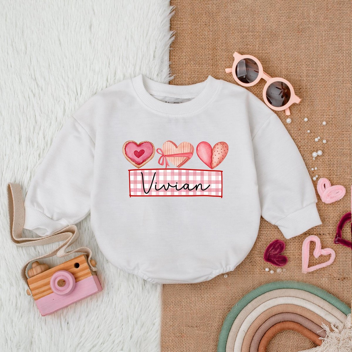 Customized Heart and Bow Valentine Bubble Romper First Valentines Baby Outfit Valentines Day Shirt B 182