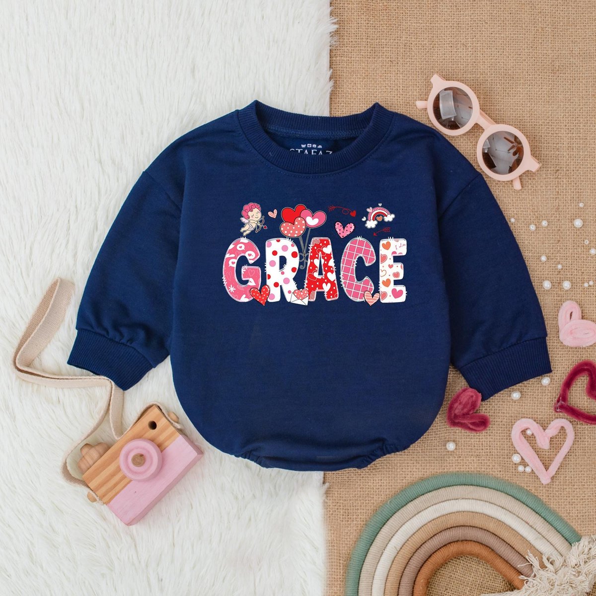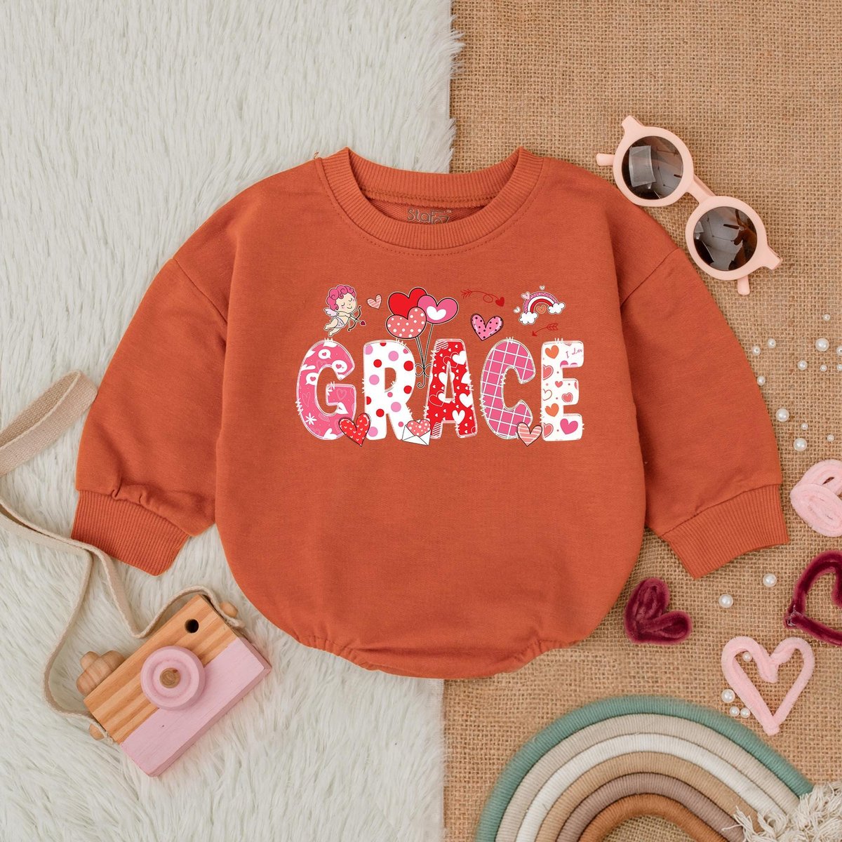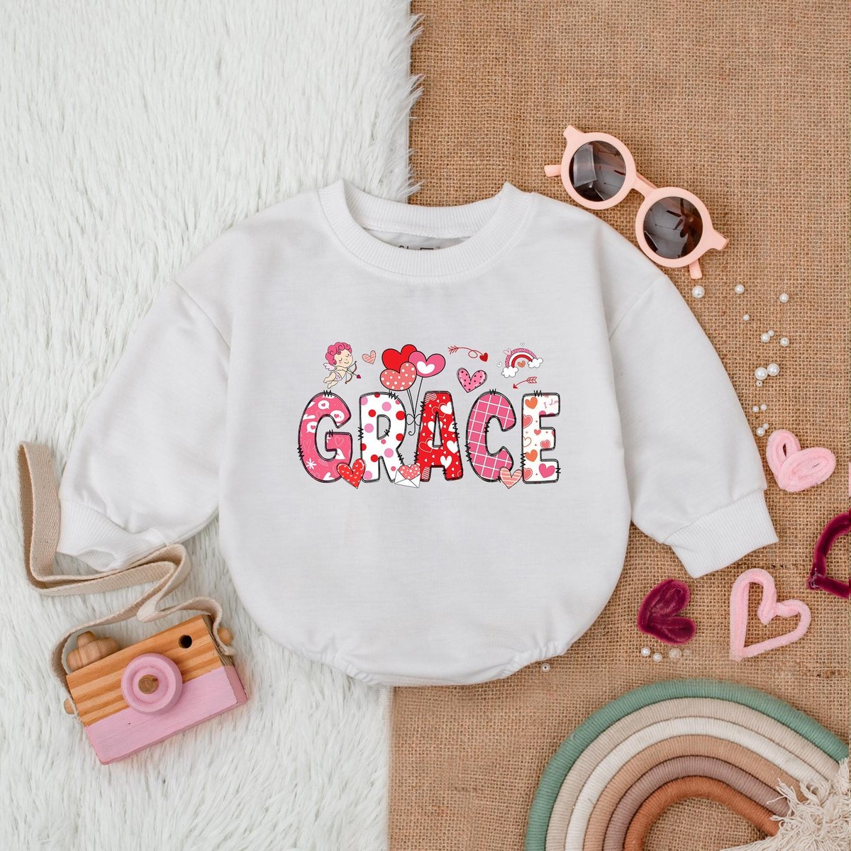 Customized Hearts and Bows Valentine Bubble Romper First Valentines Baby Outfit Valentines Day Shirt 182