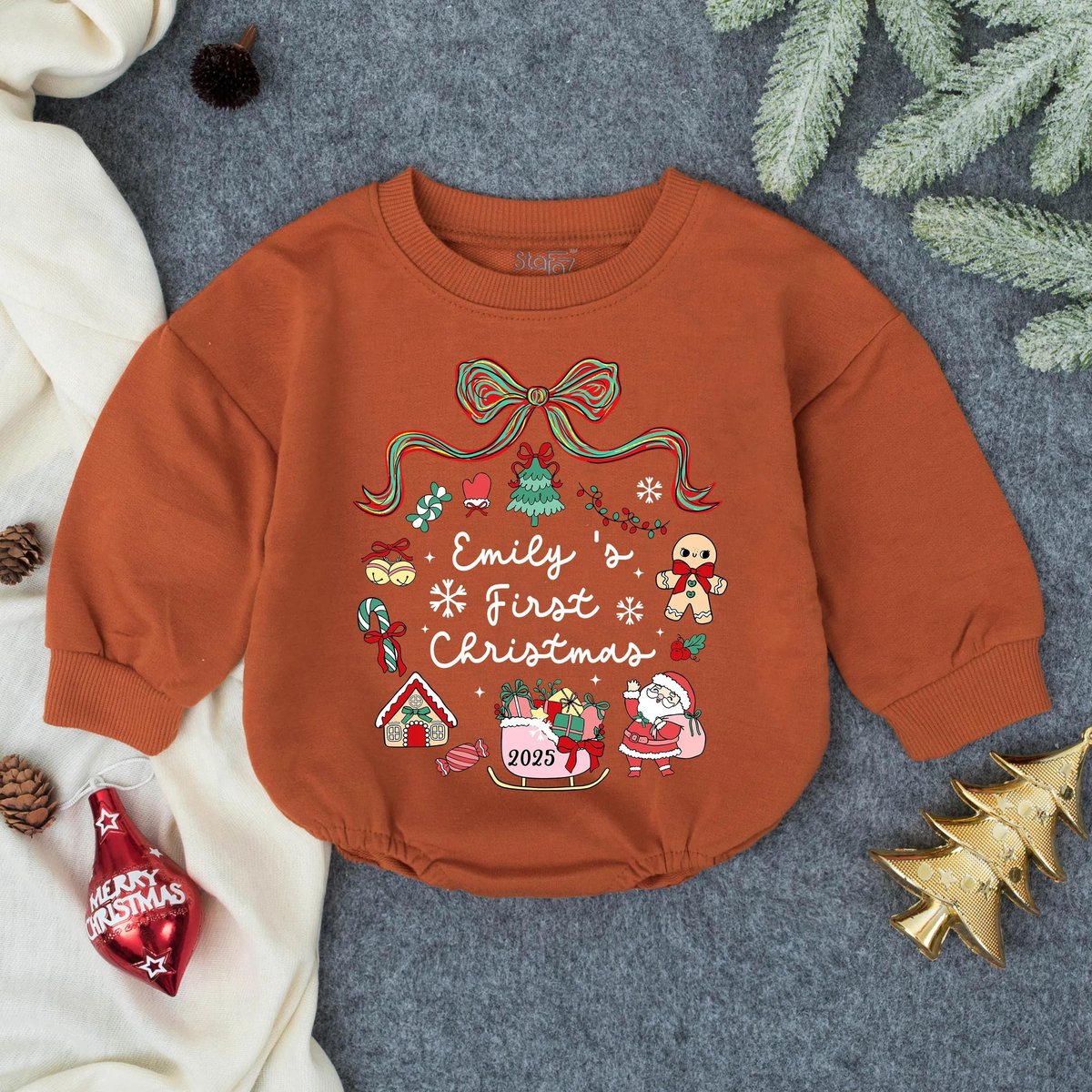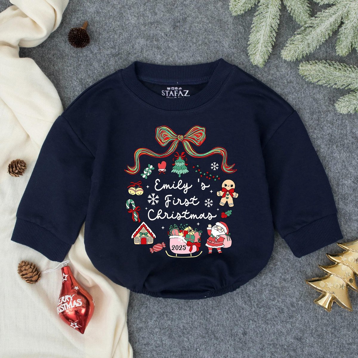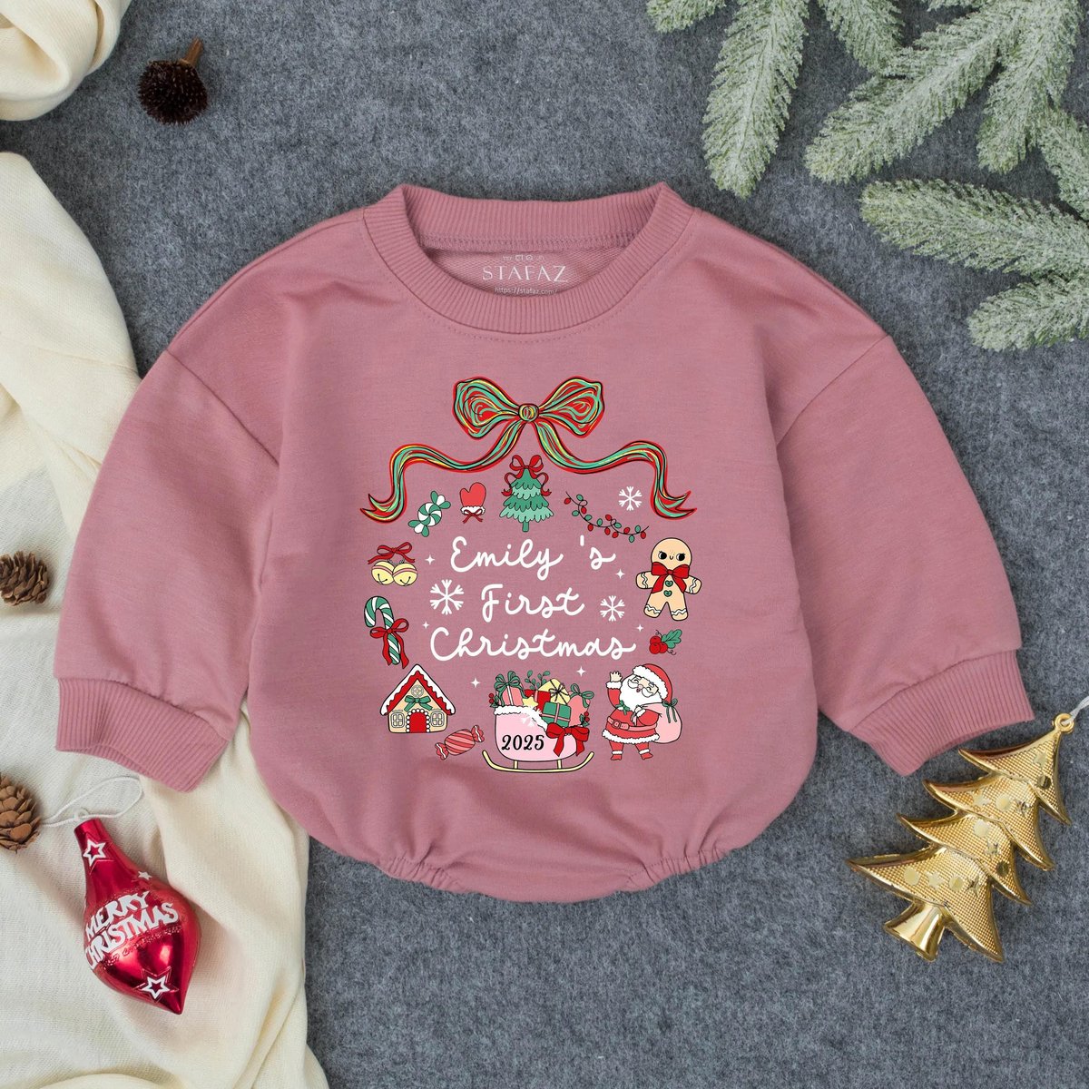 Customized My First Christmas Girlt Bubble Romper Babys First Holiday Outfit Red Car Christmas Tree 435
