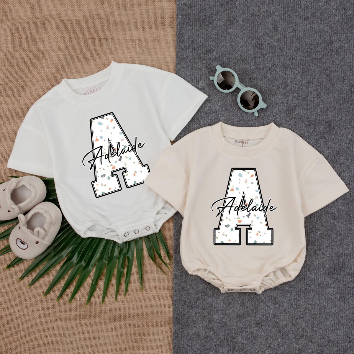 Customized Name Baby RomperSweatshirt Bodysuit Minimalist Baby Birthday Personalized Bubble Romper B 188
