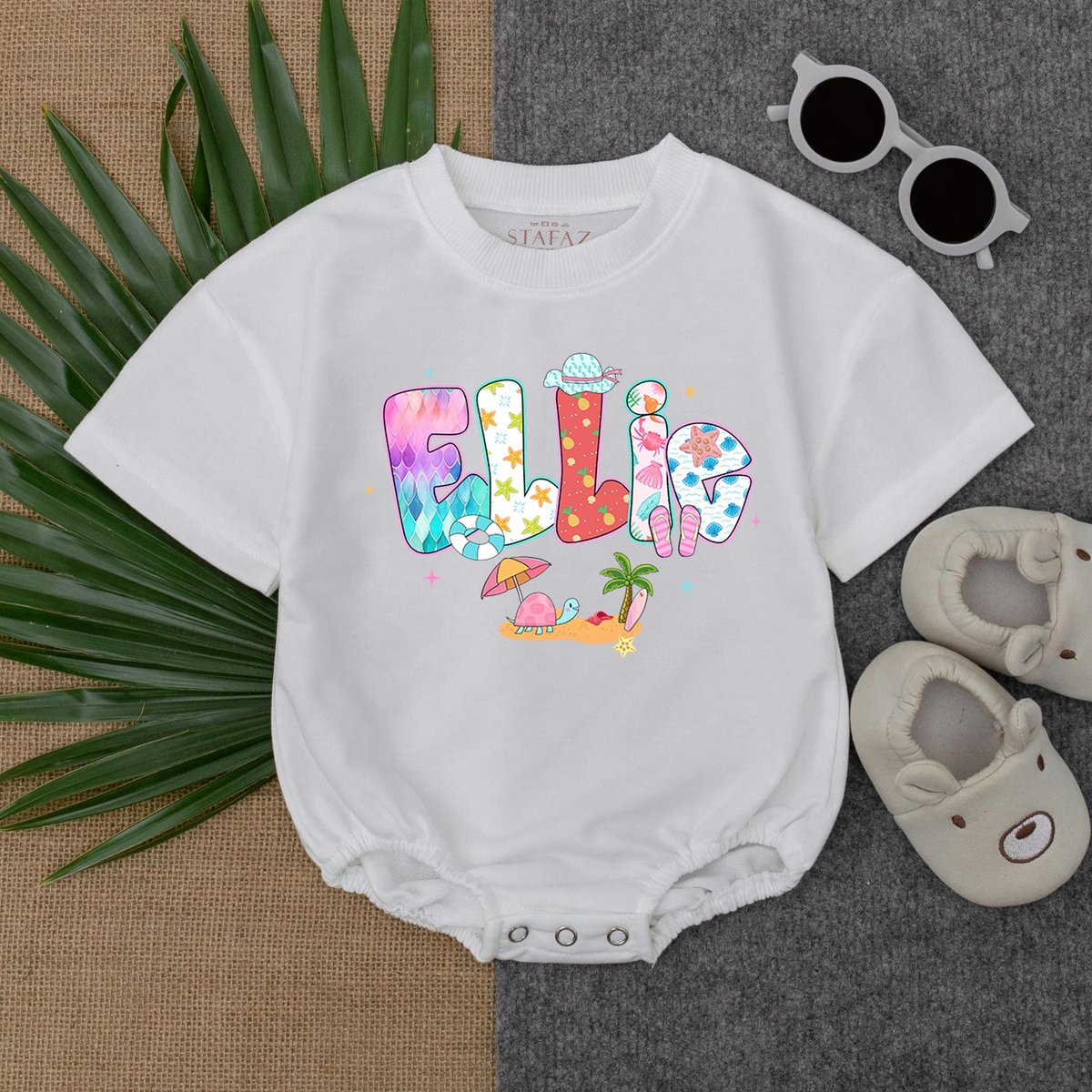 Customized Name Beach Girl RomperPersonalized T shirt Bubble Romper Summer Baby Clothes Baby Girl Be 430