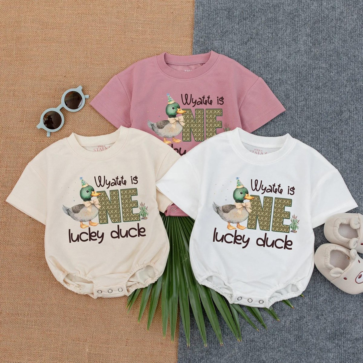 Customized One Lucky Duck Baby Bubble Romper First Birthday Romper Mallard Duck Bodysuit Duck 1st Bi 434
