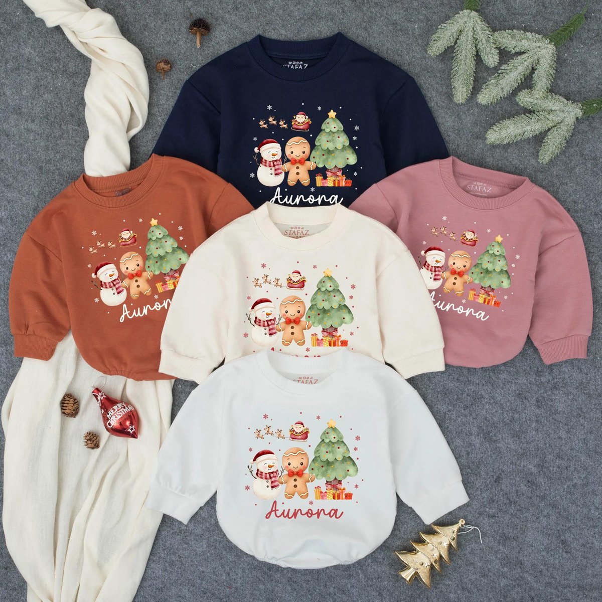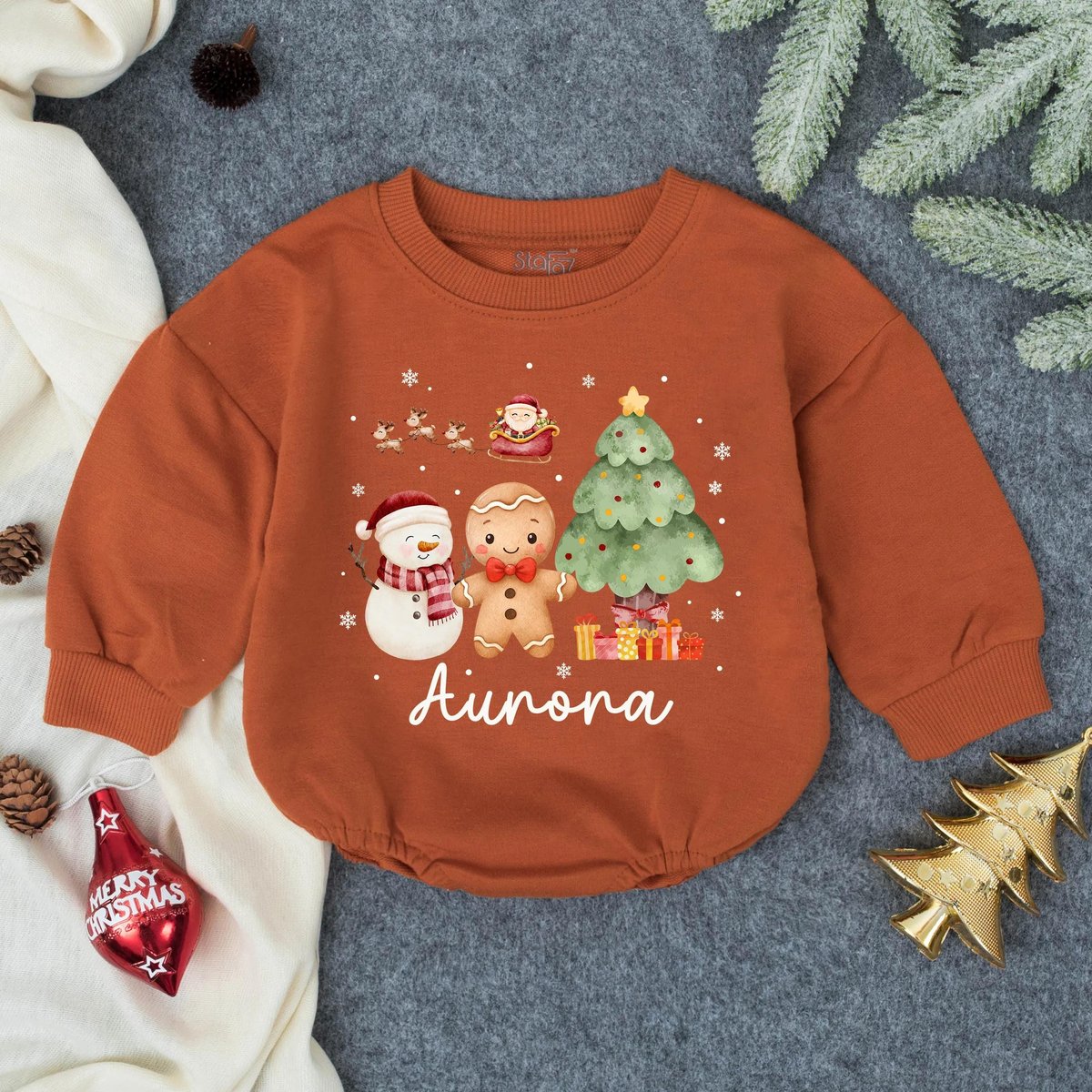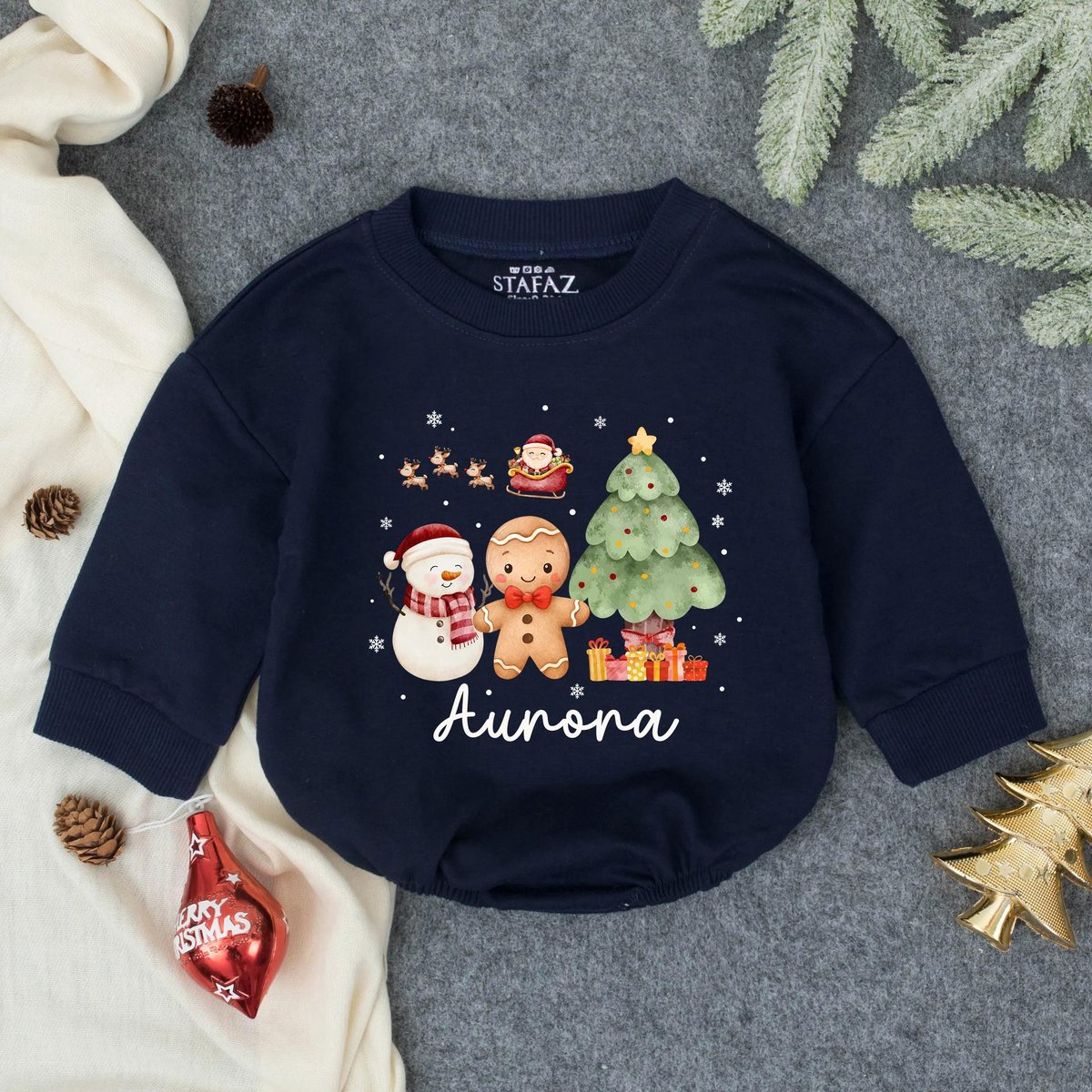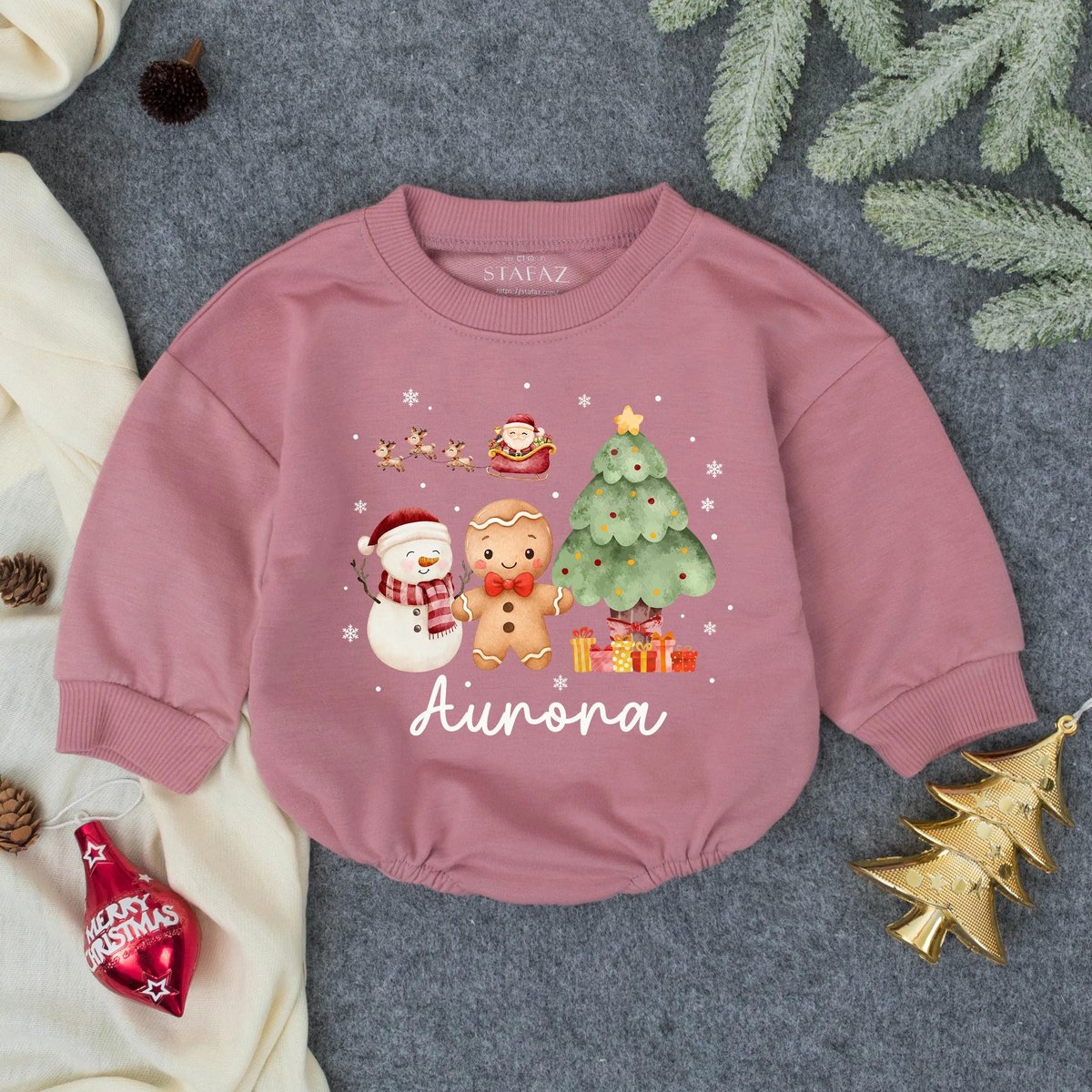 Customized Sleigh Girl Sleigh Christmas Bubble Romper First Christmas Bow Outfit Toddler Sweatshirt 437