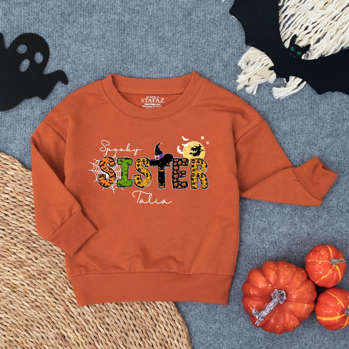 Customized Spooky Sister Toddler Sweatshirt Girly Pumpkin Halloween Shirt Baby Boo Fall Outfit Autum 434