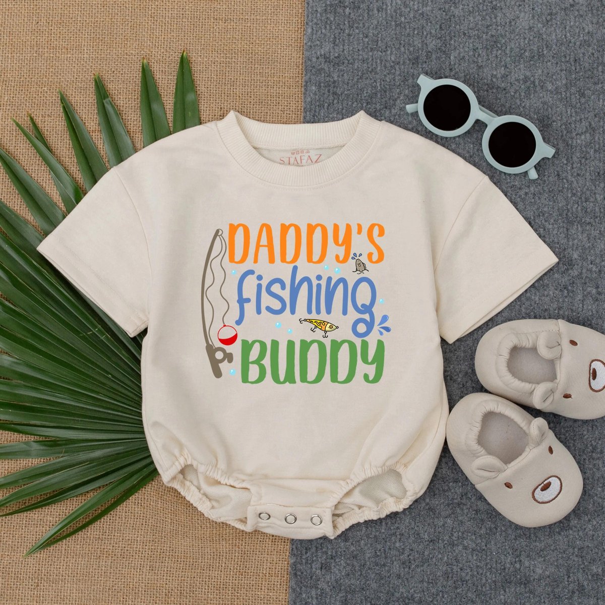 Daddys Fishing Buddy Baby Romper Short Sleeve Bubble Romper Baby Boy Girl Outfit Summer Baby Clothes 431