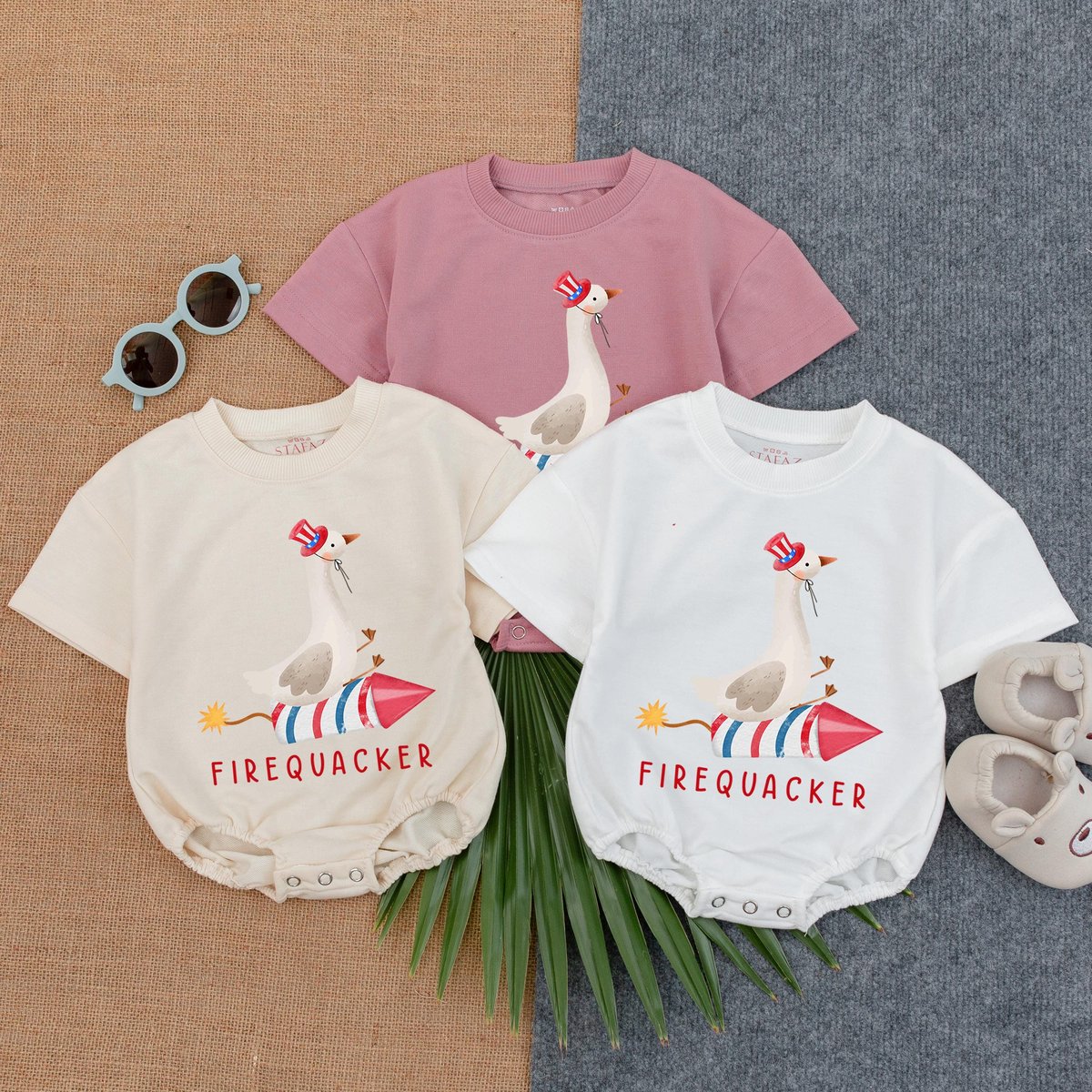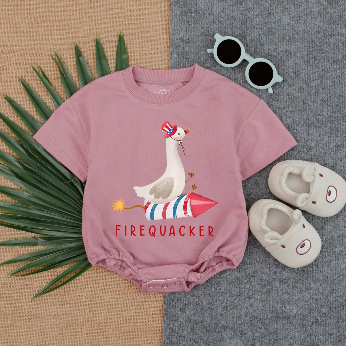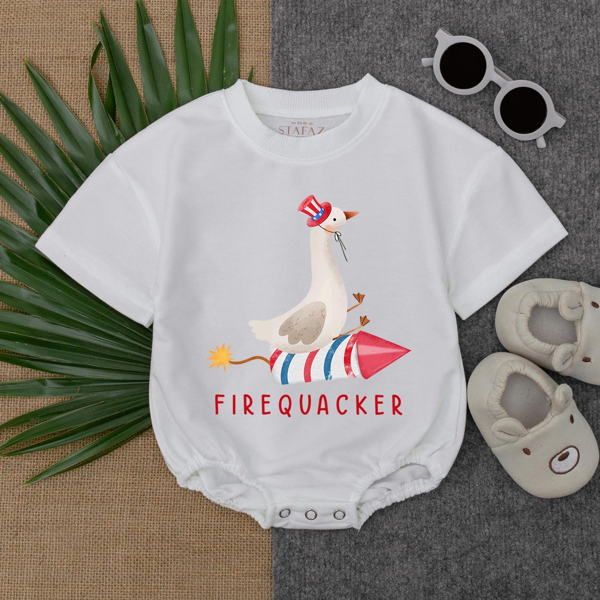 Firequacker Baby Romper Funny Fourth Of July T shirt Romper Patriotic Baby Clothes Red White Blue Ba 430