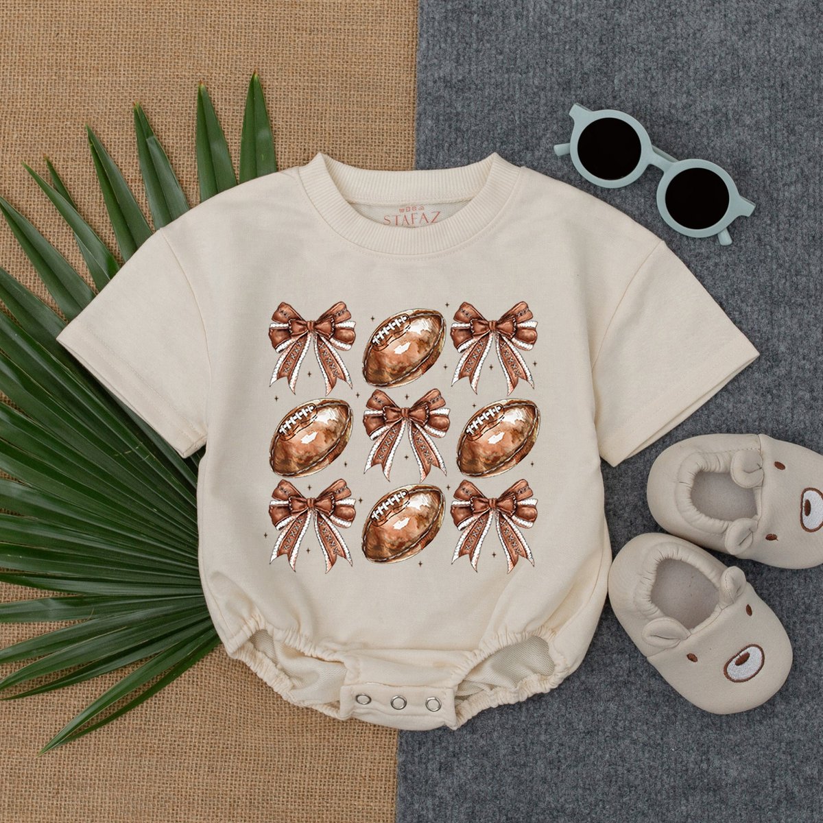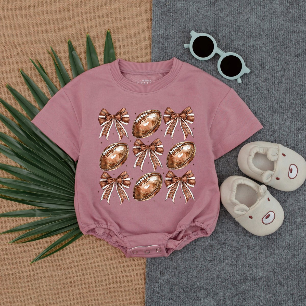Football Bow Bubble Romper Football BirthdayFootball Game Baby Gameday Outfit Baby ClothesShort Slee 177