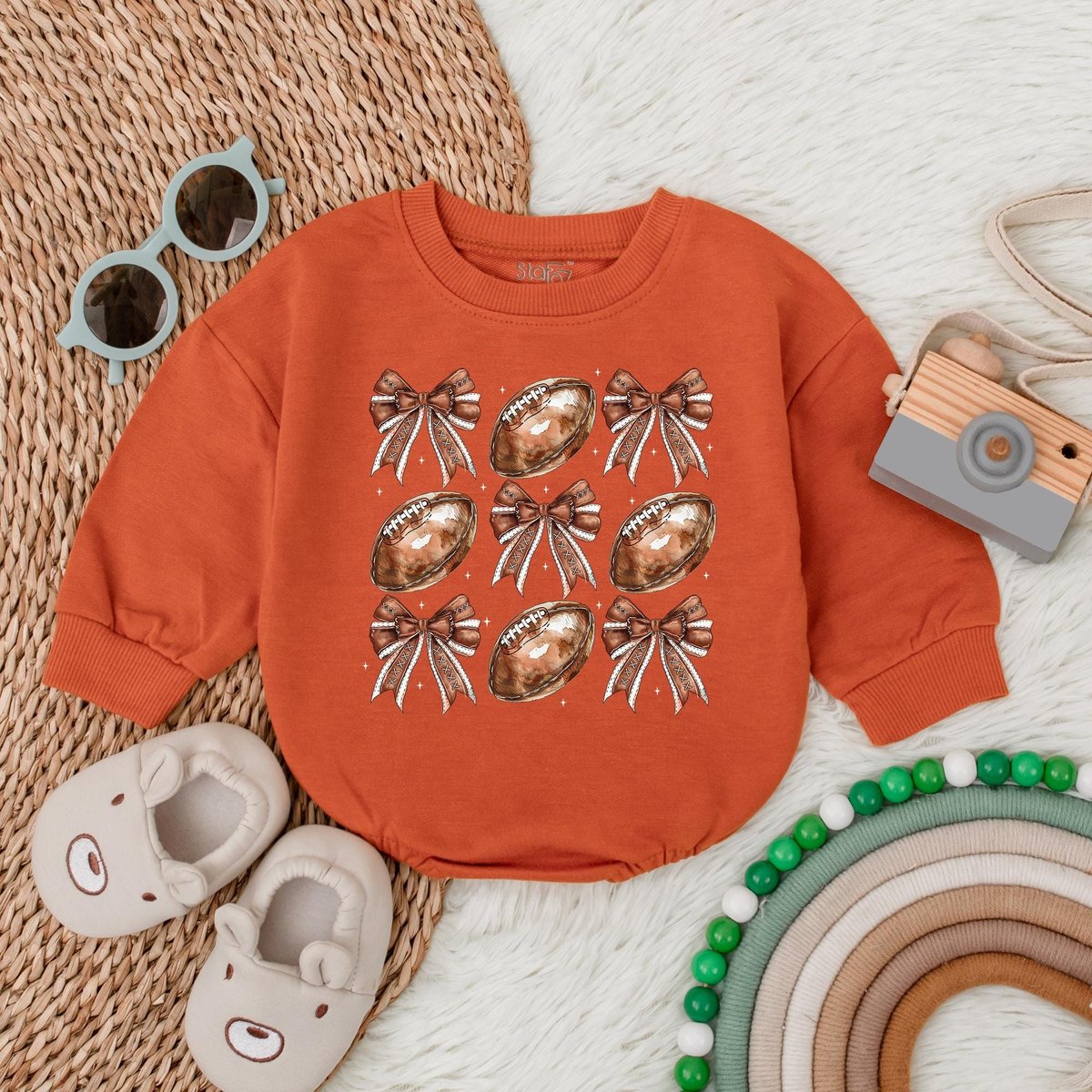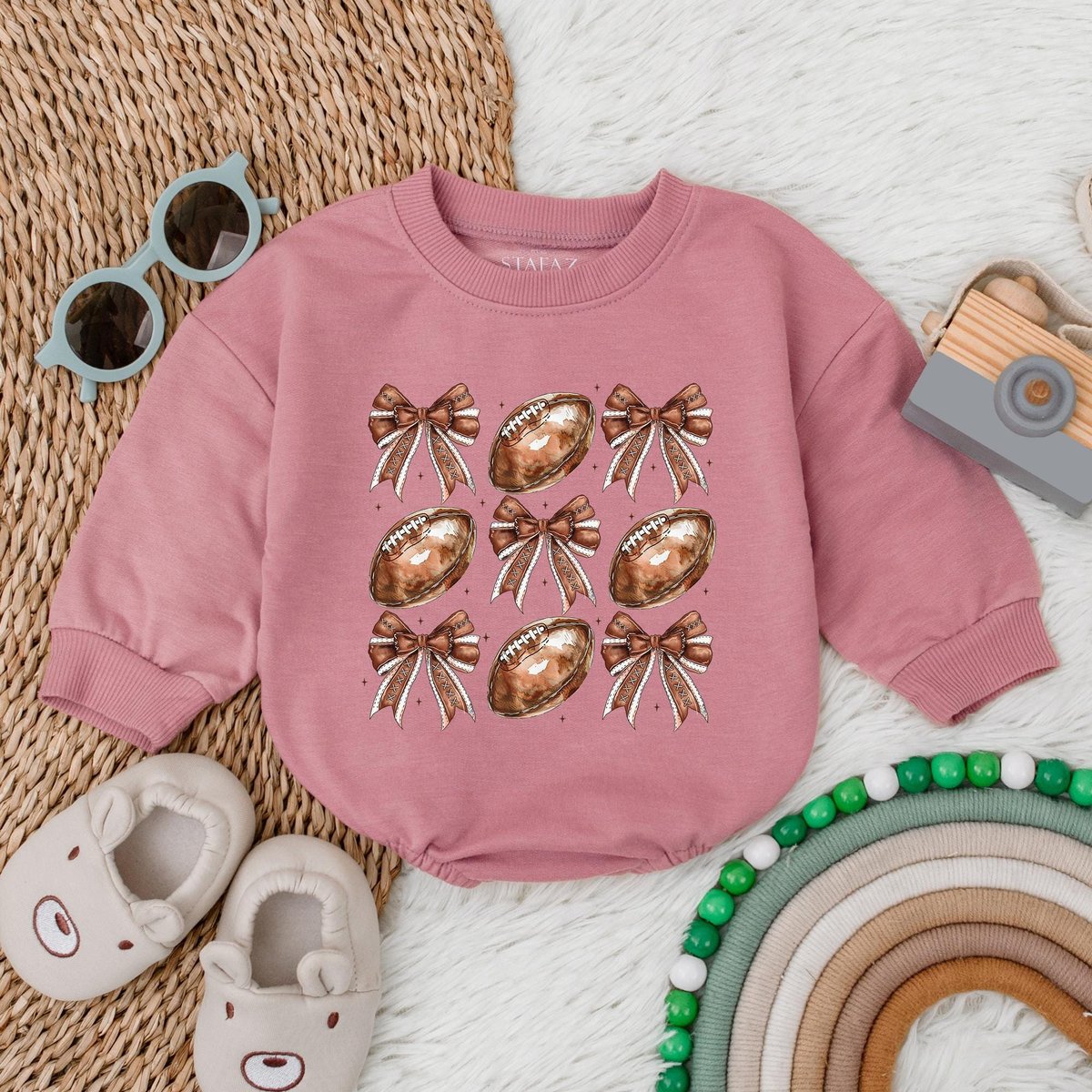 Football Bow Bubble RomperFootball Birthday OutfitFootball Game Baby Gameday Outfit Baby Clothes New 186