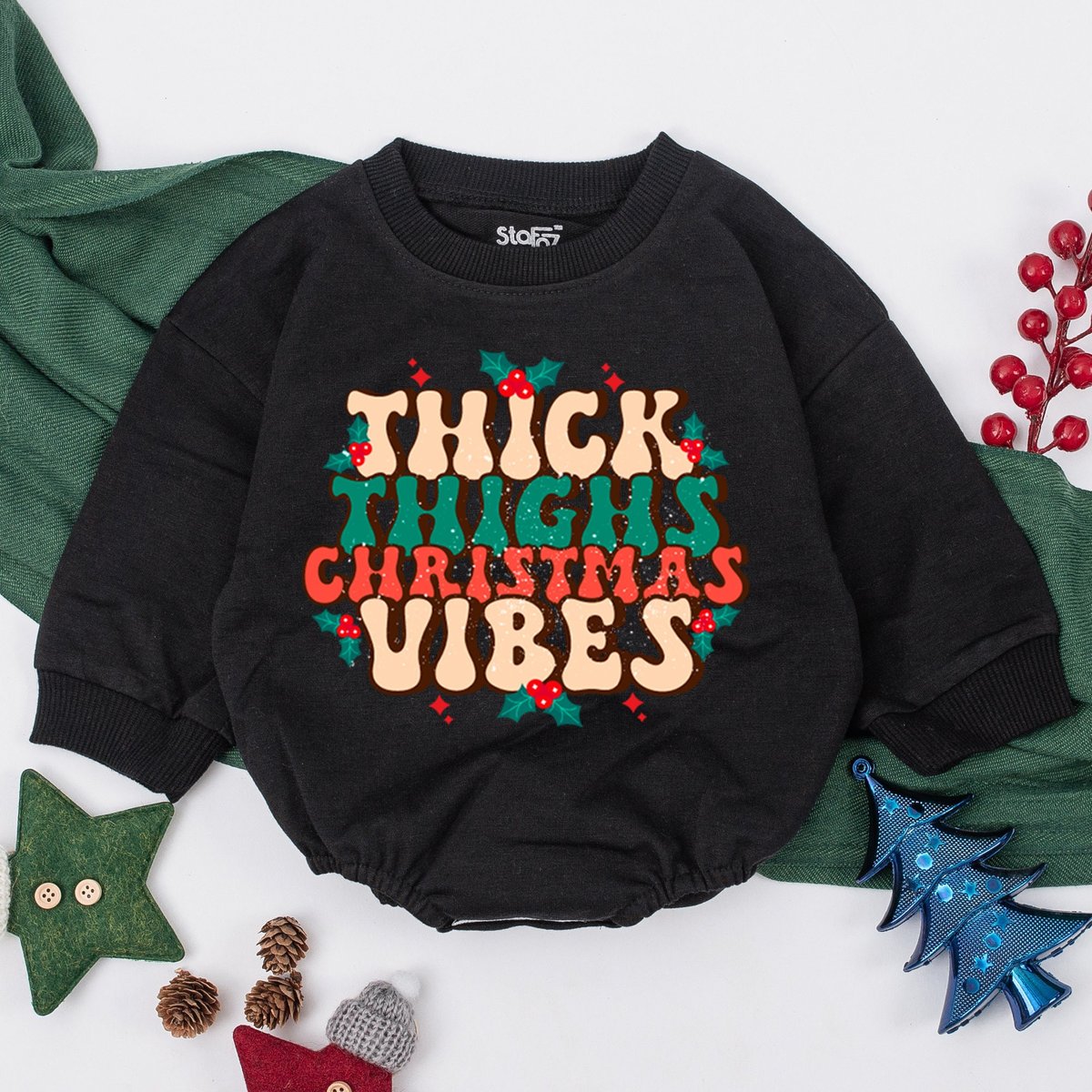 Funny Christmas Baby Romper Thick Thighs Christmas Vibes 1st Christmas Merry Christmas Vibes Baby Sh 156
