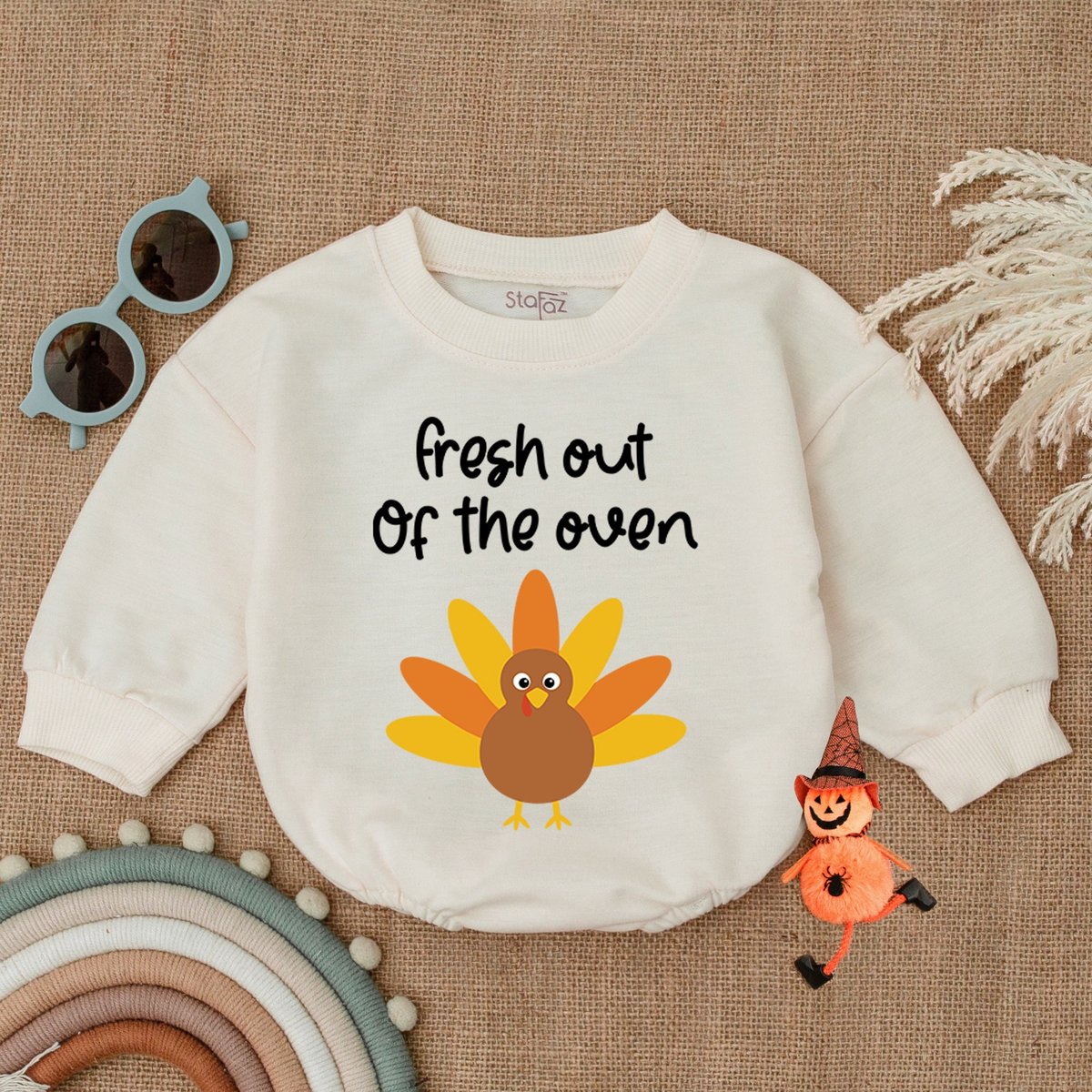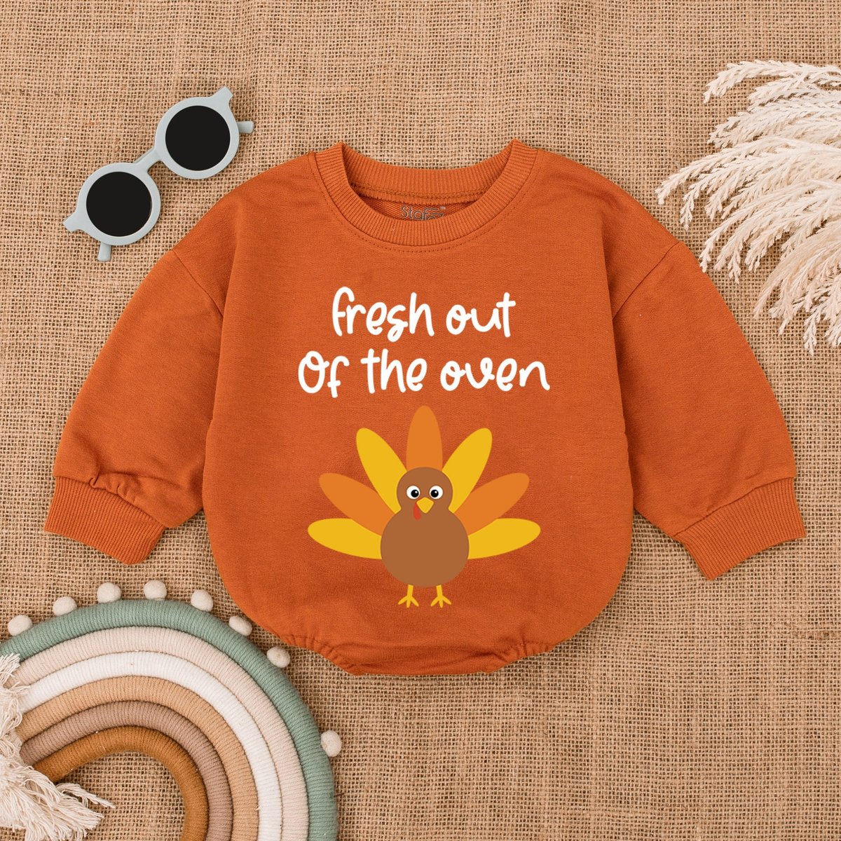 Fresh Out of the Oven Long Sleeve BodysuitThanksgiving Bubble RomperBaby Thanksgiving ClothesFirst F 178