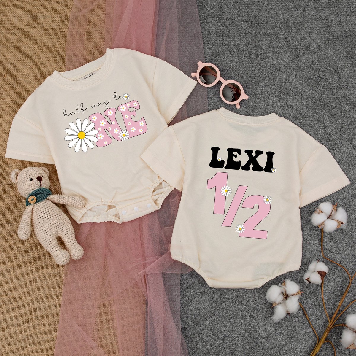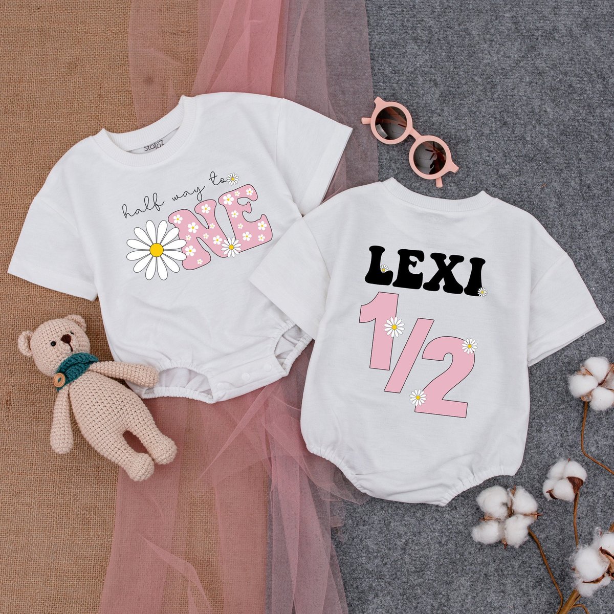 Girls Daisy Half Birthday Romper12 Daisy Birthday Bodysuit Girls Boho Birthday Shirt Cute Personaliz 177
