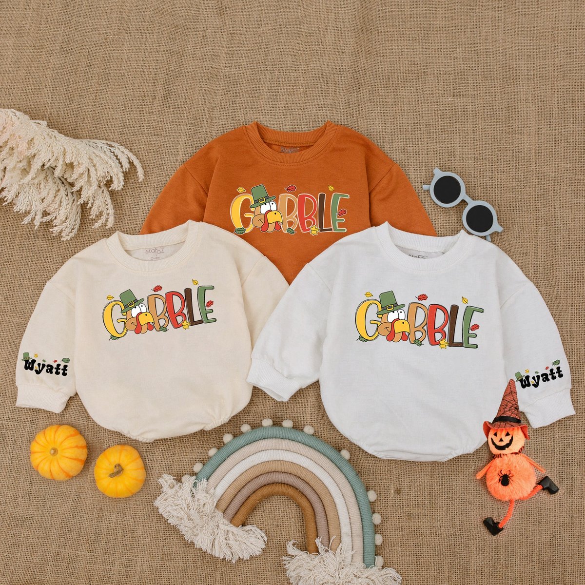 Gobble Baby OutfitFirst Thanksgiving Bubble RomperBaby Thanksgiving ClothesFall Pumpkin Baby Bodysui 177
