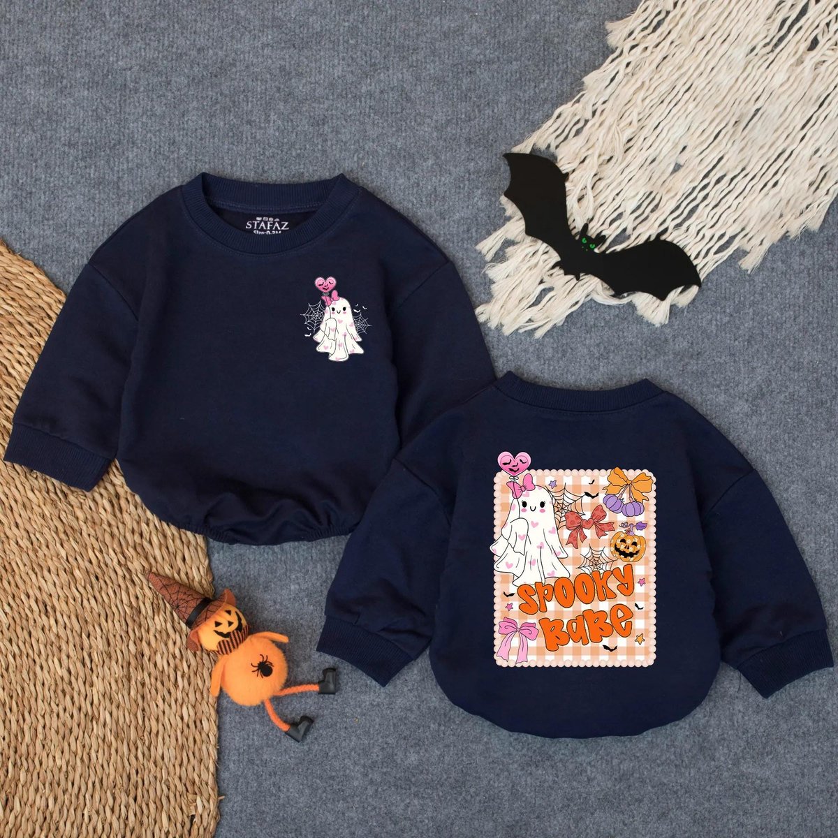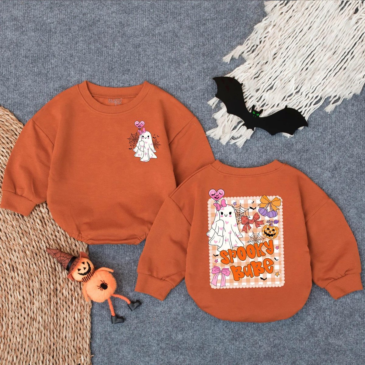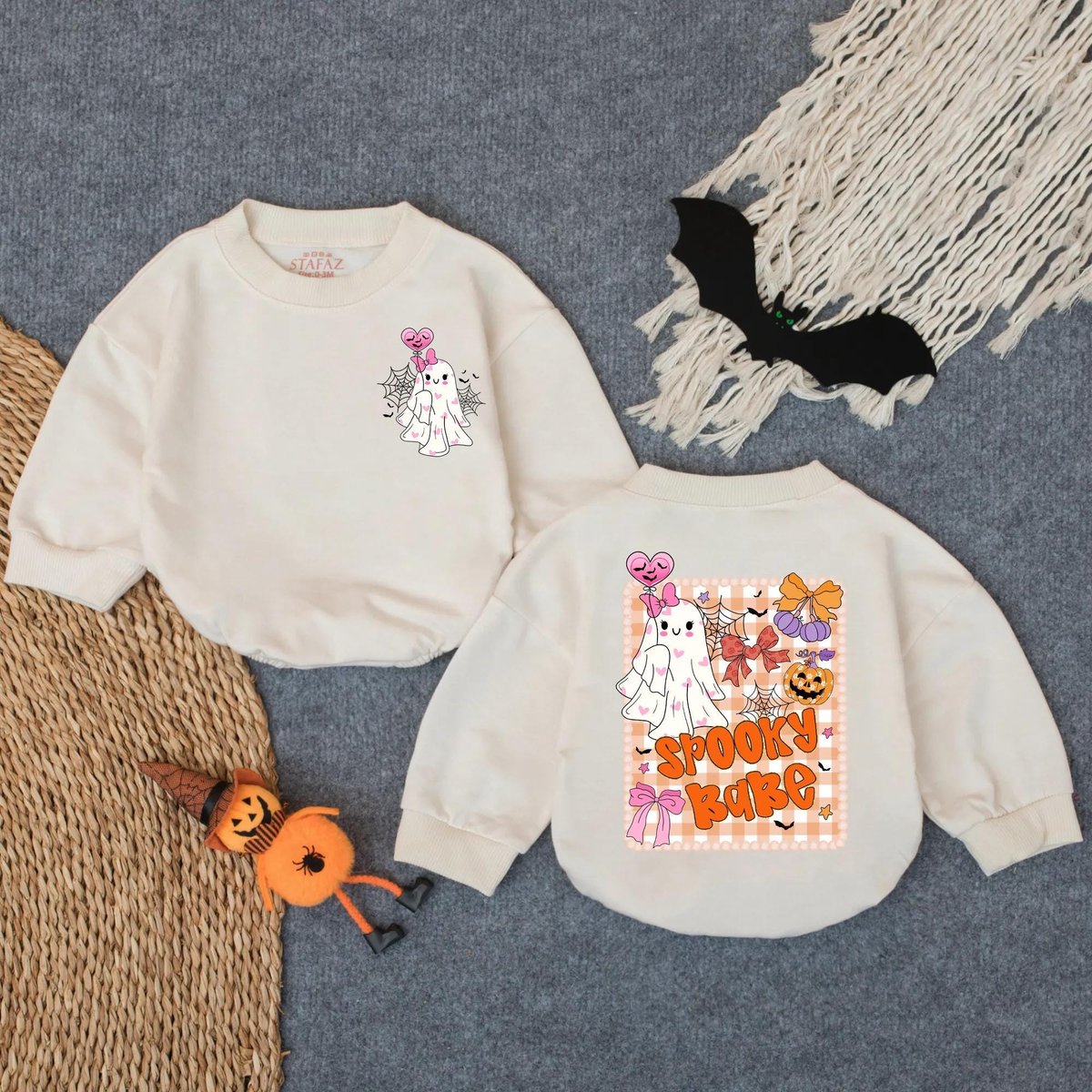 Halloween Ghost Bubble Romper Spooky Babe Baby Girl Outfit Boho Pumpkin Bow Floral Newborn Bodysuit 432