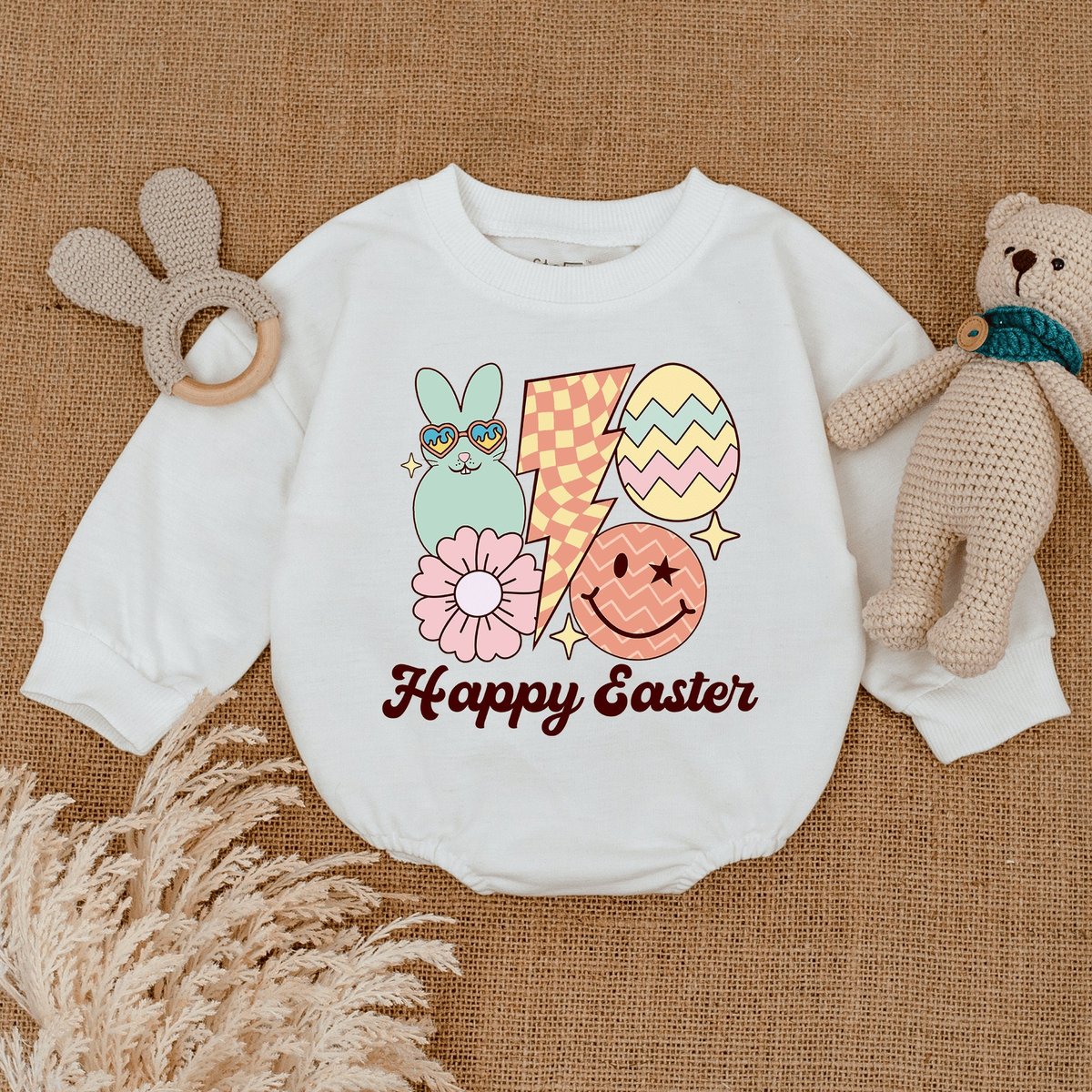 Happy Easter Baby Romper Easter Baby Outfit First Easter Shirt Easter Retro Bodysuit Easter Baby Rom 164