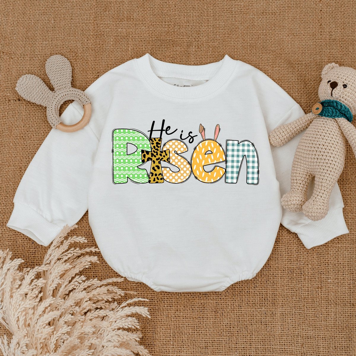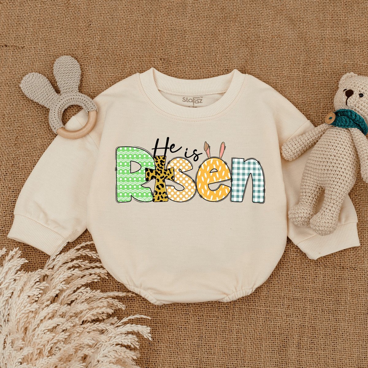 He Is Risen Baby Romper Easter Retro Natural Infant Toddler Youth Tee Easter gifts for kids Romper f 164