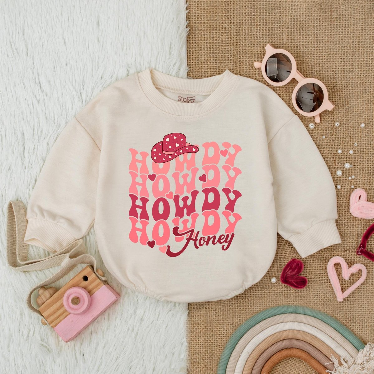 Howdy Honey Valentine Baby Bubble RomperFirst Valentines Baby OutfitValentines Day Shirt Baby Bodysu 183