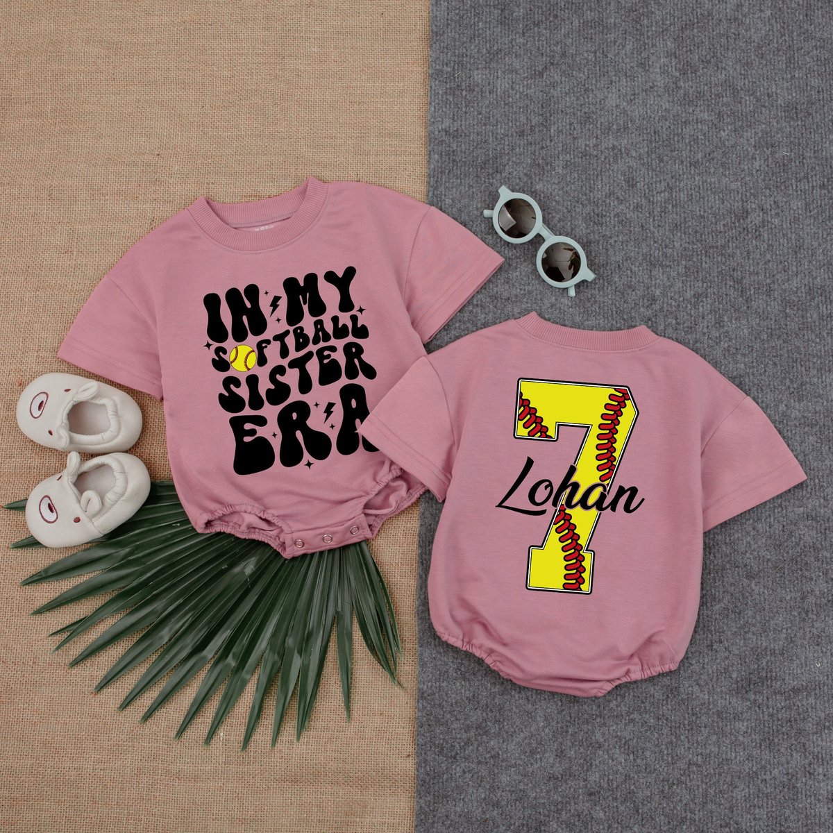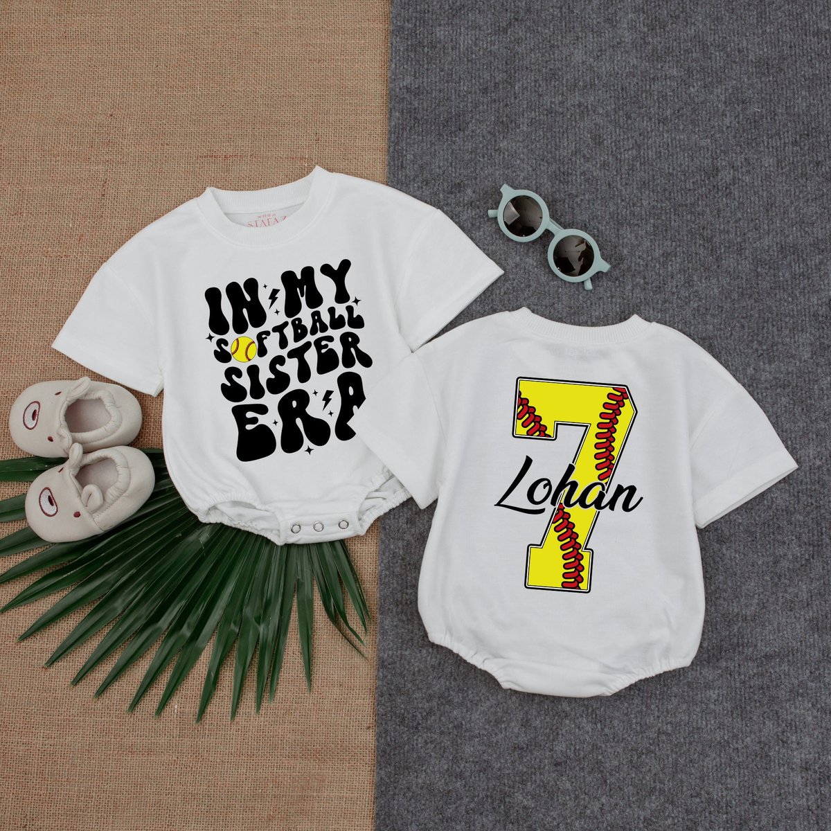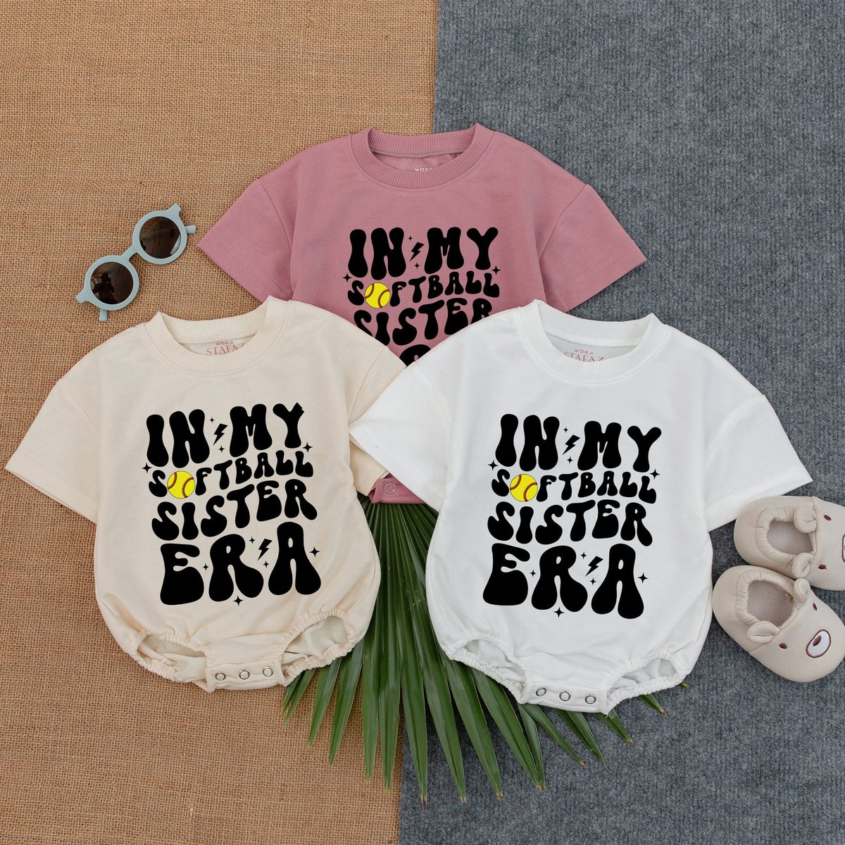 In my Softball Sister Era Bubble Romper Game Day Baby Clothes Gameday Outfit Baby Clothes Short Slee 177