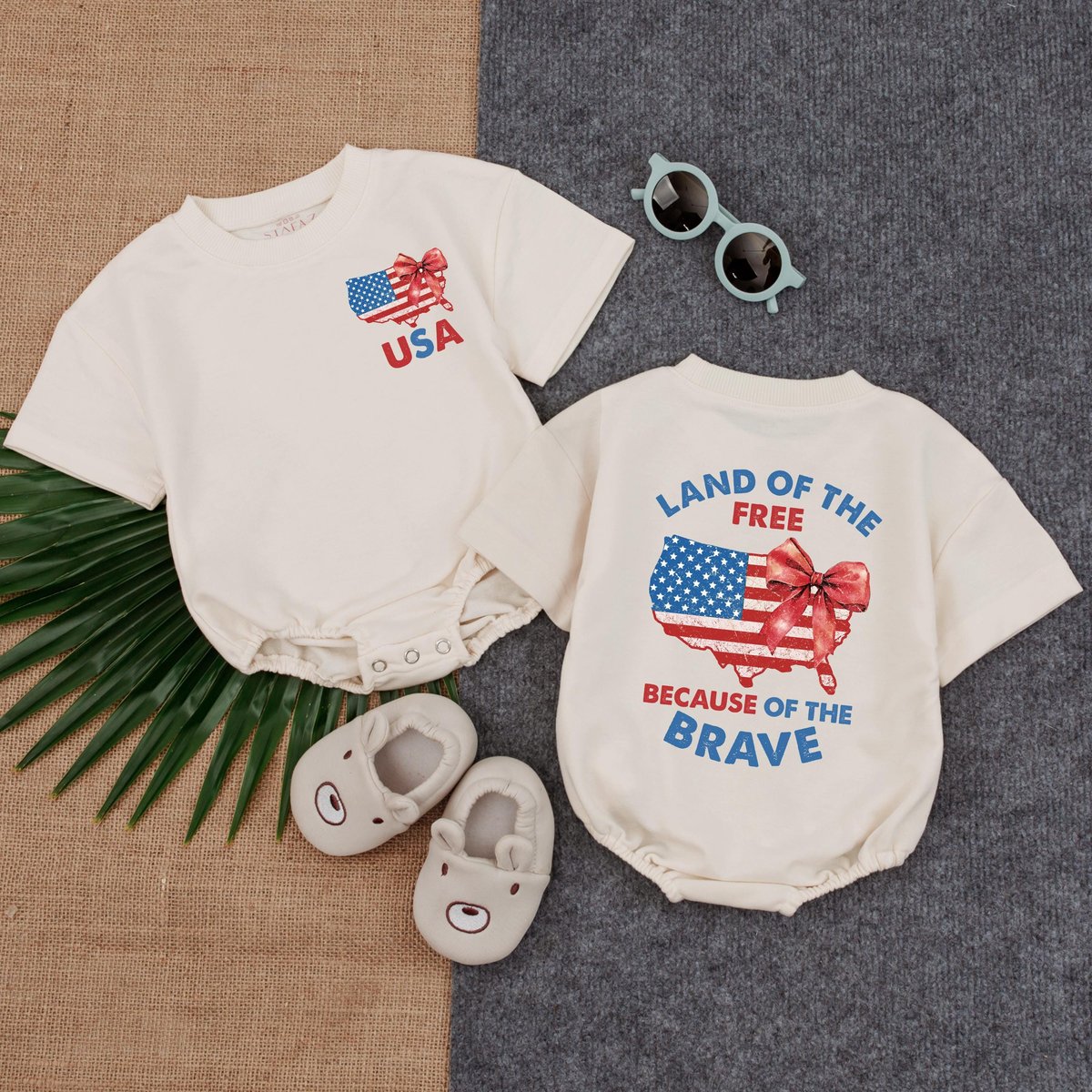 Land Of The Free Baby Bubble RomperRetro USA Map Bow GirlFourth Of July Baby Girl OutfitPatriotic Bu 430