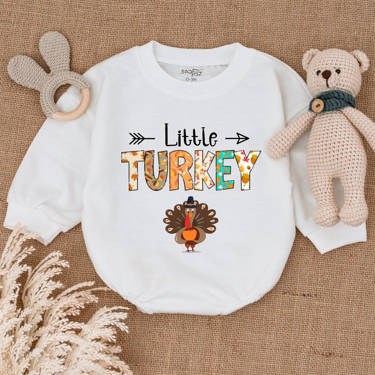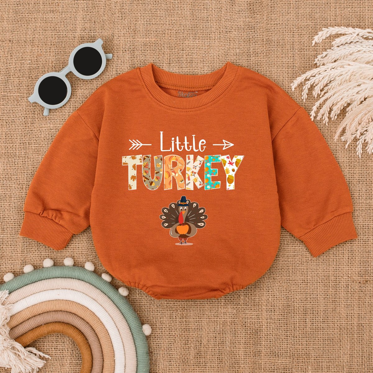 Little Turkey Baby Outfit First Thanksgiving Bubble Romper Thanksgiving Clothes Pumpkin Baby Bodysui 173