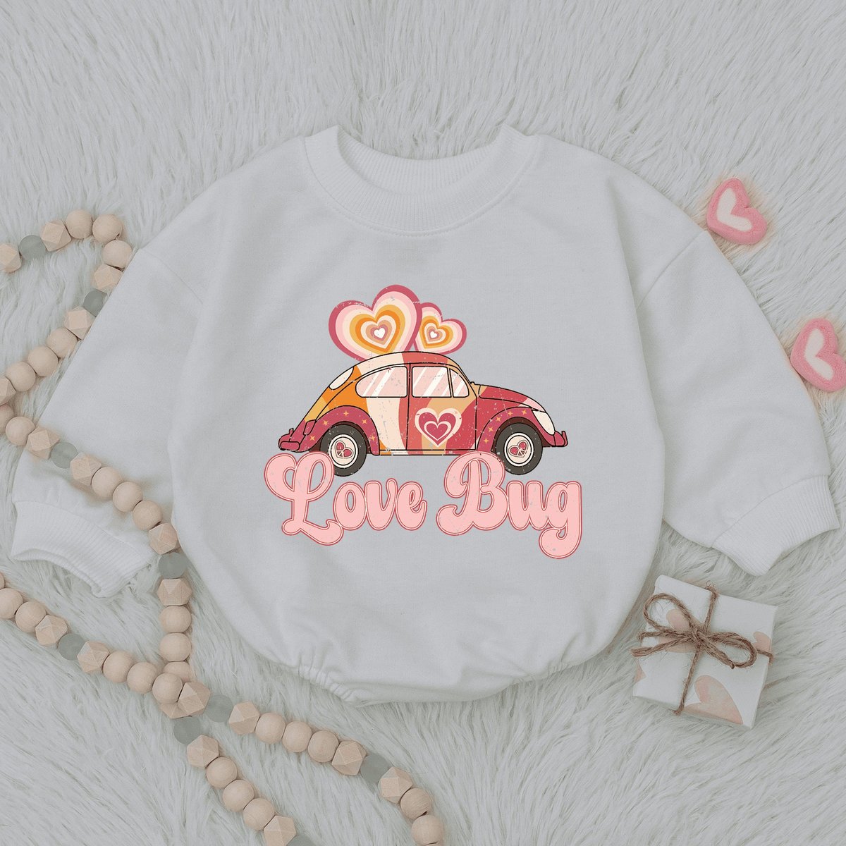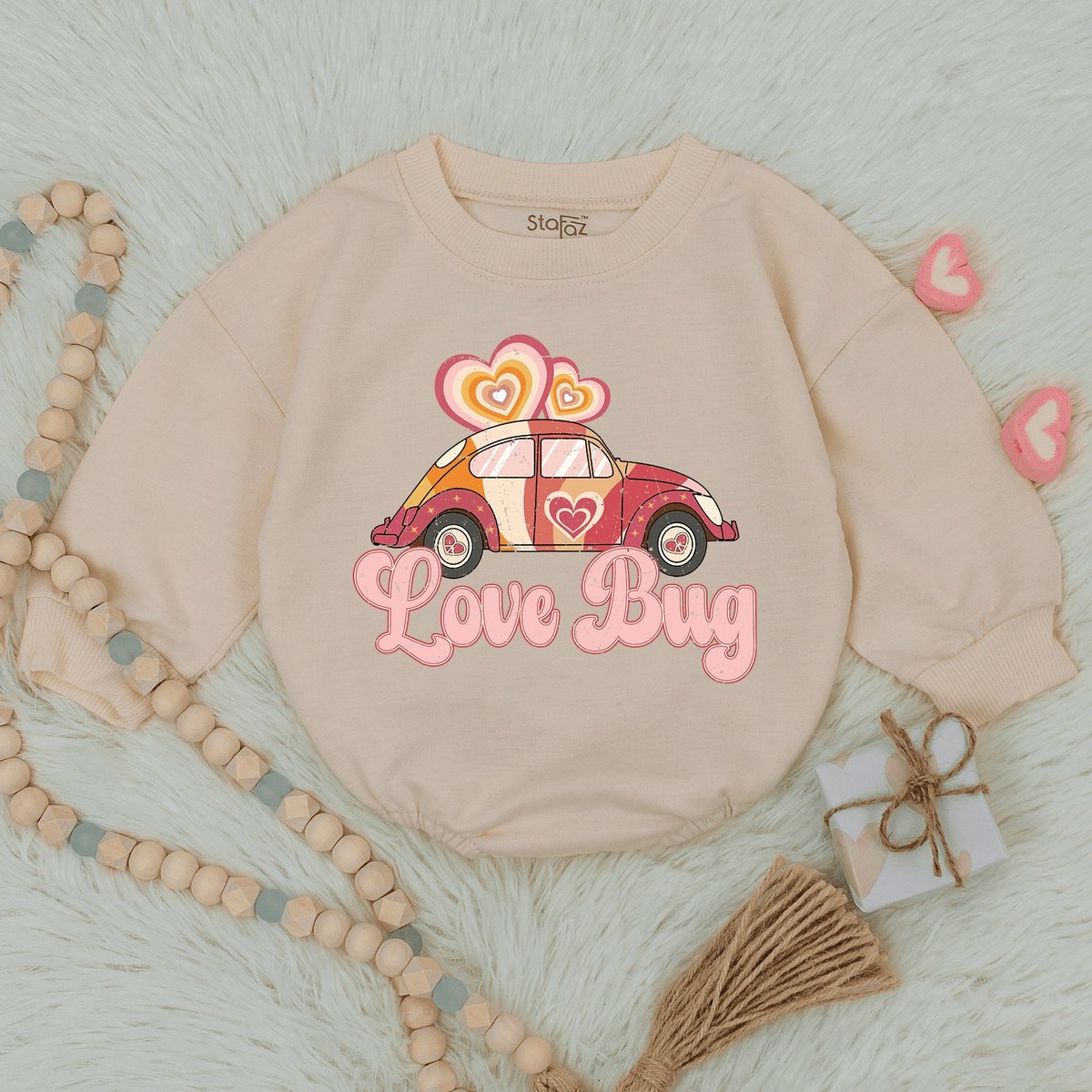 Love Bug valentine Baby Romper Retro Valentine Baby First valentine Baby shower gift Bubble Romper B 164
