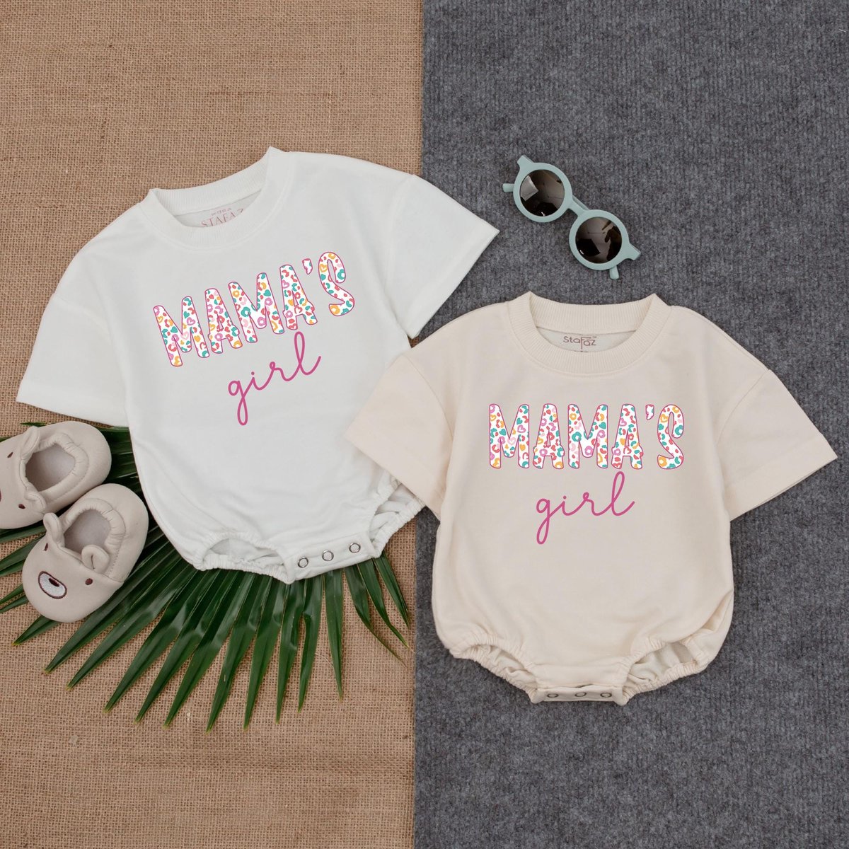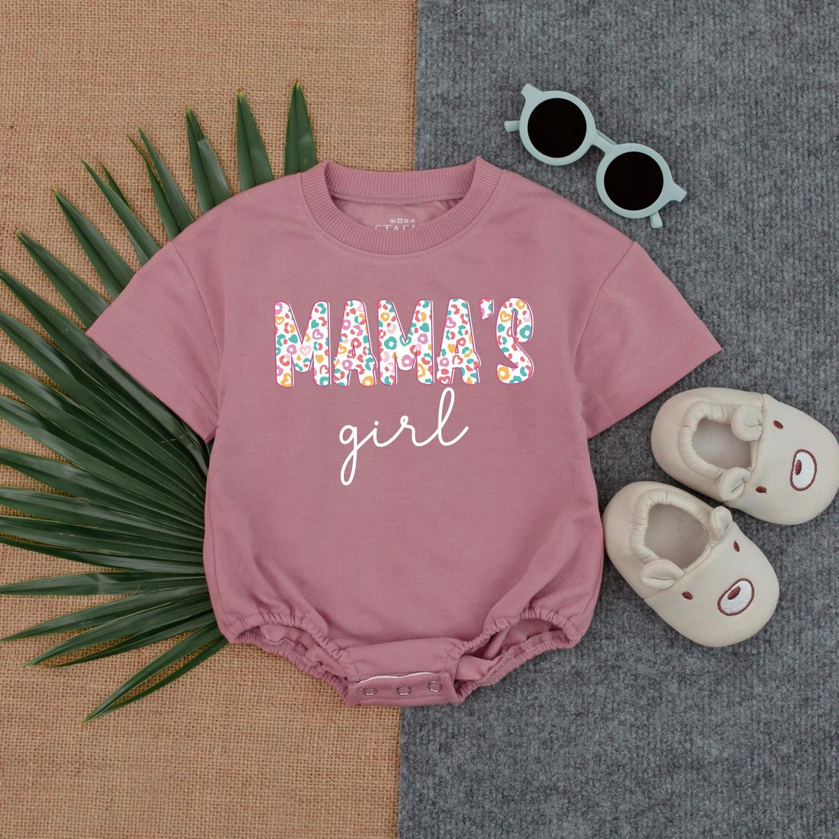 Mama’s Girl Pink Bubble Romper Baby Baggy T shirt Romper Mama’s Little Bestie Tee Fathers Day Gift 187