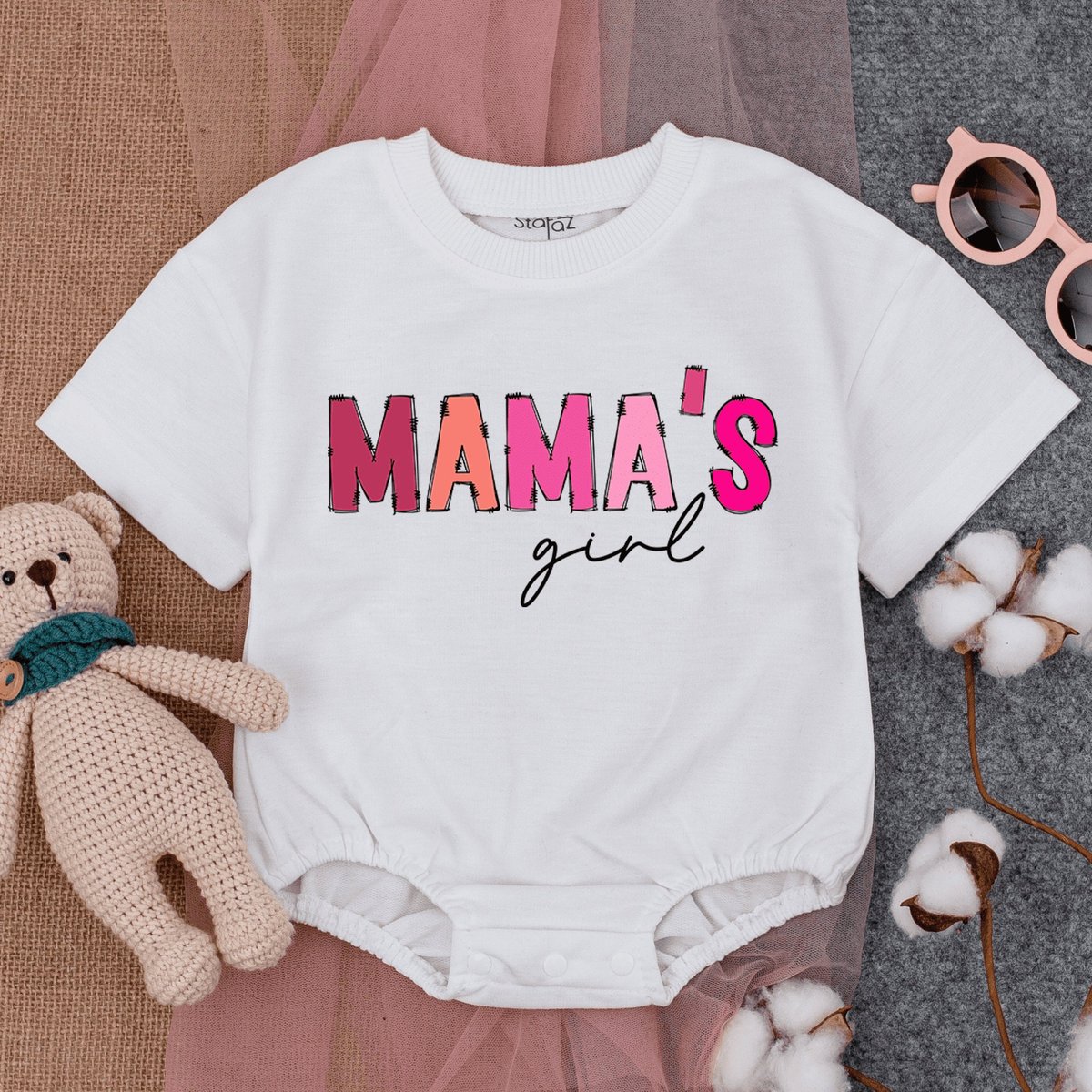 Mama’s Girl Pink Bubble Romper Short Sleeve Baby Baggy t shirt Romper Mommy’s Girl Tee Mothers Day 169