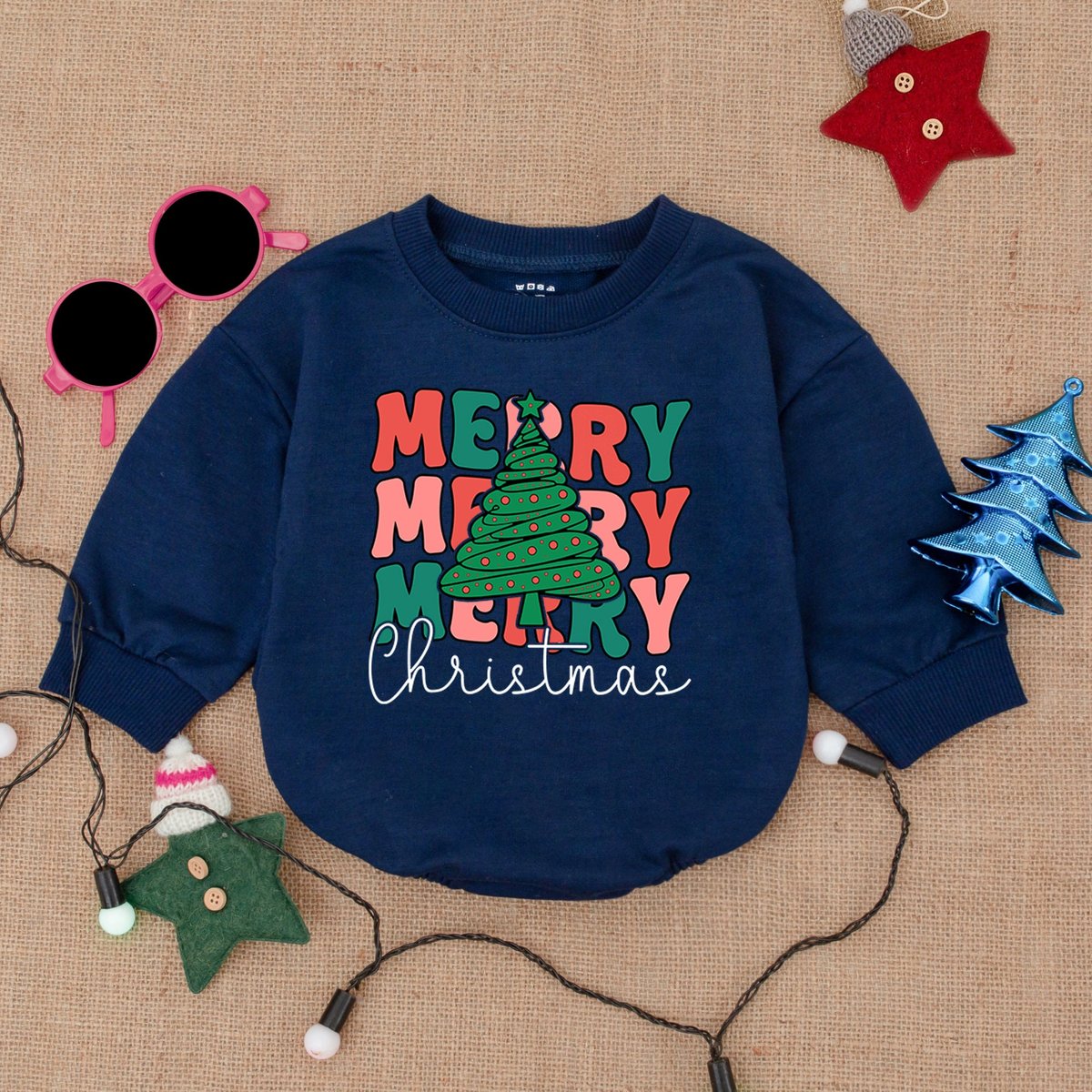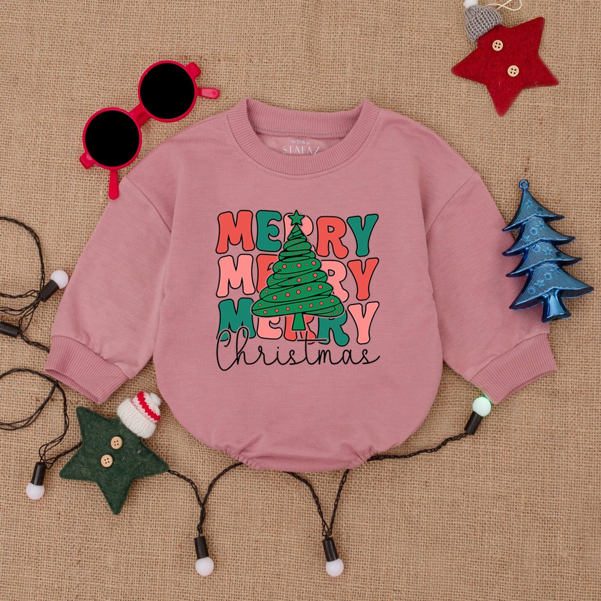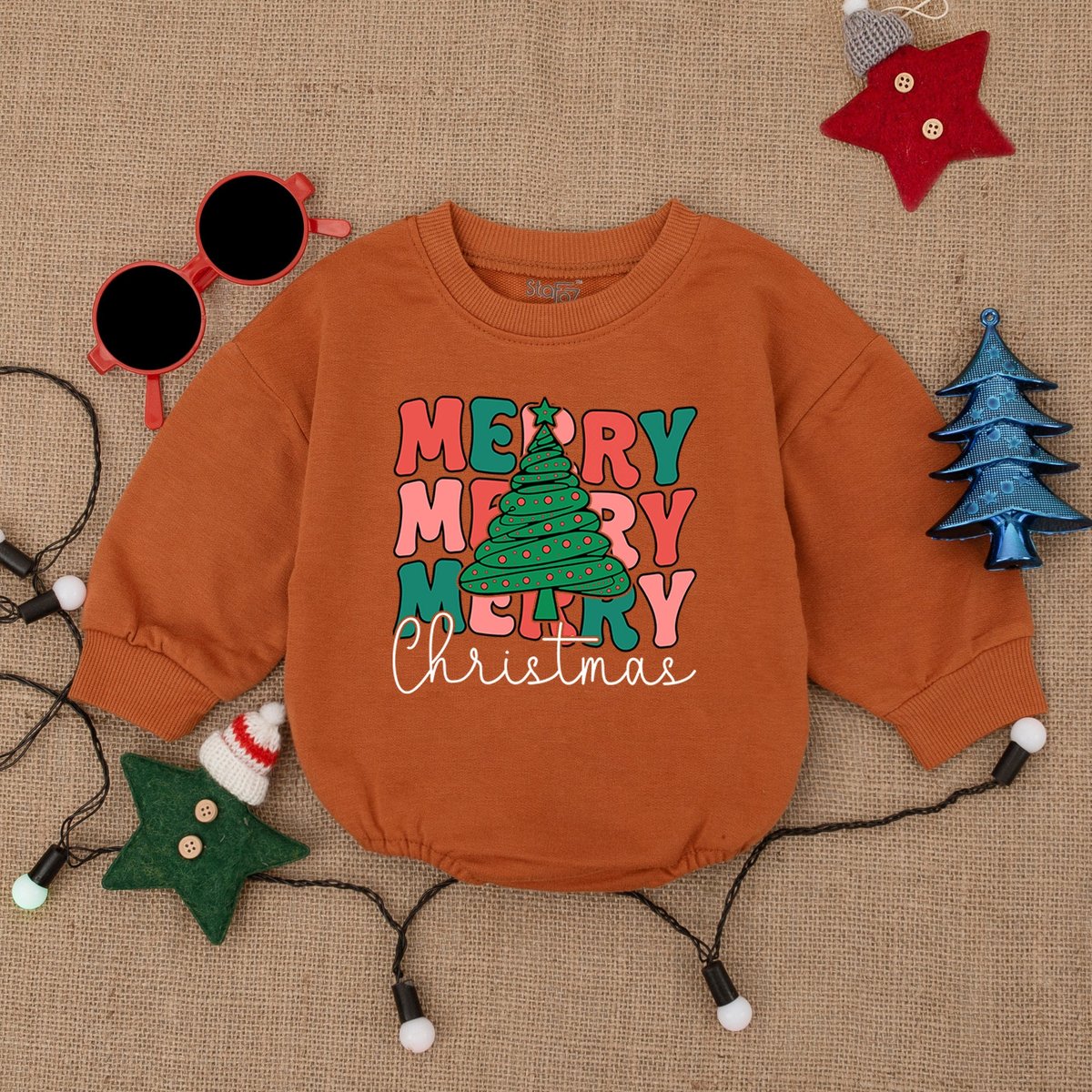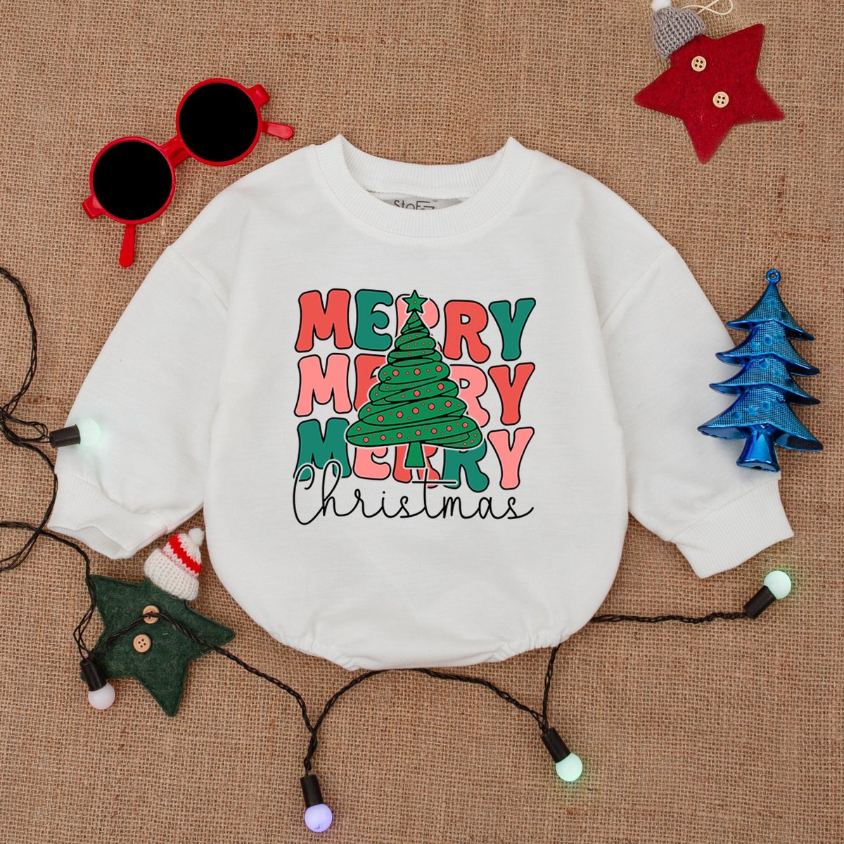 Merry Christmas Bubble Romper Christmas Sweatshirt Romper Baby Christmas Outfit Christmas Tree Toddl 180