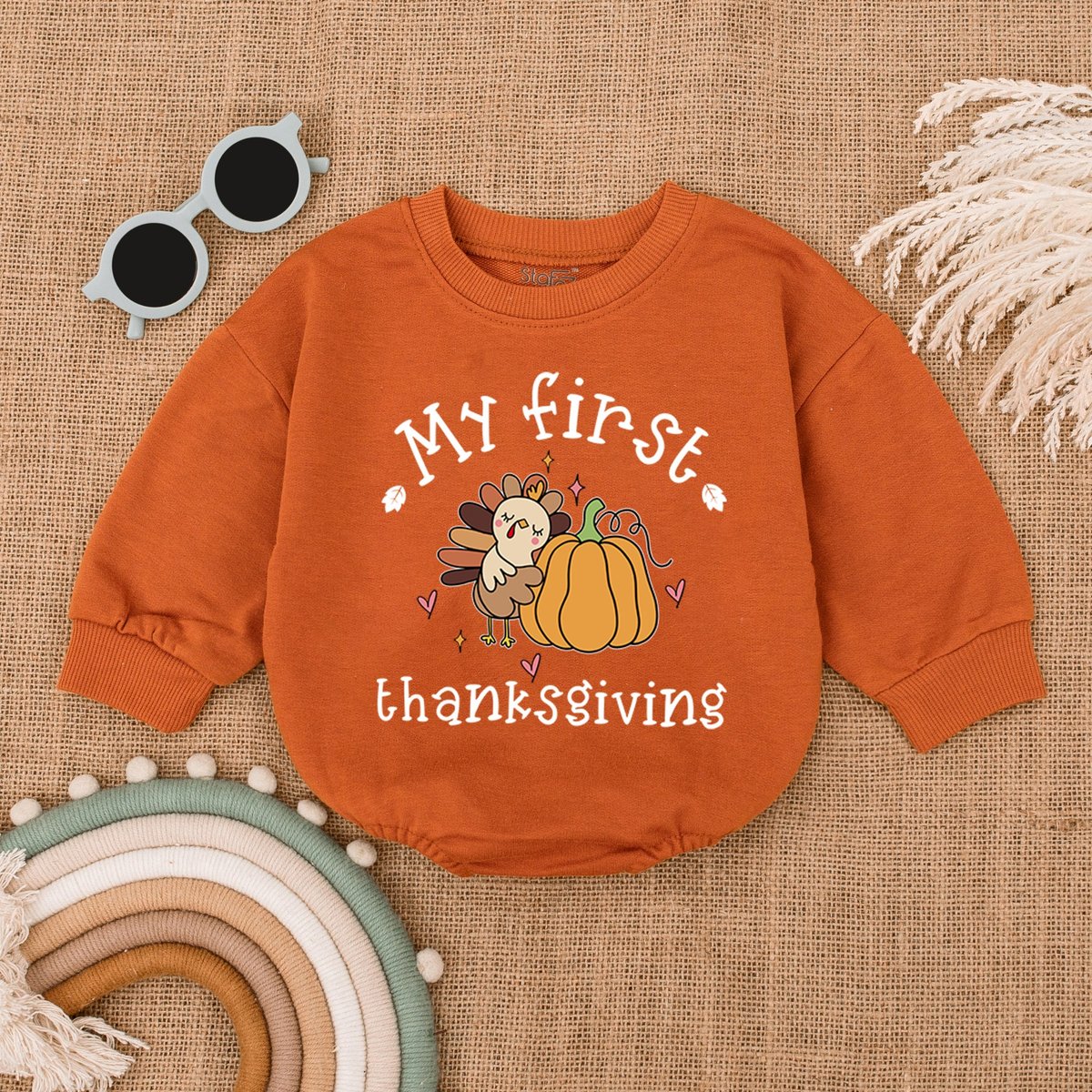 My First Thanksgiving Turkey Baby Outfit Pumpkin Bubble Romper Baby Thanksgiving Clothes Fall Baby O 176