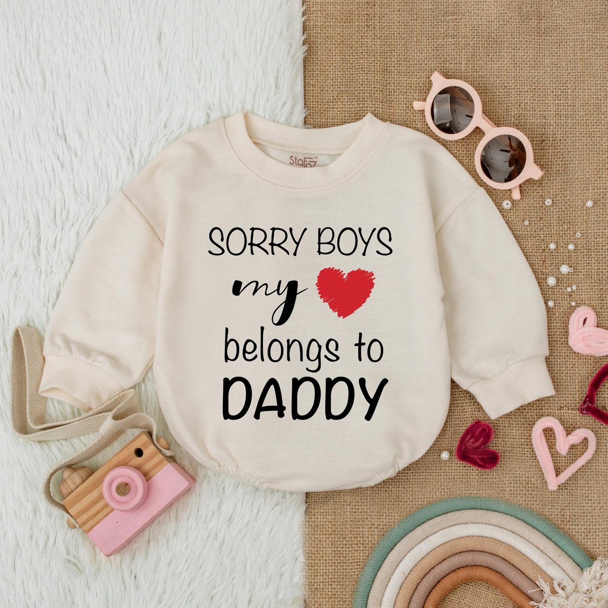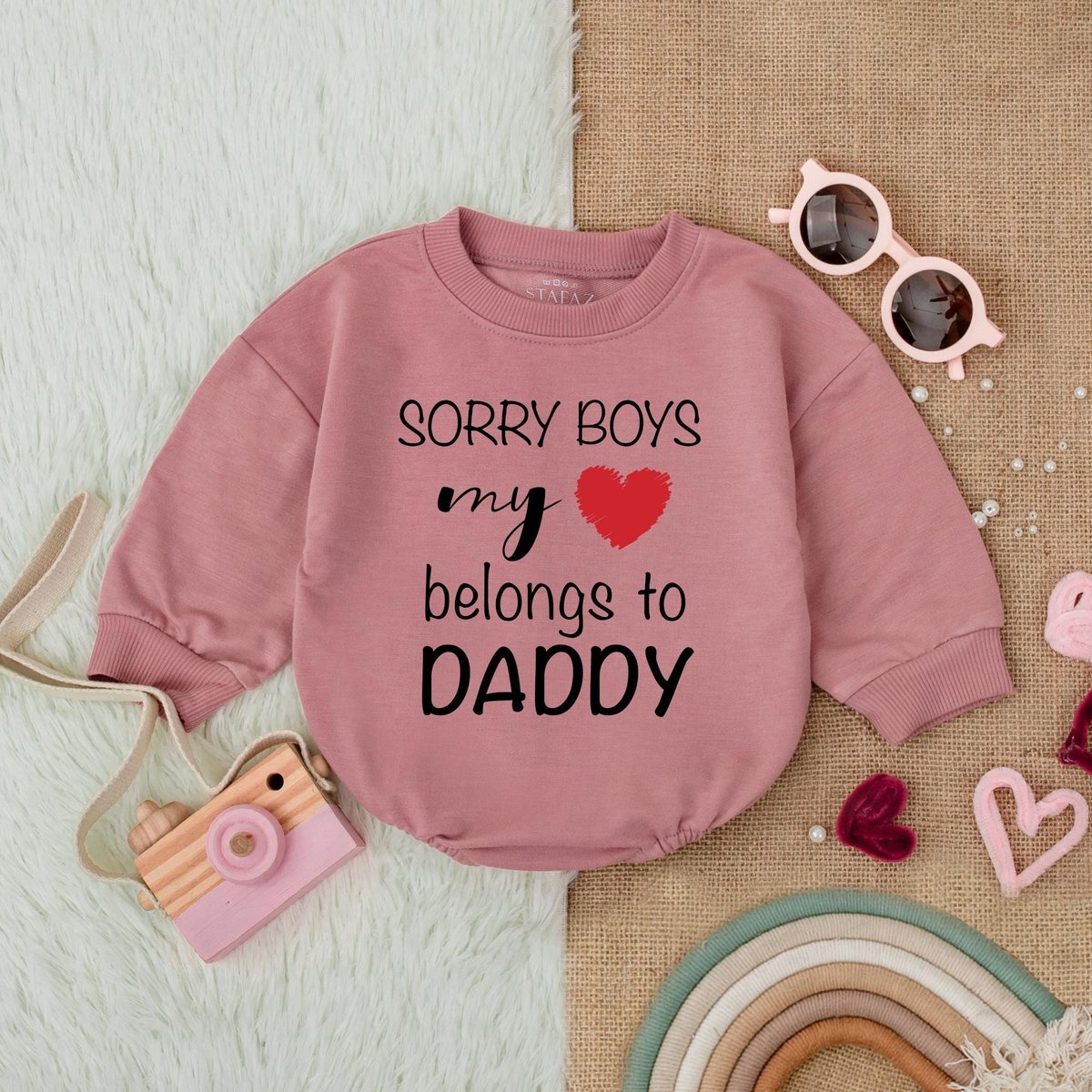 My Heart Belongs To Daddy Baby Bubble Romper Baby Girl ClothesFirst Valentines Baby OutfitValentines 184