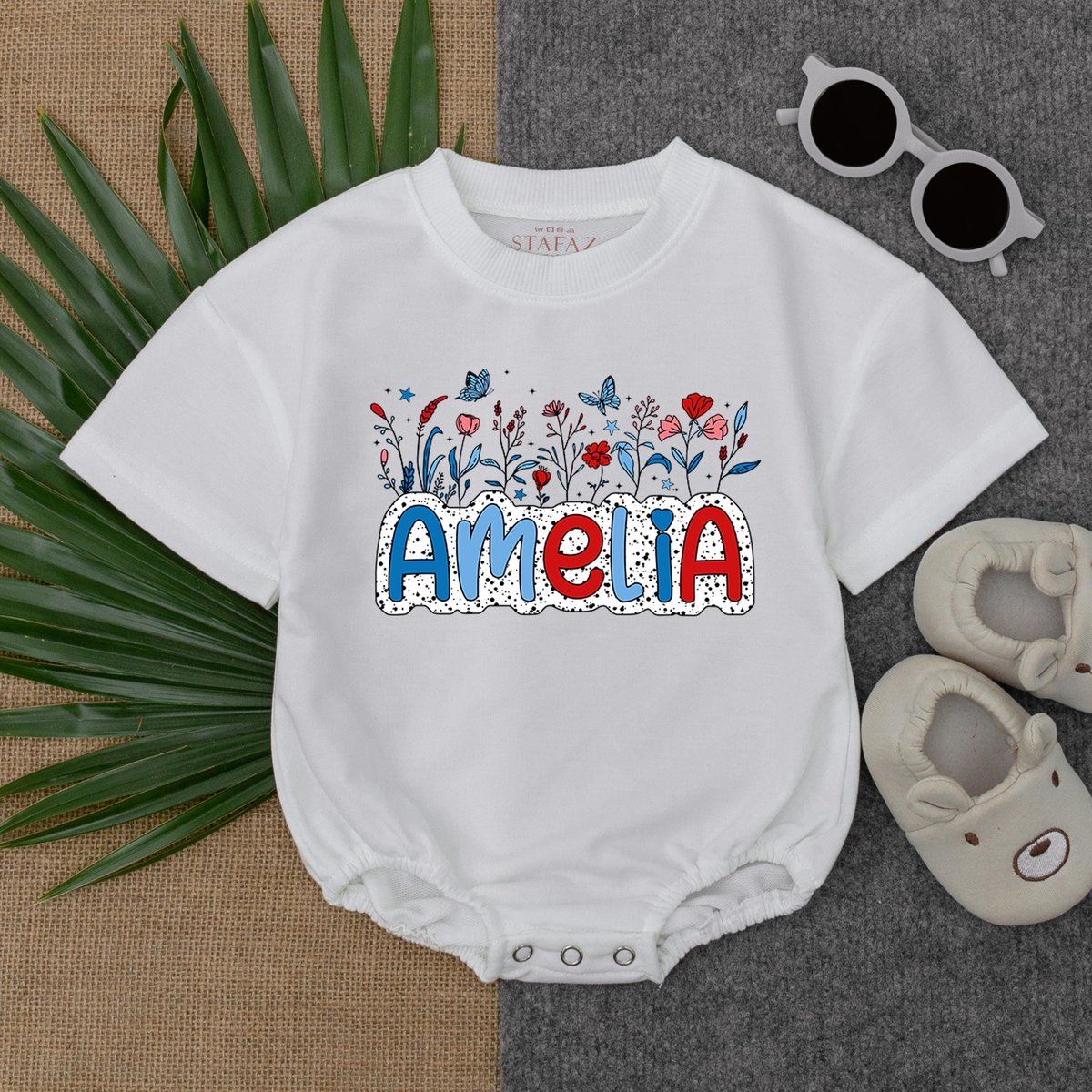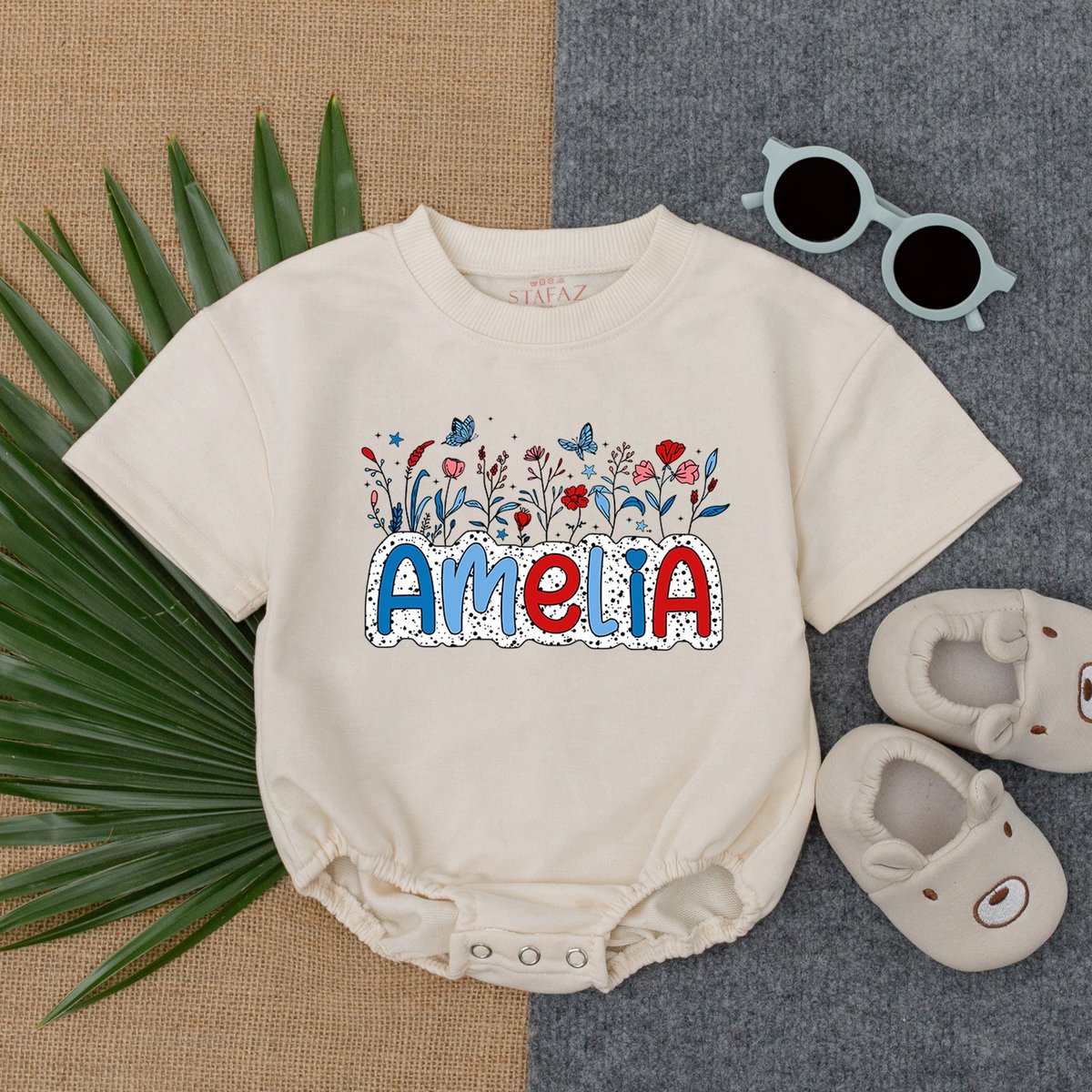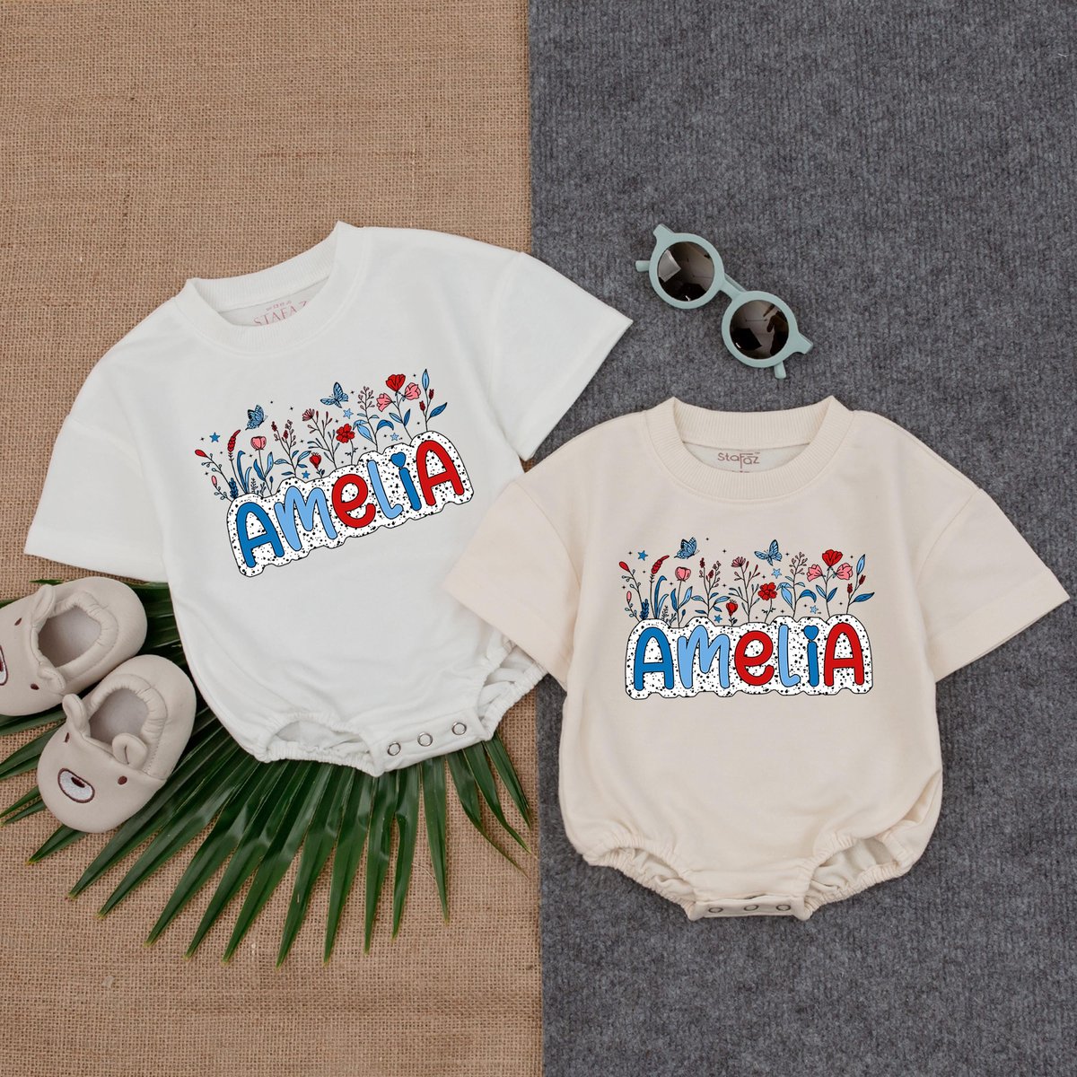 Personalized 4th of July Baby Bubble Romper Custom Wildflower Name T shirt Romper for GirlsIndepende 429