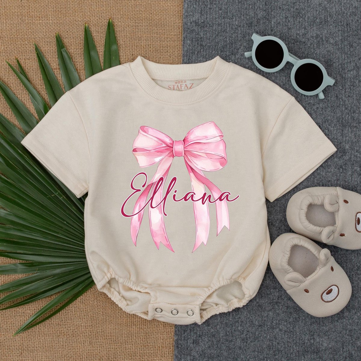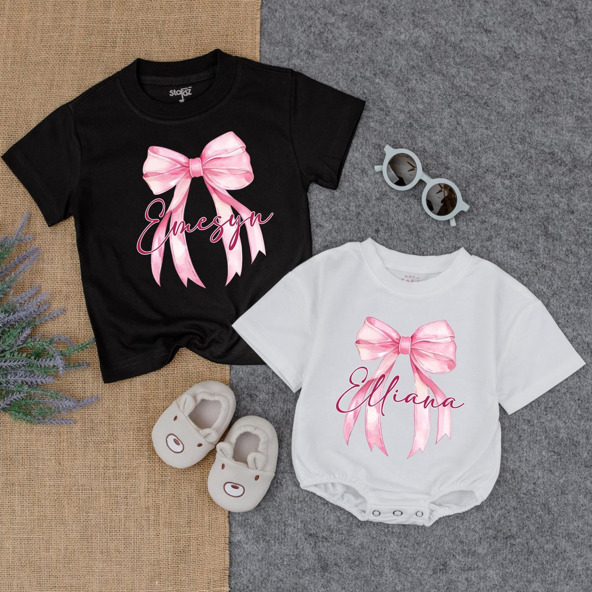 Personalized Baby Bow T Shirt Bubble Romper Baby Girl Clothes Sister and Me OutfitToddler and Youth 190