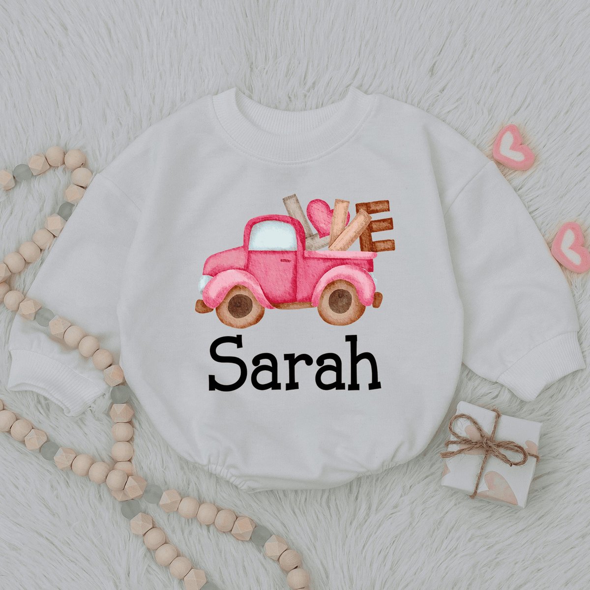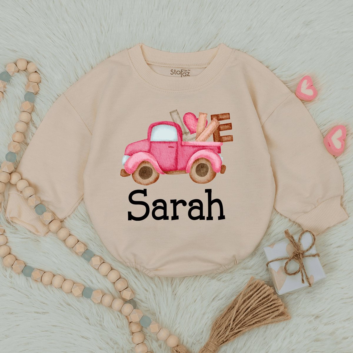 Personalized Baby Romper Valentine Baby Outfit Custom name baby clothes Custom baby truck Infant clo 165