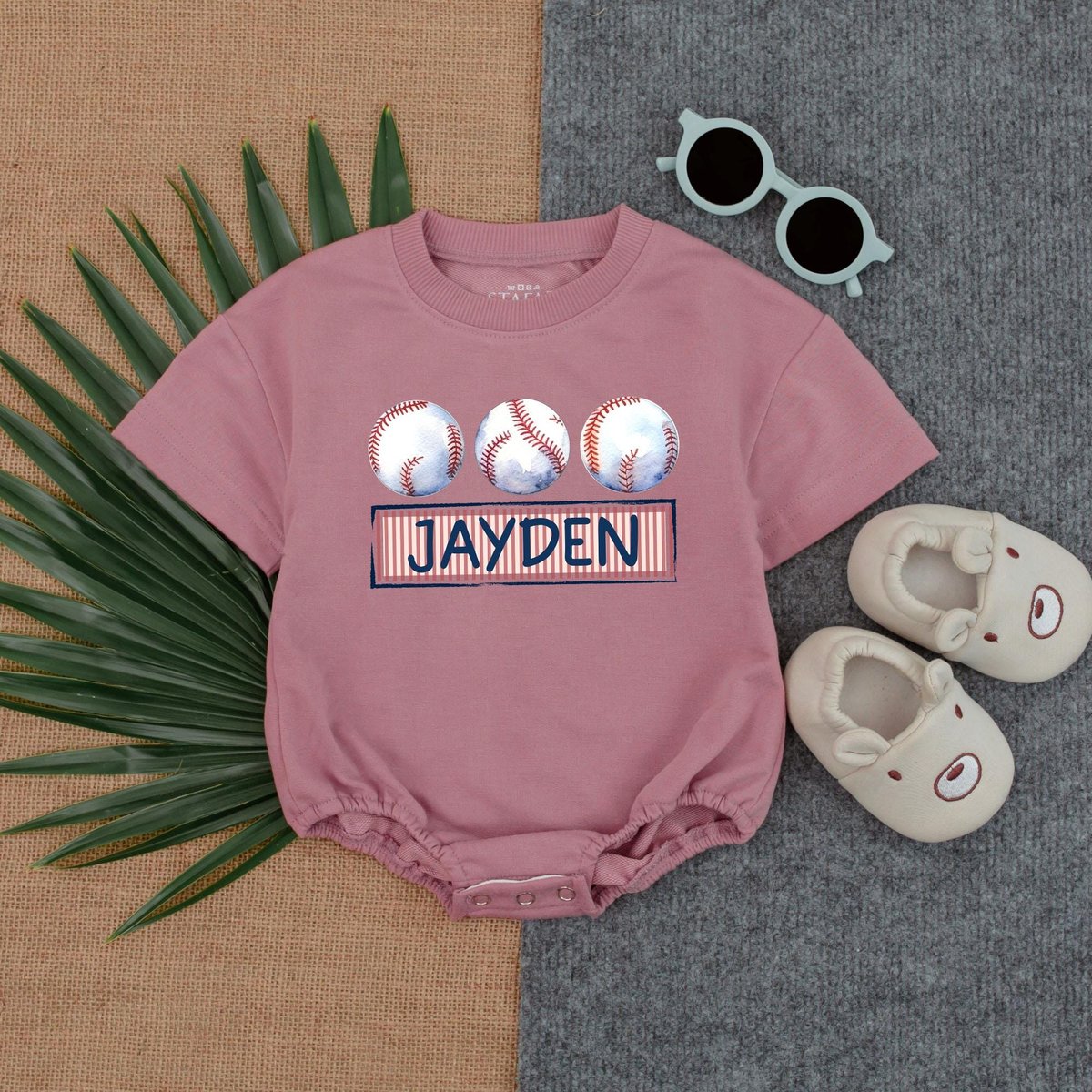 Personalized Baseball Baby Romper Baseball Game Day Romper Custom Name Game Day Baby Bodysuit Baseba 186