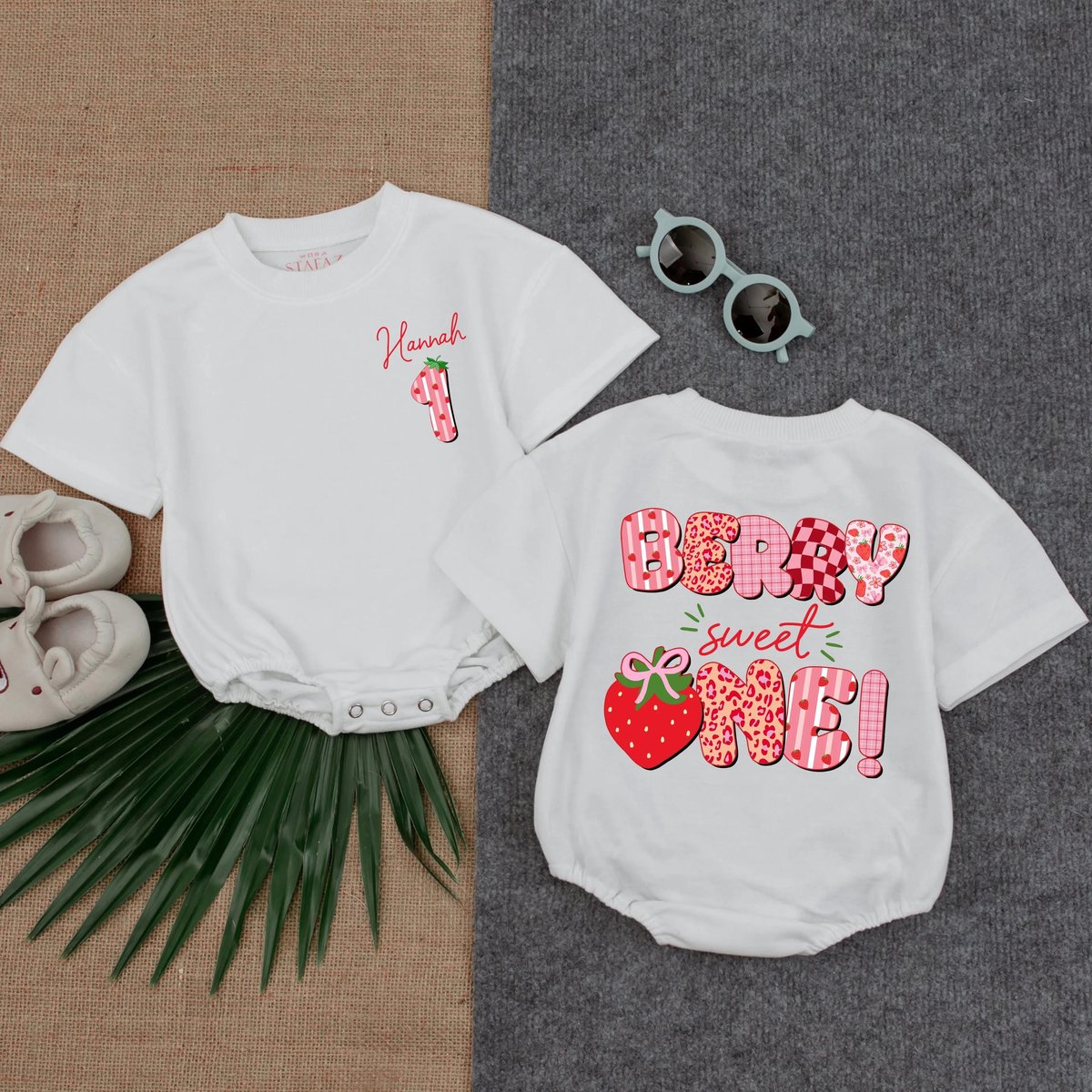 Personalized Berry Sweet One First Birthday Baby Girl Bubble Romper Berry Cake Smash Clothes Baby Gi 433