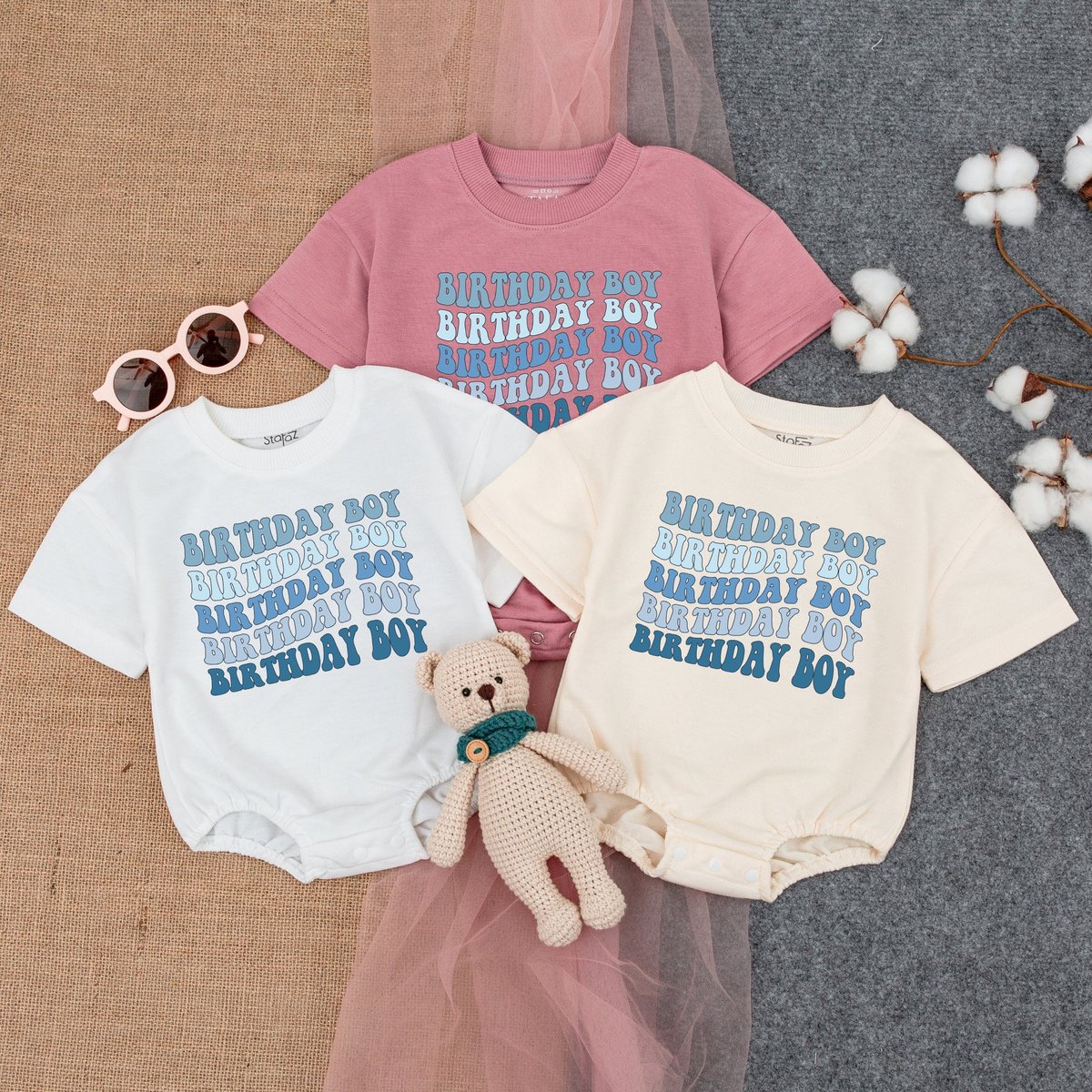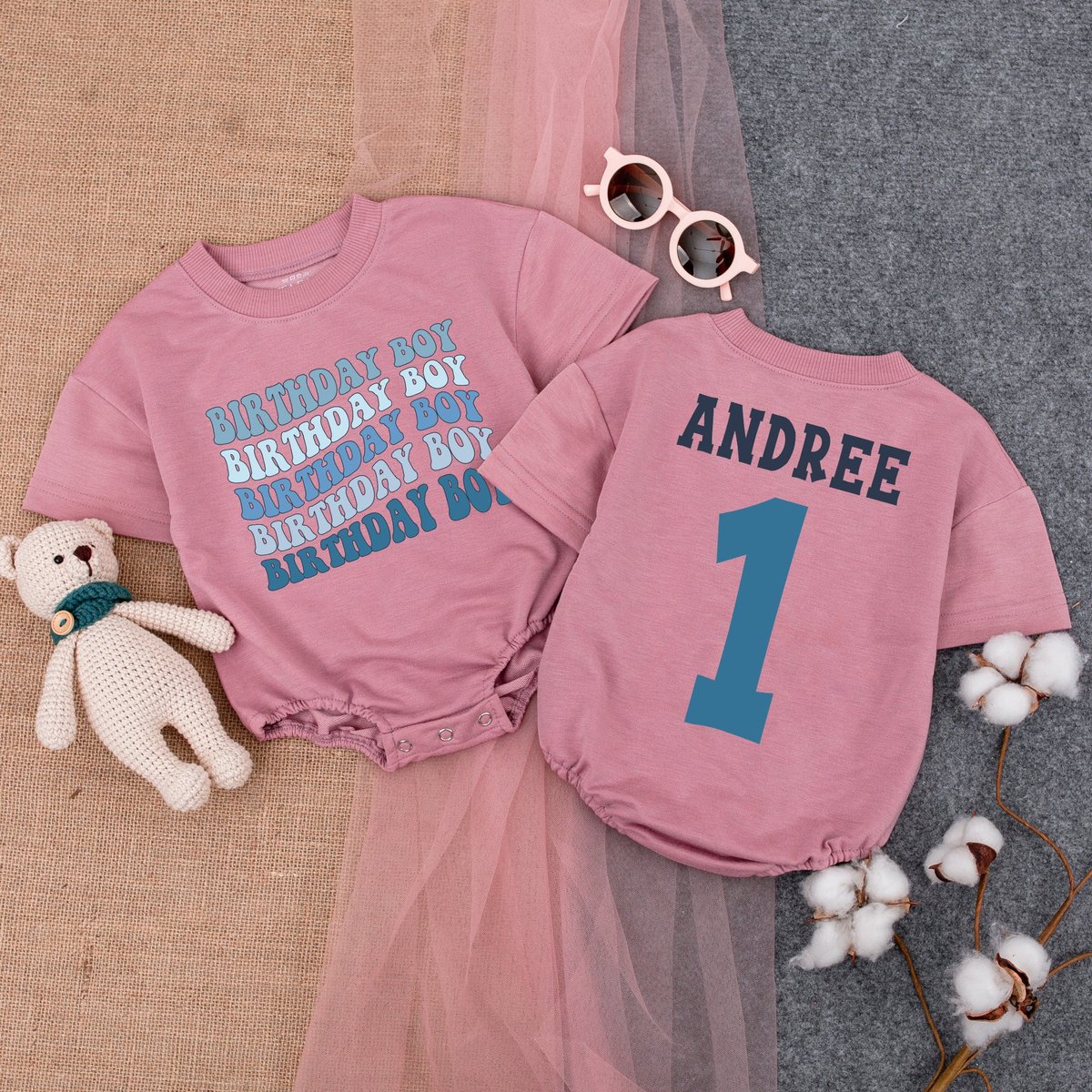 Personalized Birthday Boy Short Sleeve Romper First Birthday Outfit Blue Theme Birthday Shirt Cupc 174