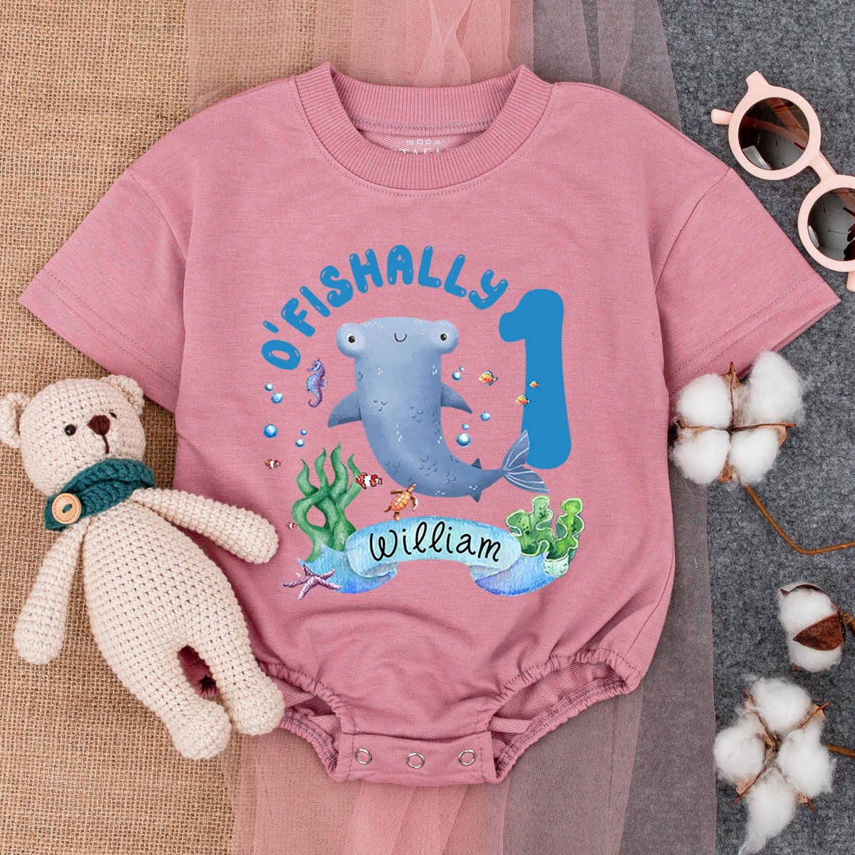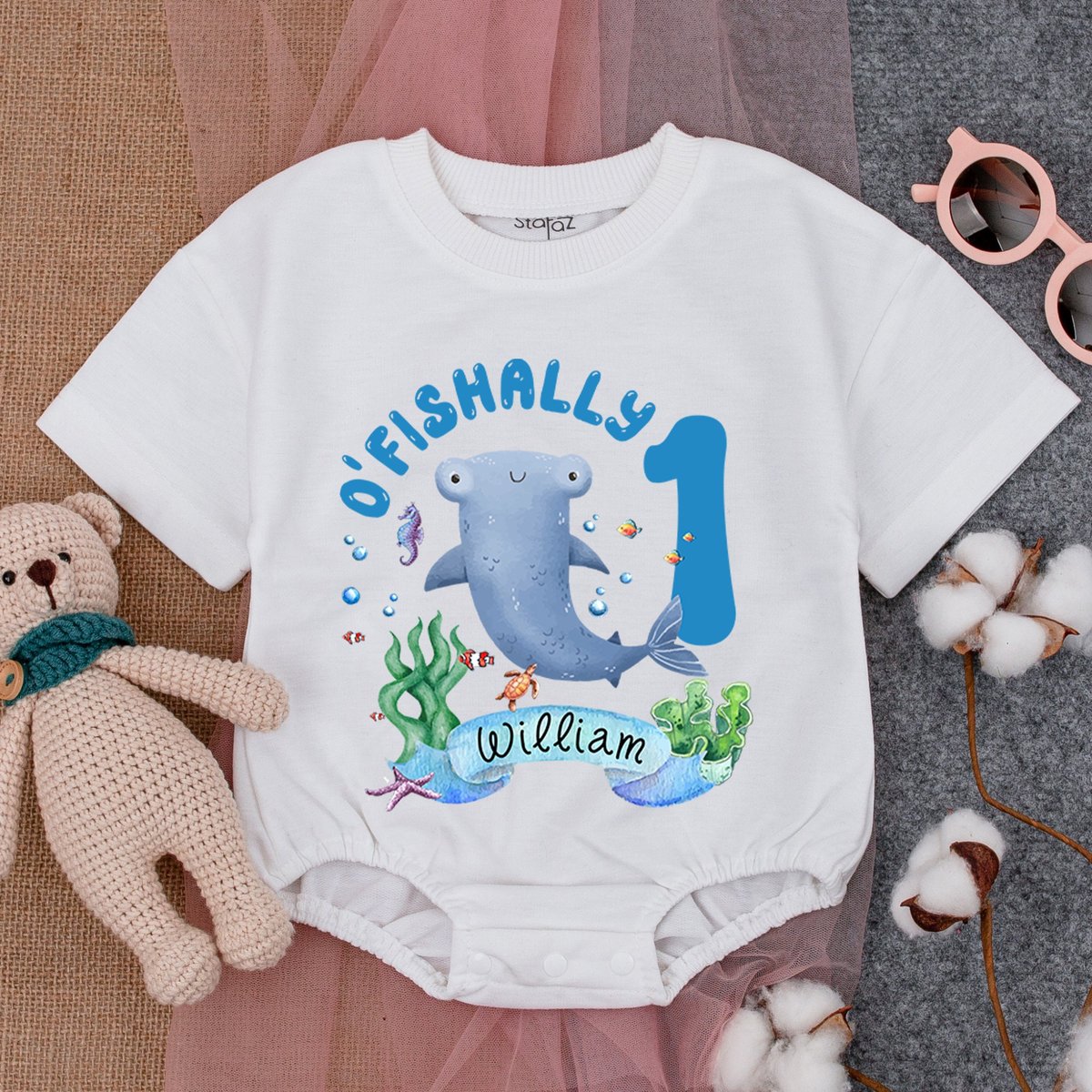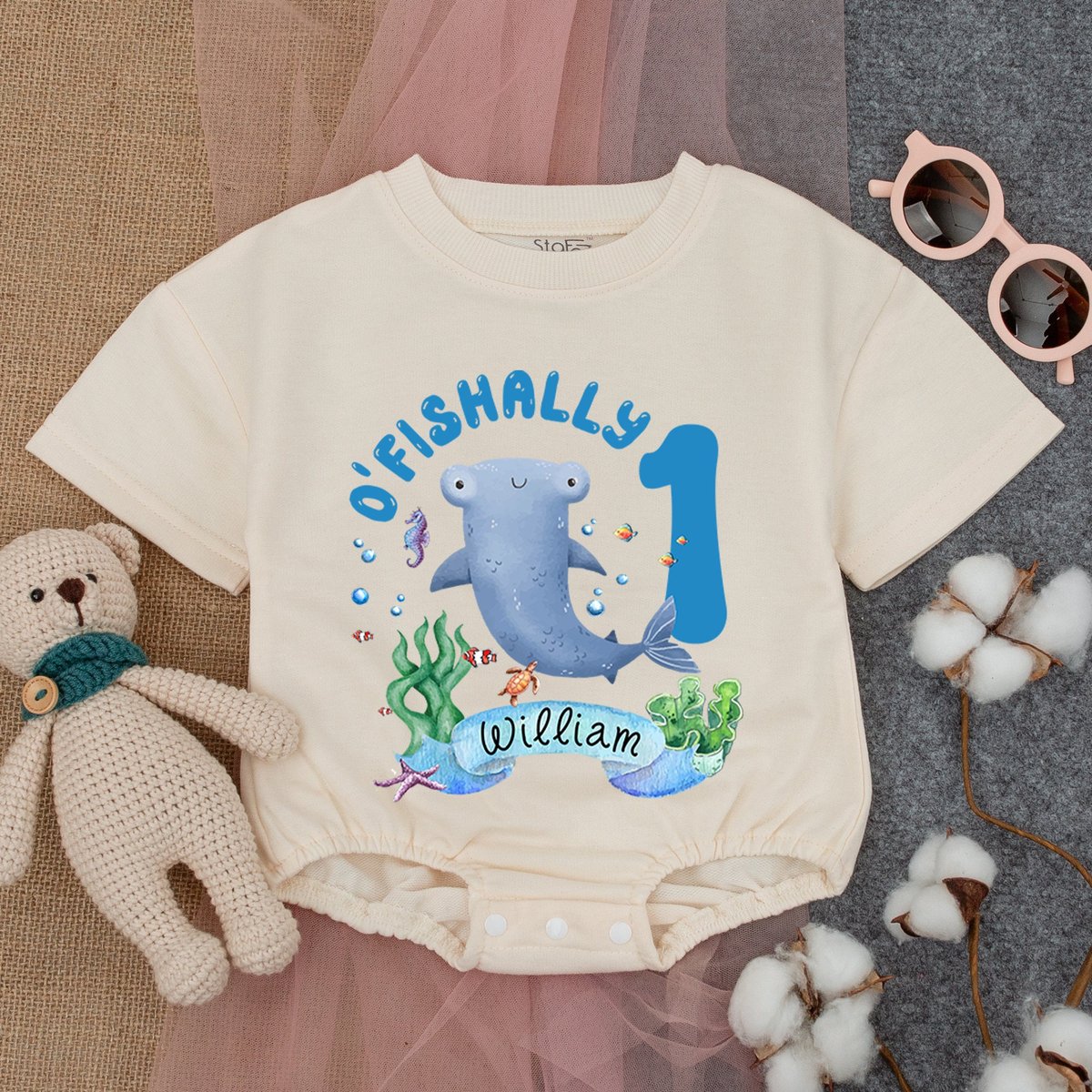 Personalized Birthday Boy Short Sleeve Romper Under the Sea Party First Birthday Outfit Ocean Part 176