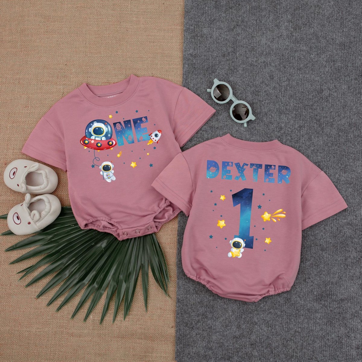 Personalized Boy Astronaut T shirt Bubble Romper Space One Birthday 1st Birthday First Trip Around T 187