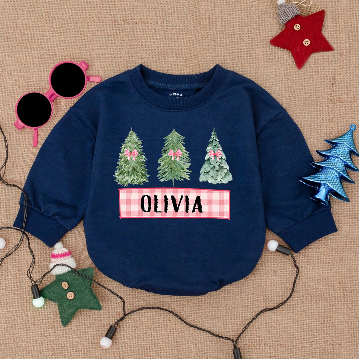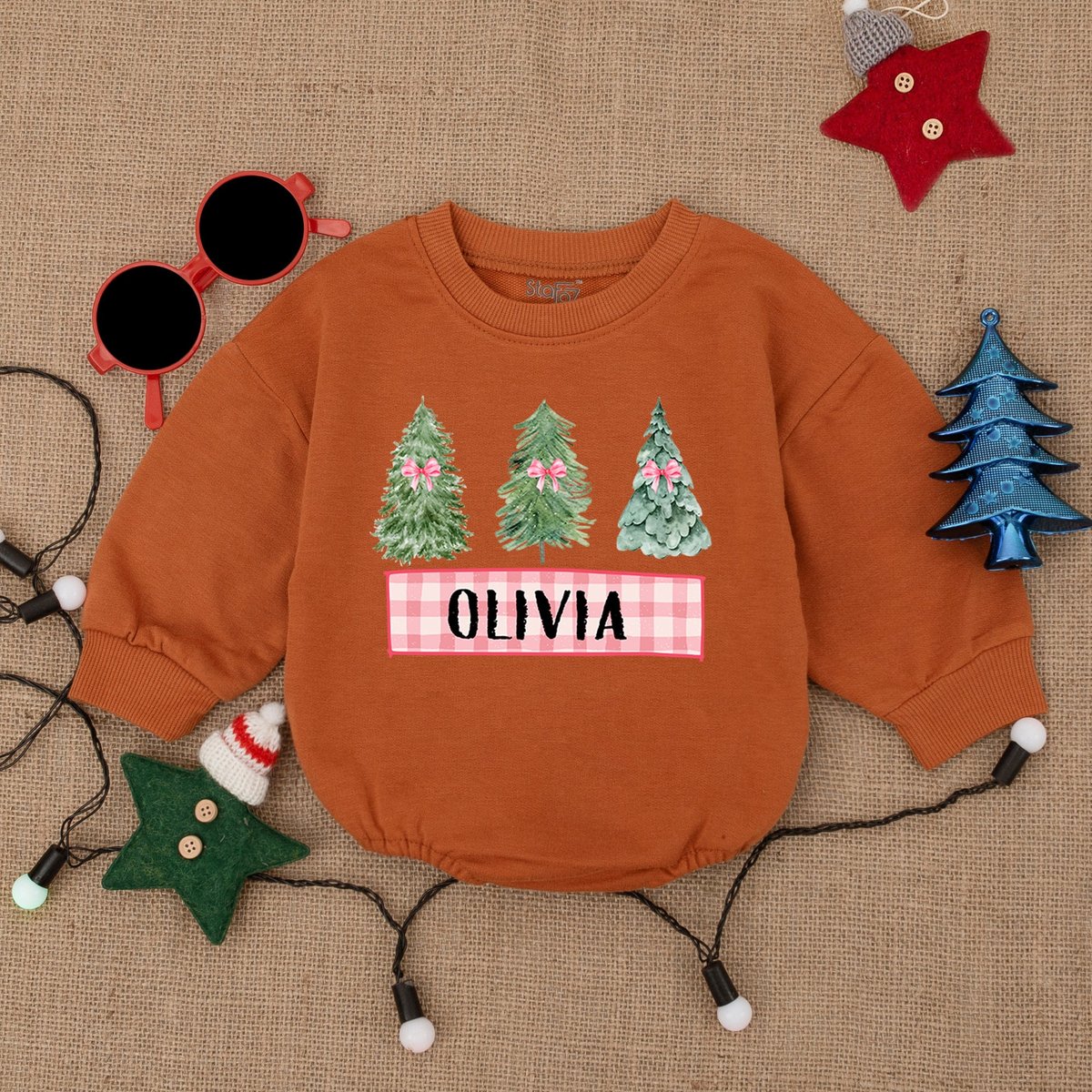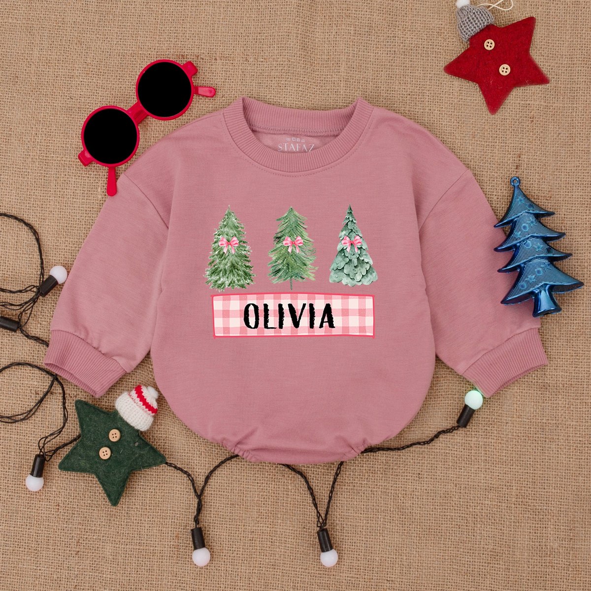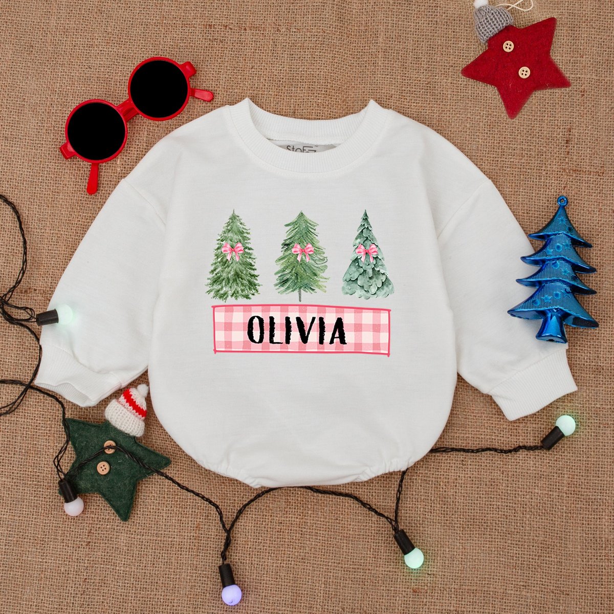 Personalized Christmas Romper Sweatshirt Holiday Baby Outfit Custom Name Baby Romper Baby Christmas 180