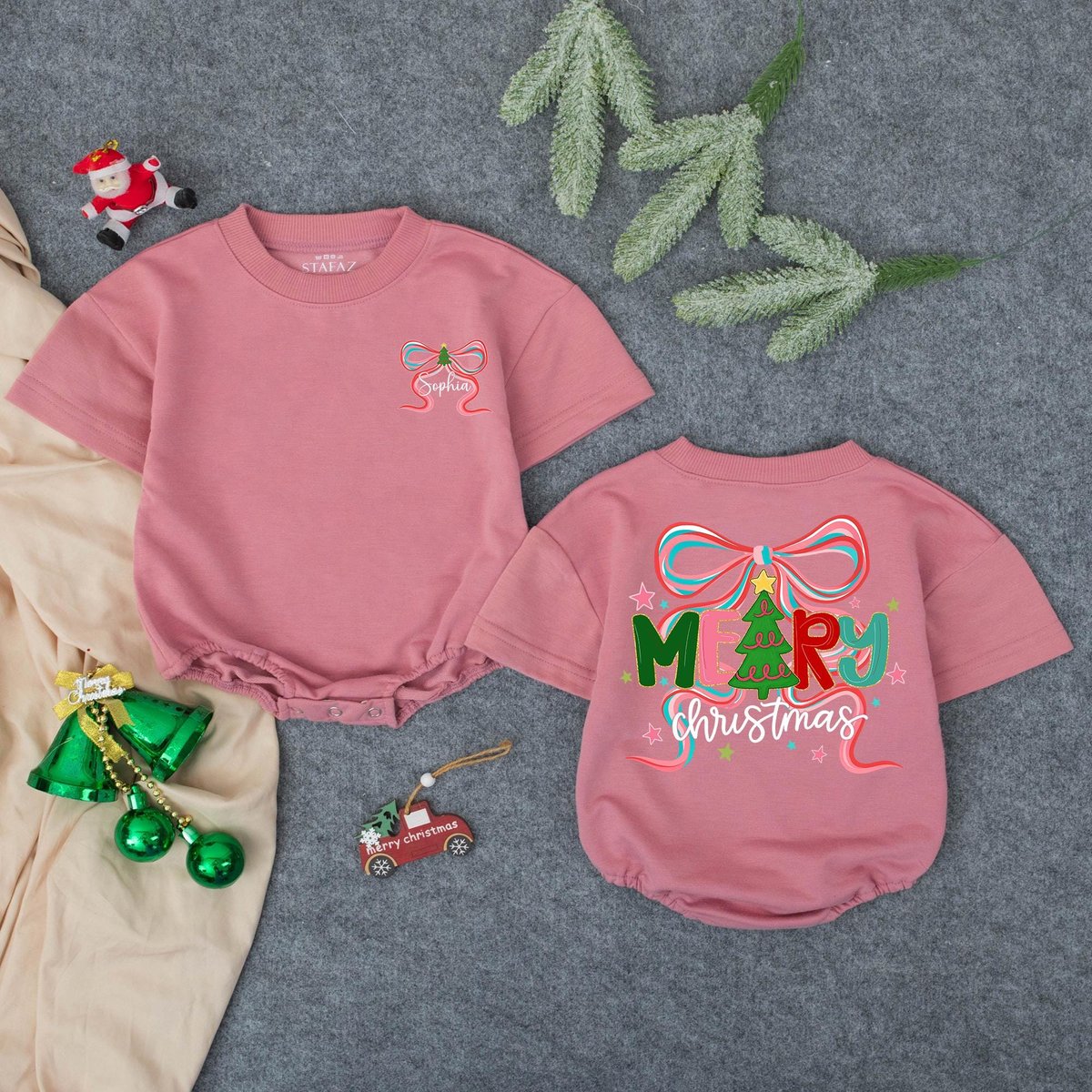 Personalized Christmas Bubble Romper Baby Girl Christmas Tree Outfit Personalized Christmas Tree Fir 436