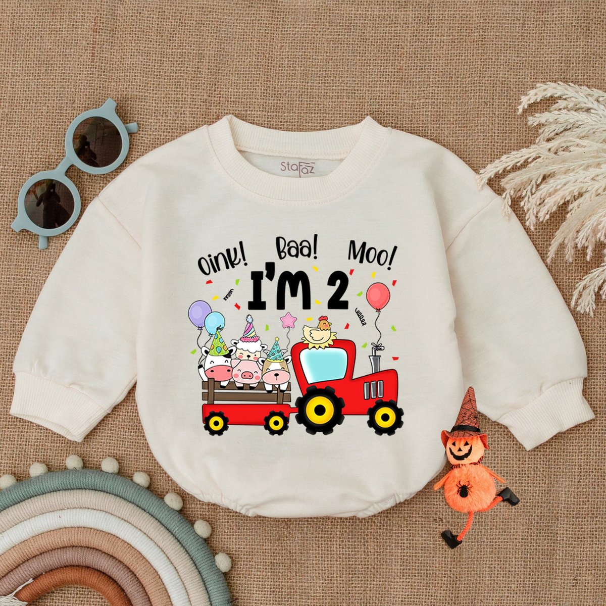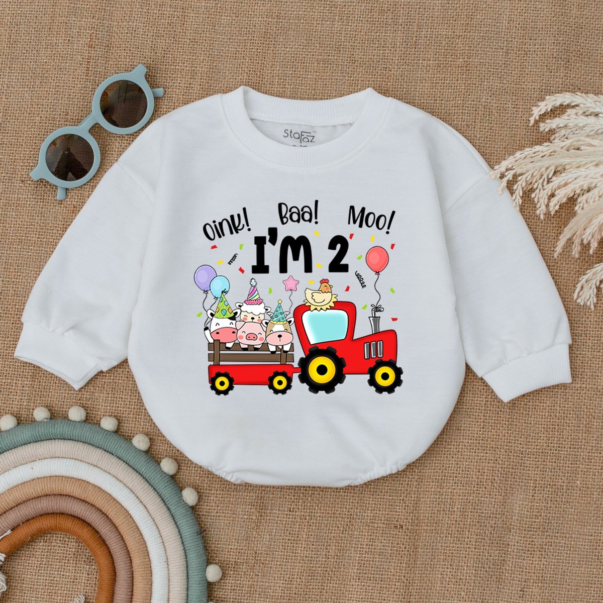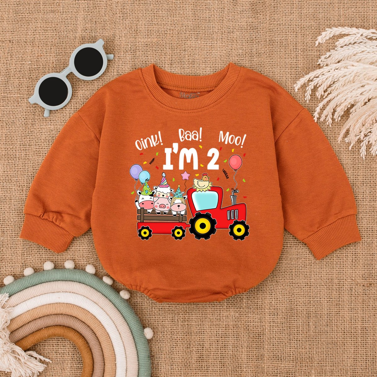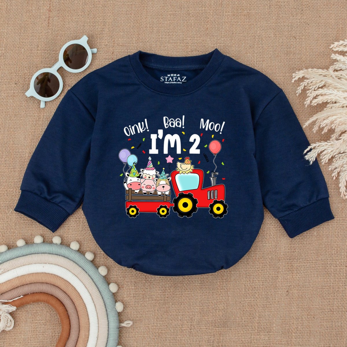 Personalized Farm Animal Second Birthday Romper Farm Theme 2nd Birthday Bubble Romper Cow 2nd Birthd 178