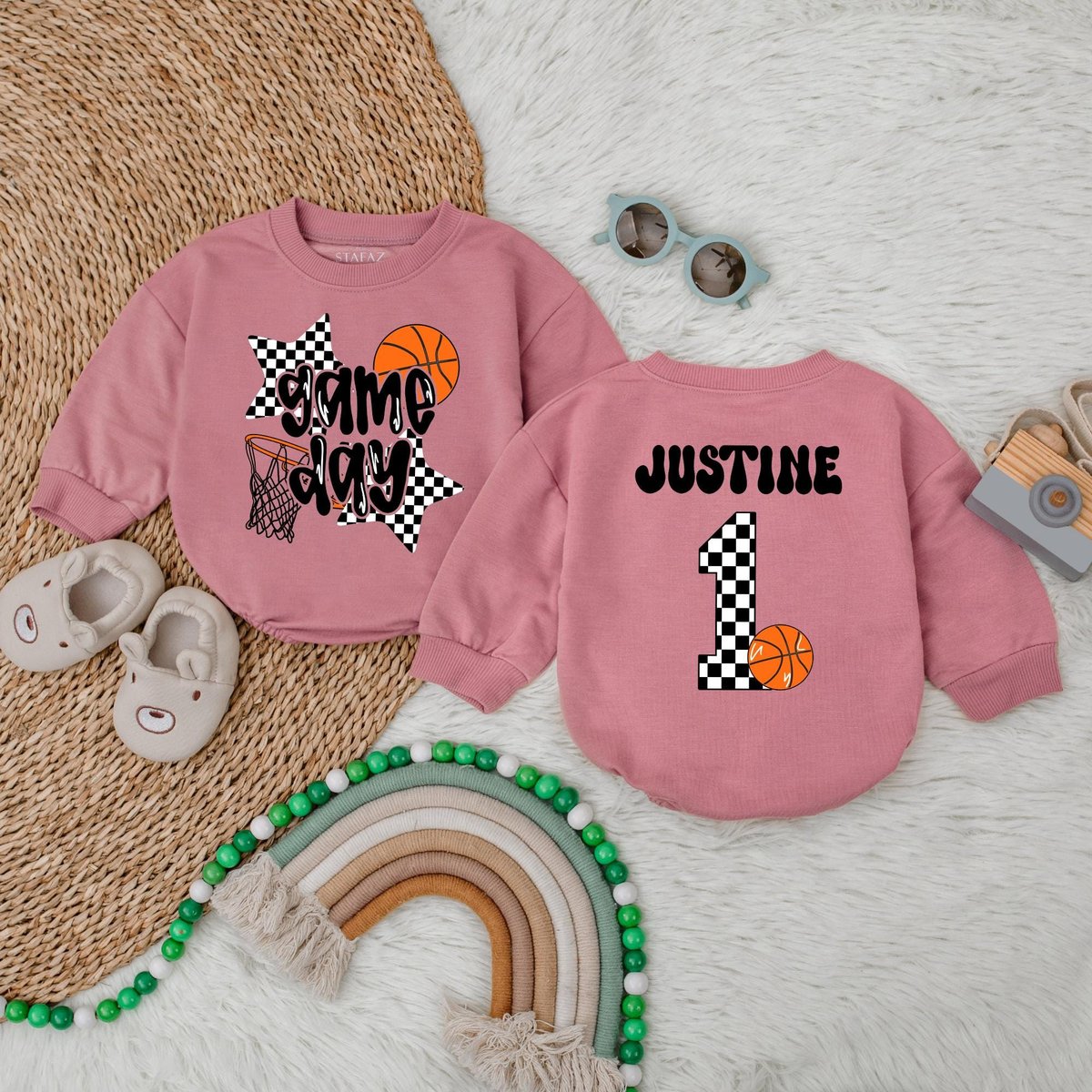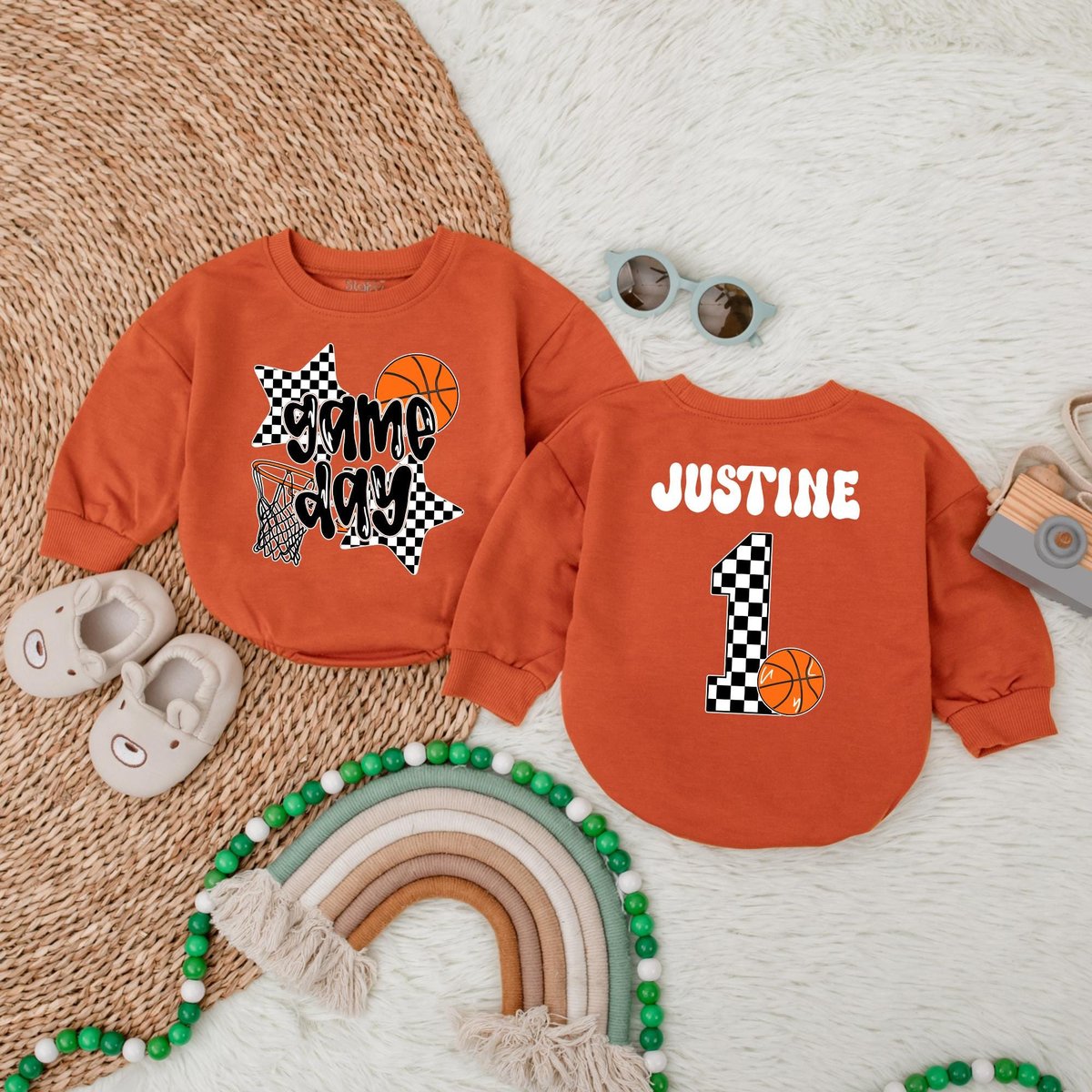 Personalized Game Day Basketball Bubble Romper Basketball Bodysuit Basketball Baby Romper Basketball 183