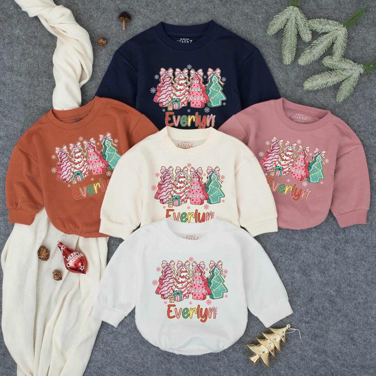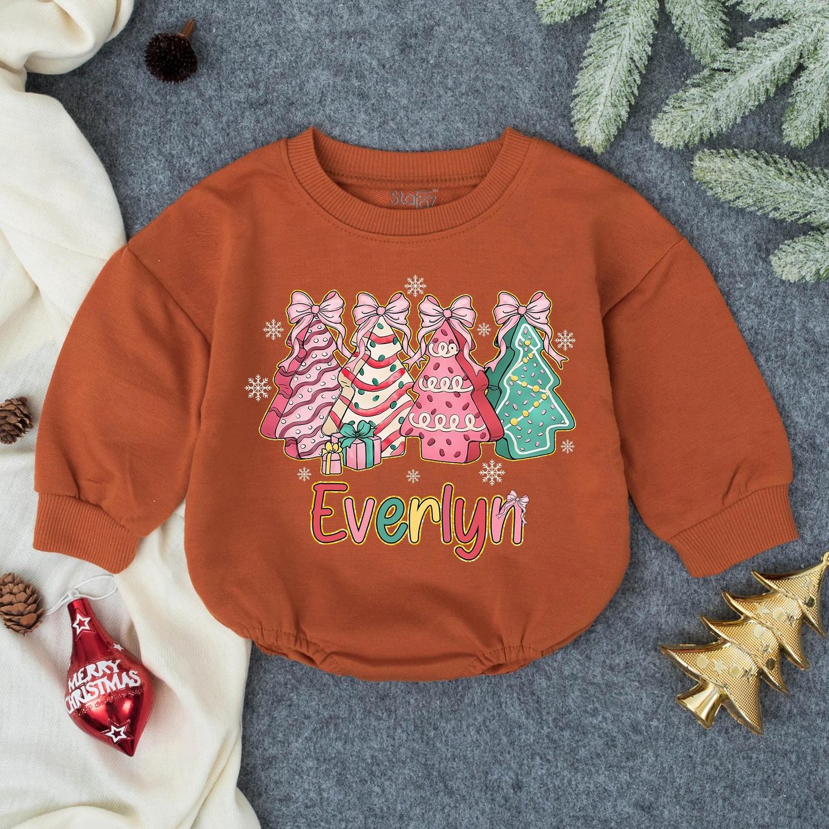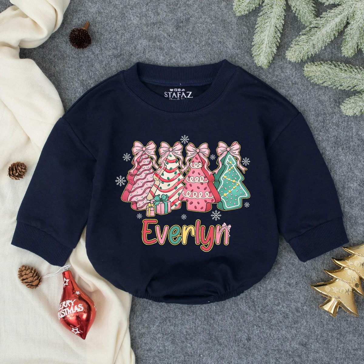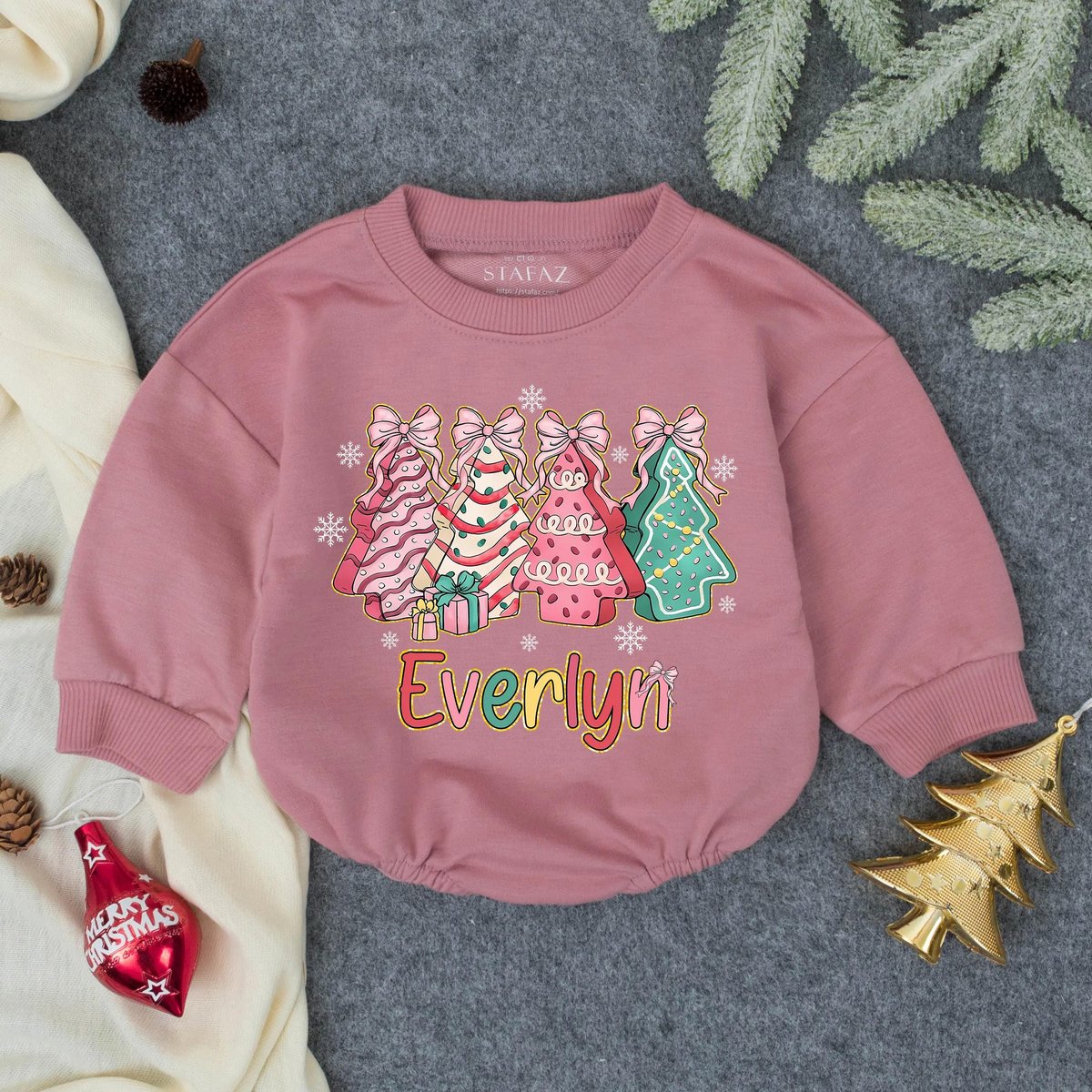 Personalized Girly Christmas Bubble Romper Pink Pine Holiday Infant Outfit My First Christmas Baby C 437