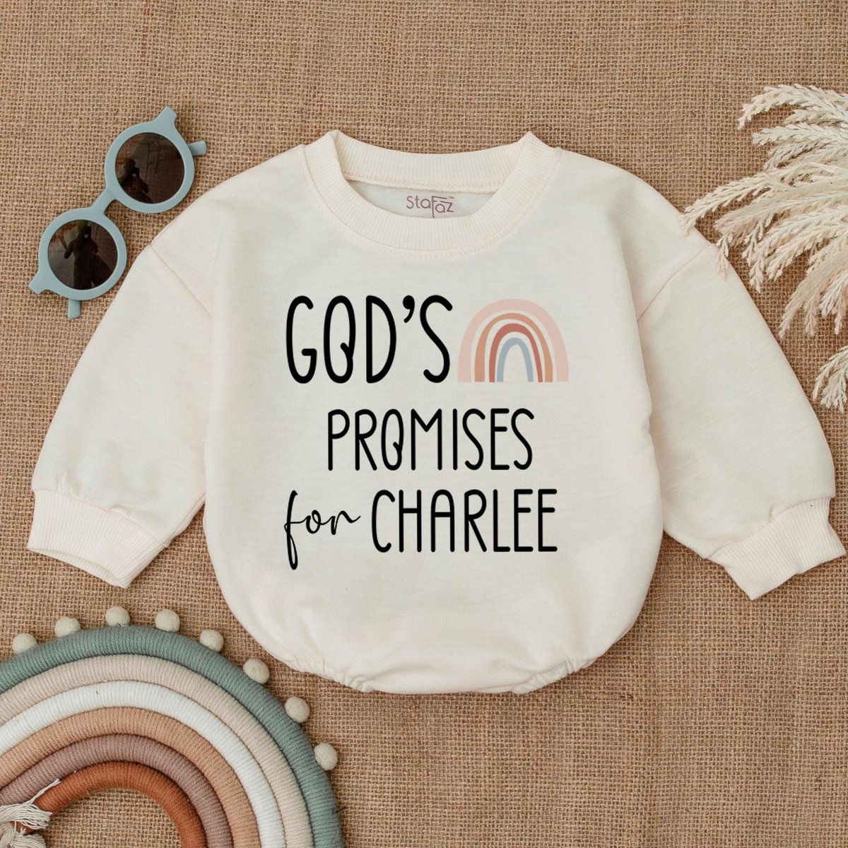 Personalized God’s Promise Long Sleeve Bubble Romper Baby Announcement Baby Bodysuit Baby Clothes B 183