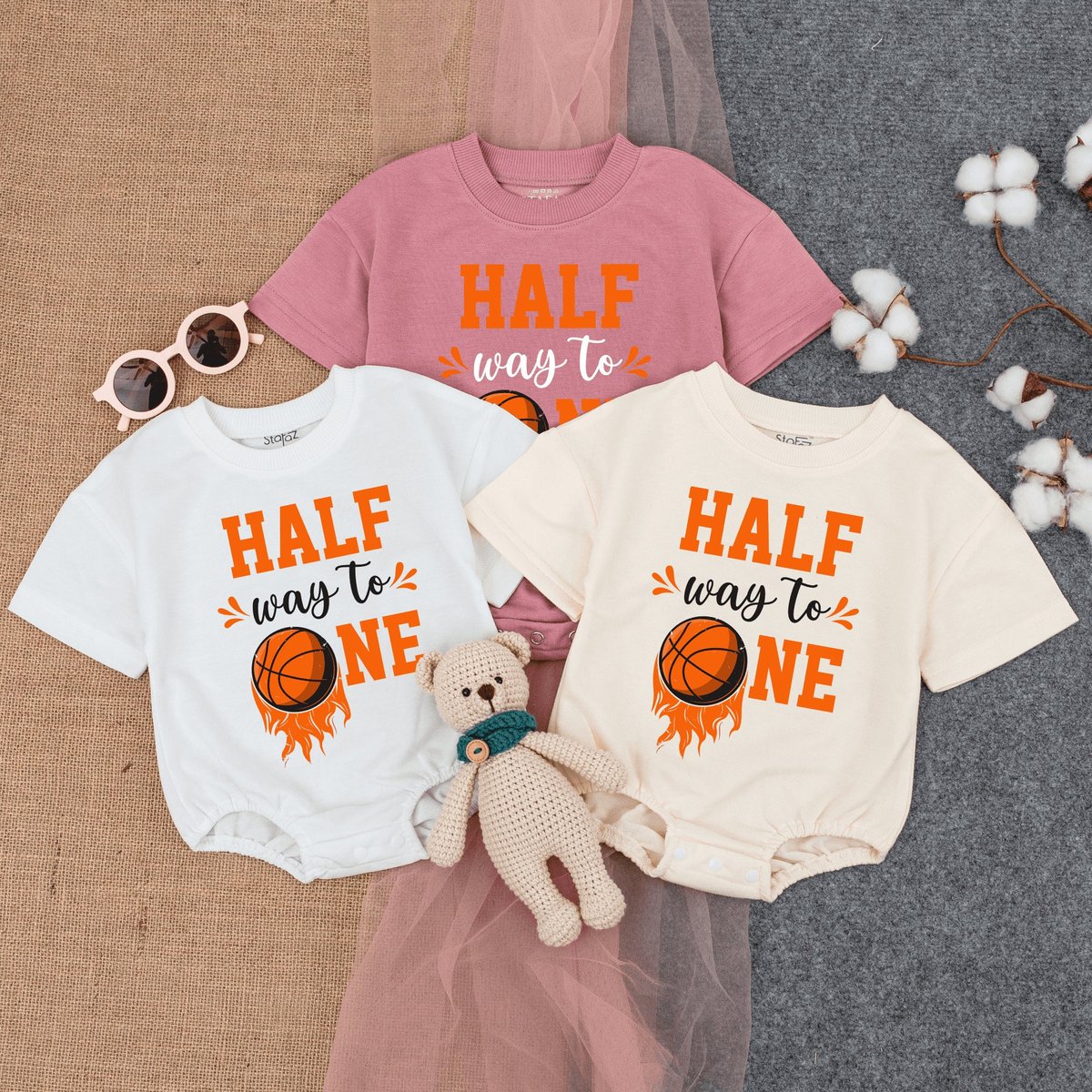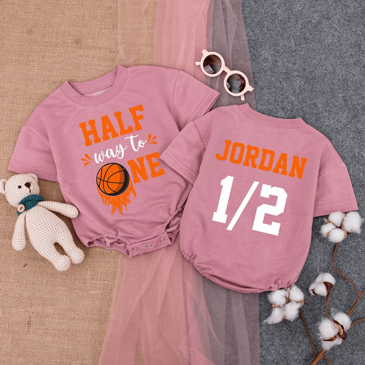 Personalized Halfway To One Romper Short Sleeve Basketball Half Birthday 12 Birthday Outfit Six Mo 170