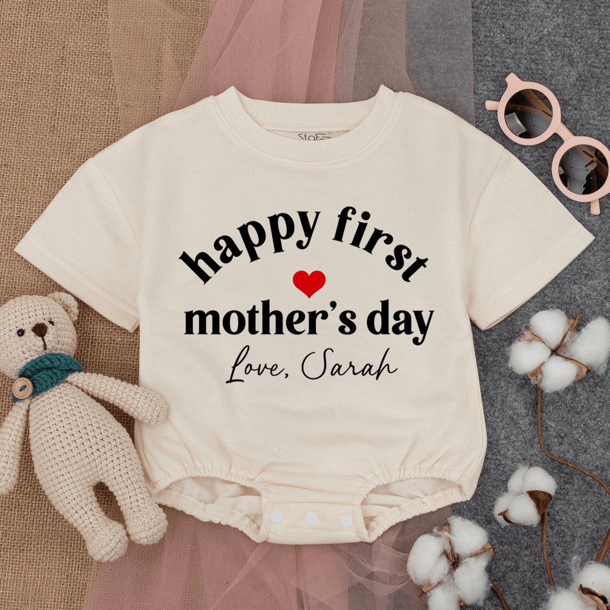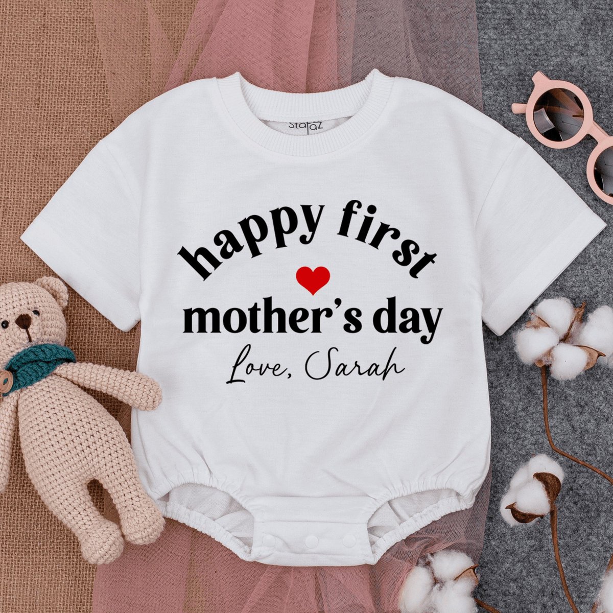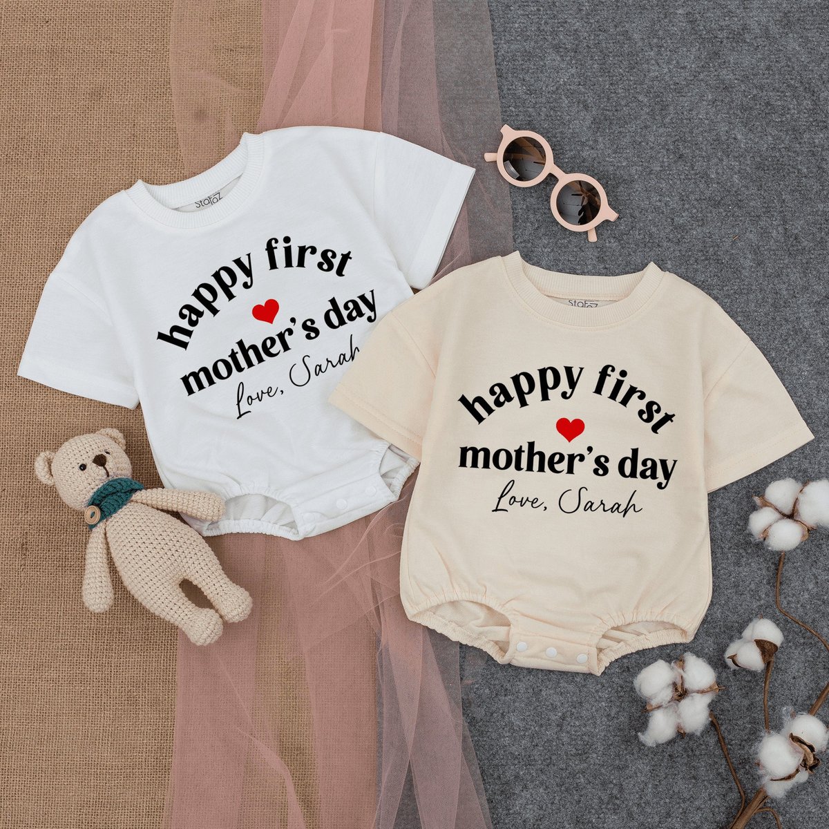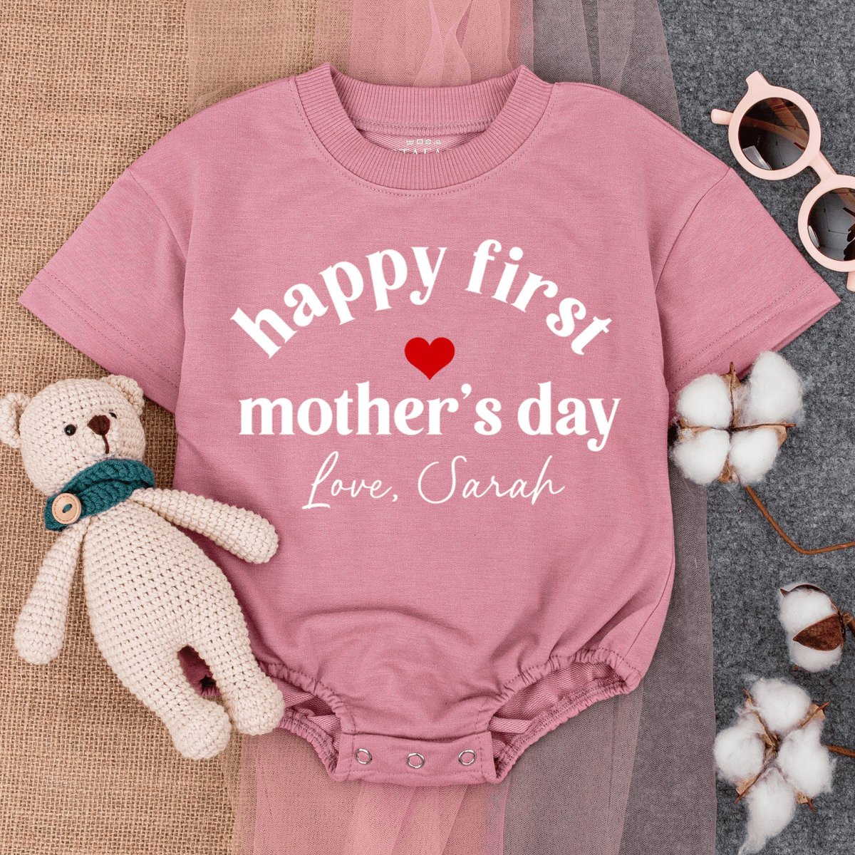 Personalized Happy First Mother’s Day Romper Short Sleeve Cute Mom’s Baby Outfit Custom Mother’ 167