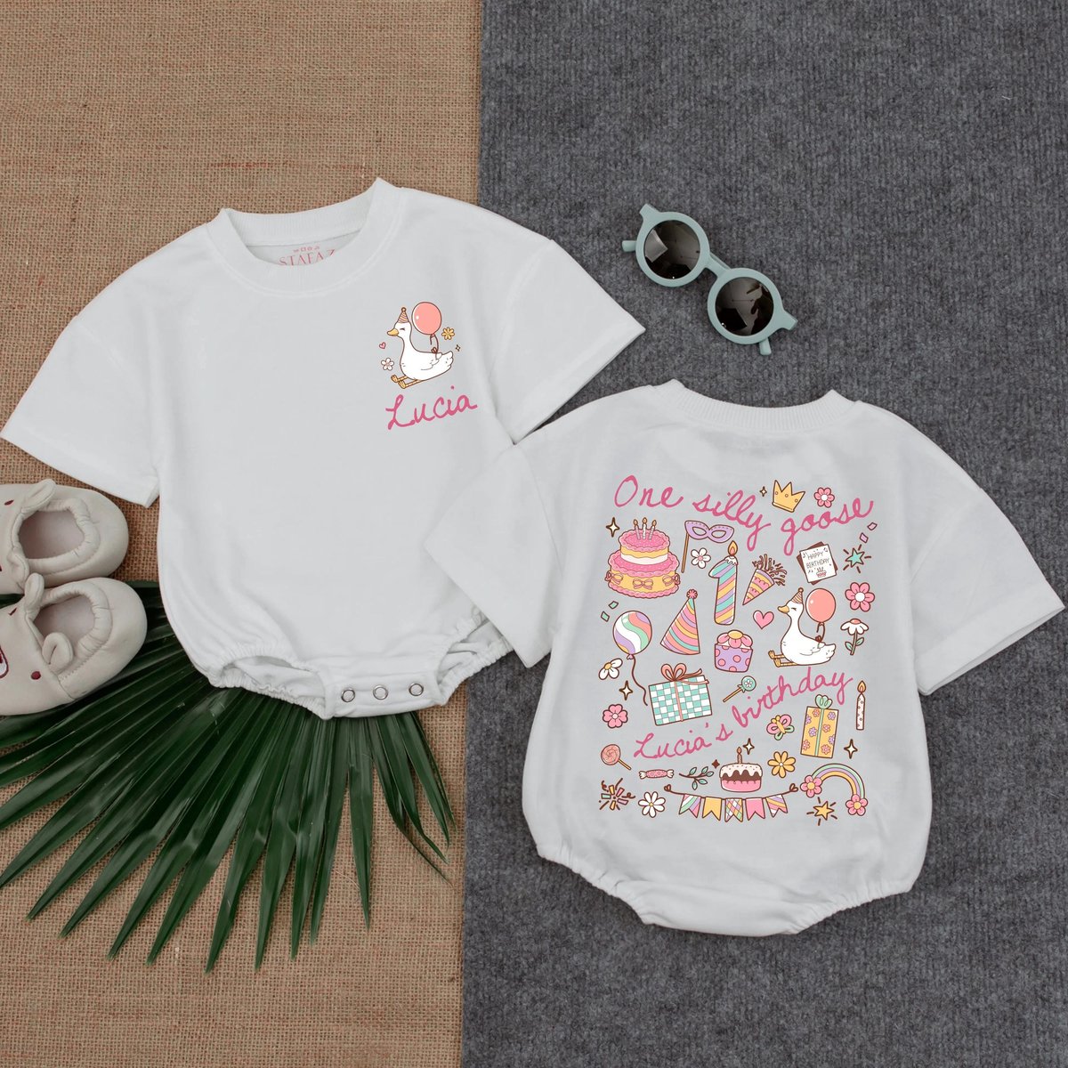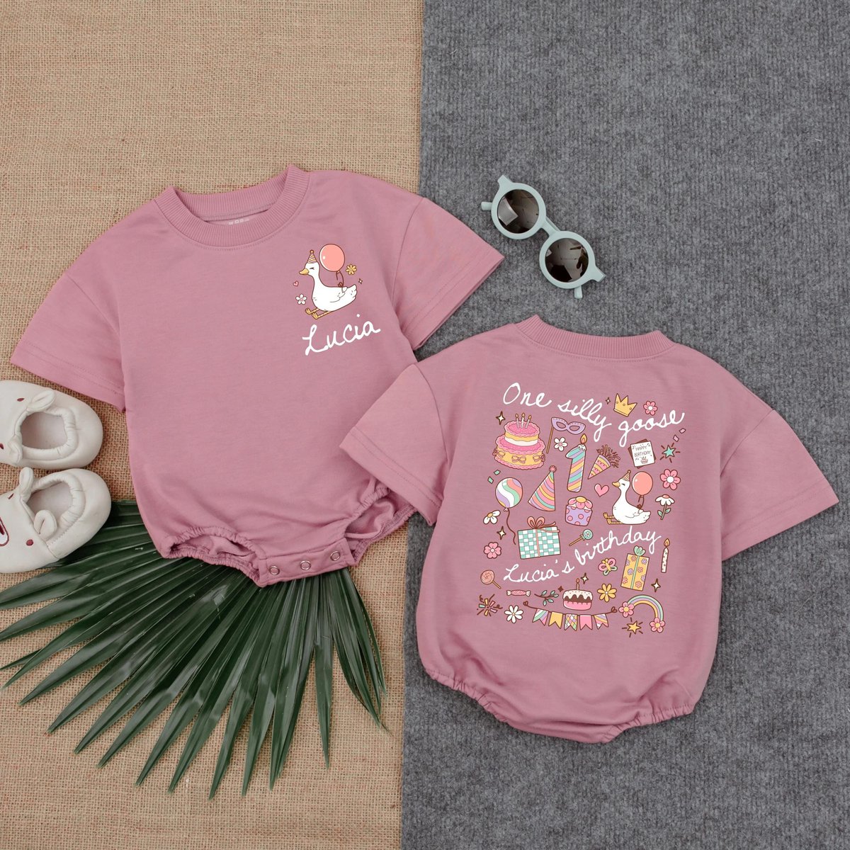 Personalized One Silly Goose Birthday Baby Romper Cute Birthday Baby 1st Birthday Silly Goose Romper 434