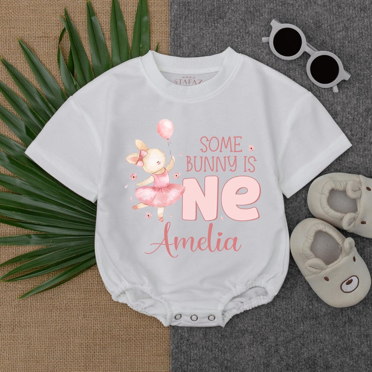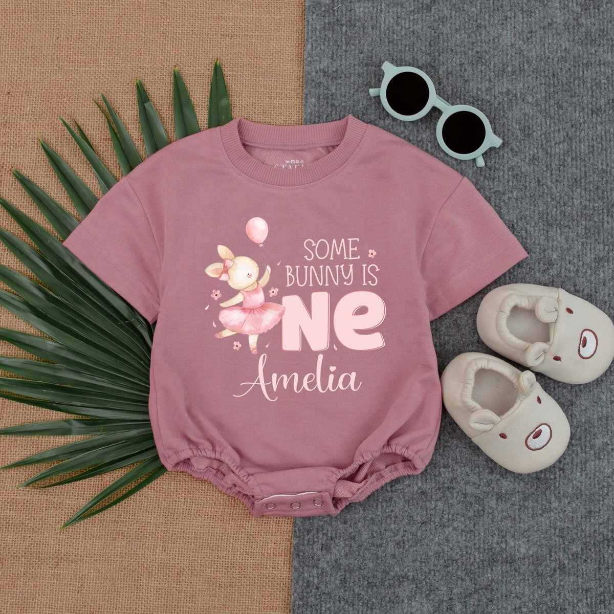 Personalized Some Bunny is one Bubble Romper Neutral Bunny Birthday Outfit Bunny Birthday Party Clot 187